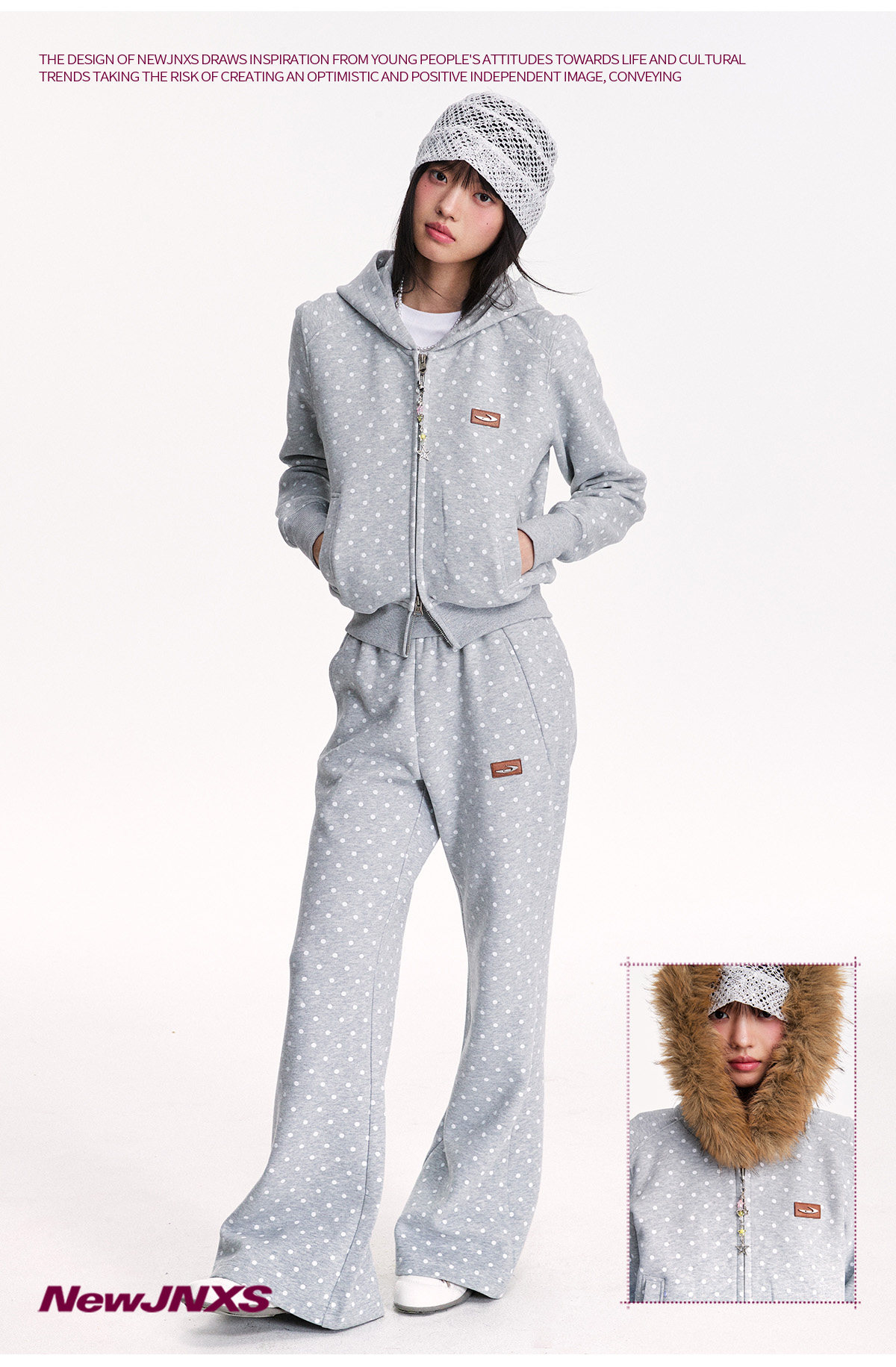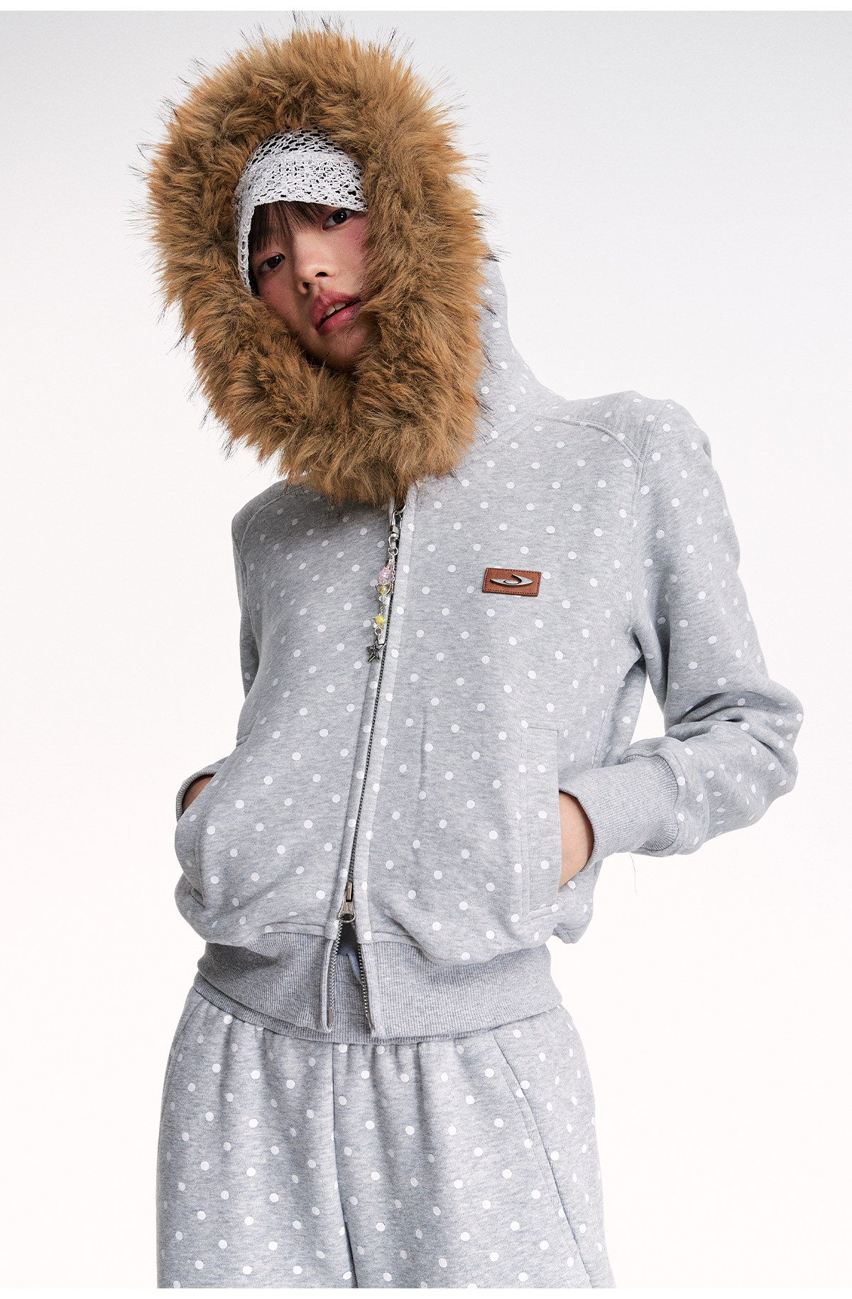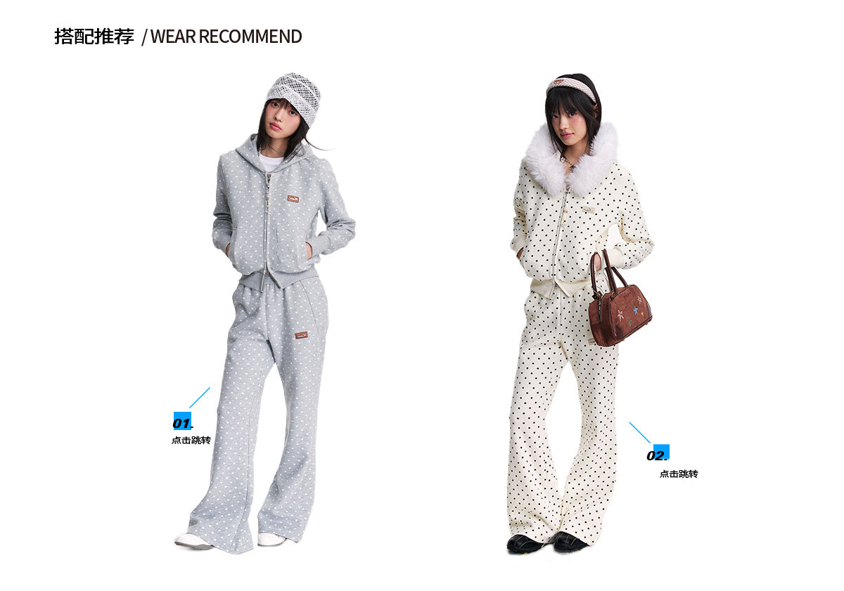 Mr. Jiangnan NewJNXS Polka Dot Detachable Fur Collar Cropped Cardigan Sweatshirt Set