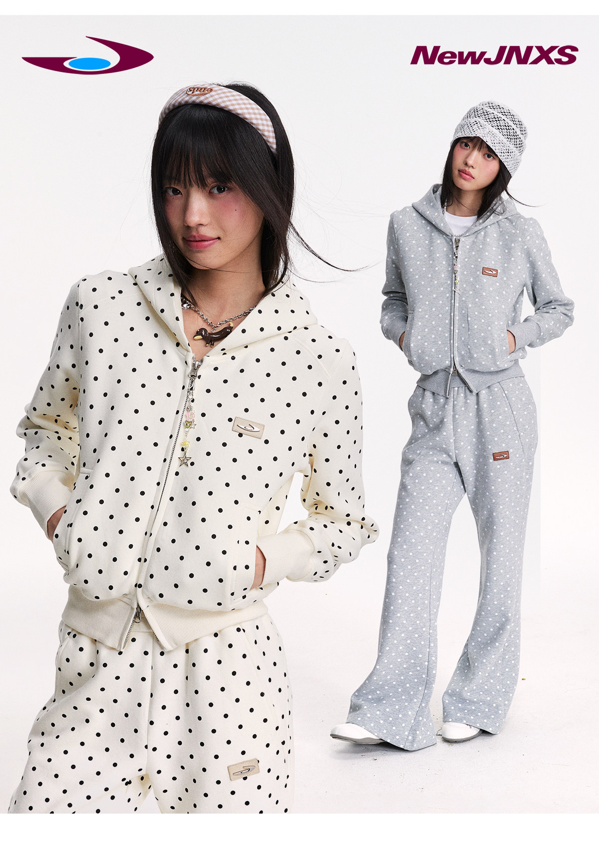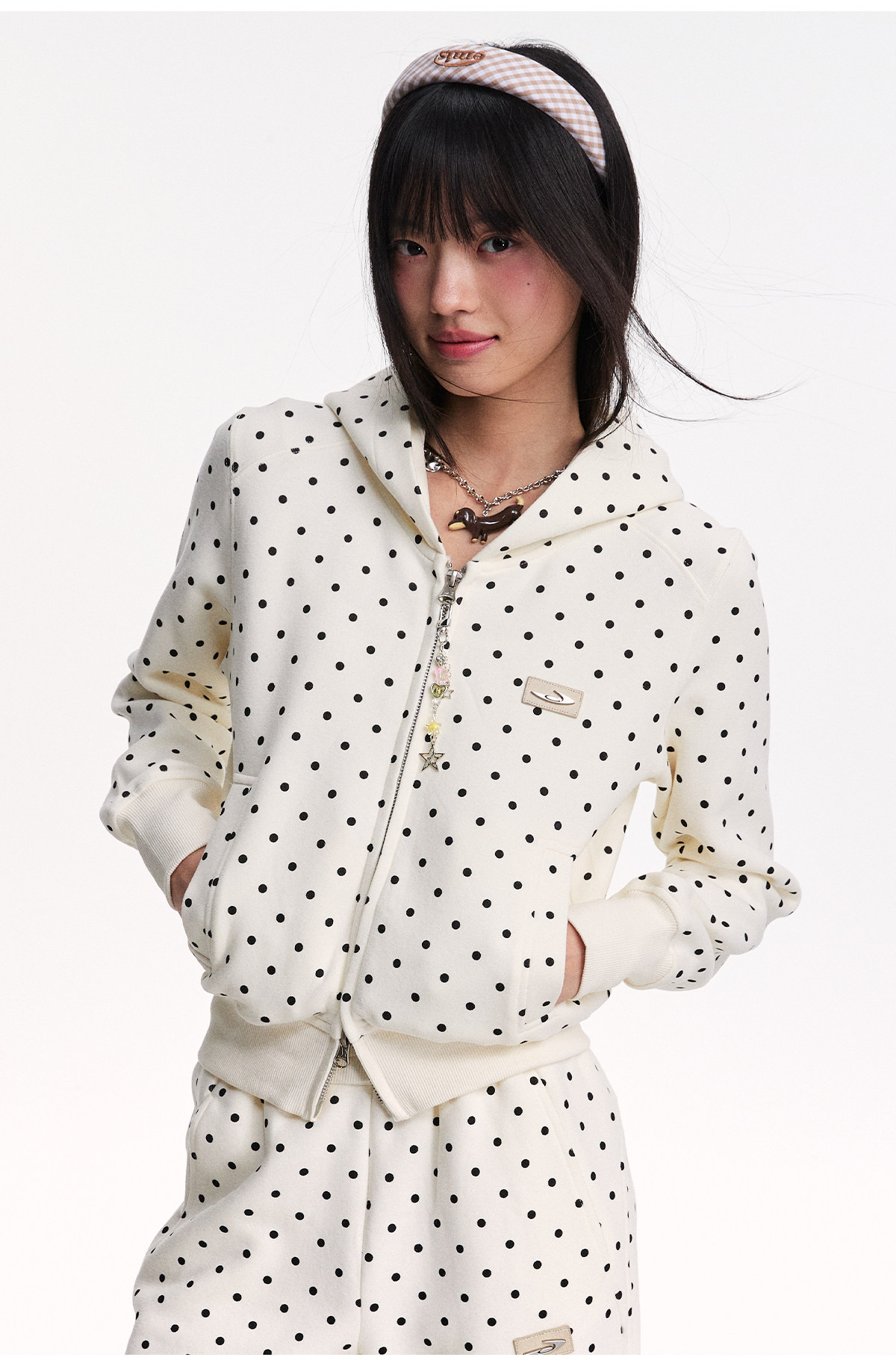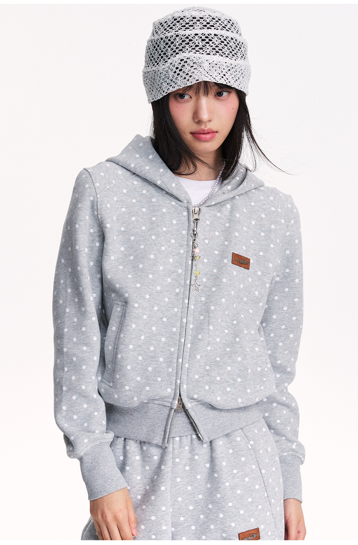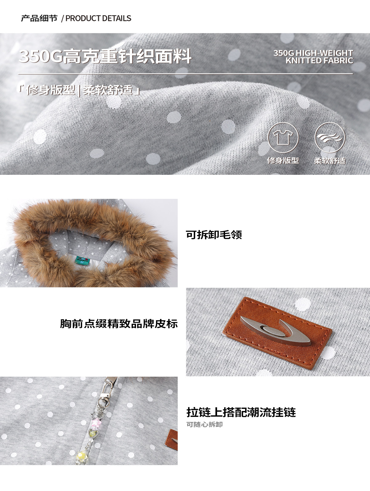 Mr. Jiangnan NewJNXS Polka Dot Detachable Fur Collar Cropped Cardigan Sweatshirt Set
