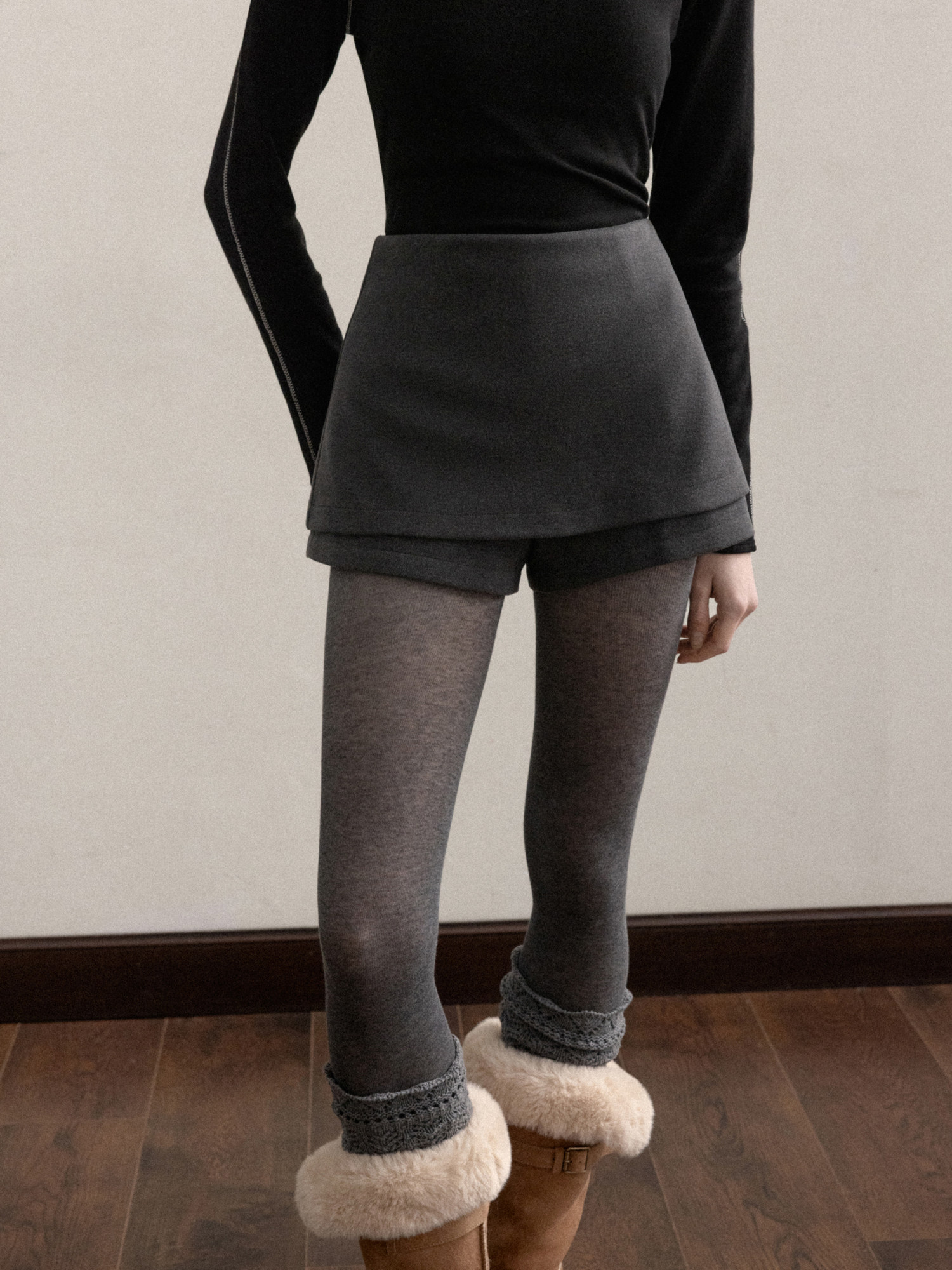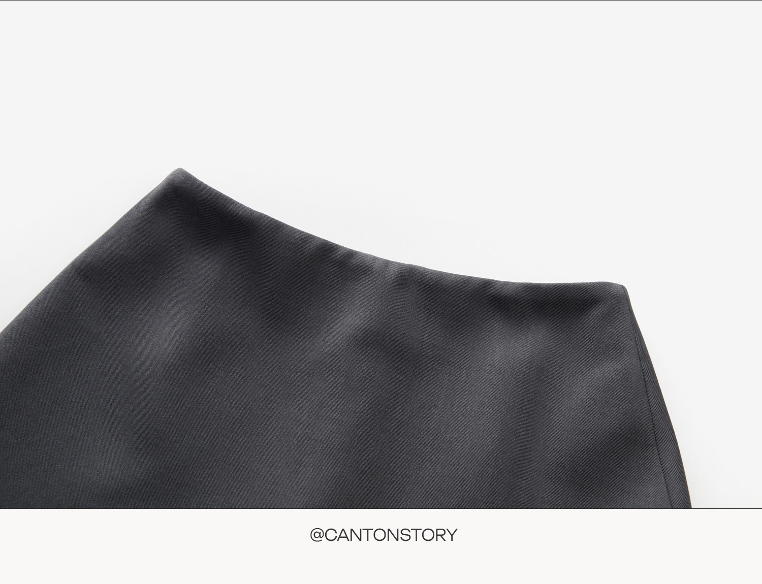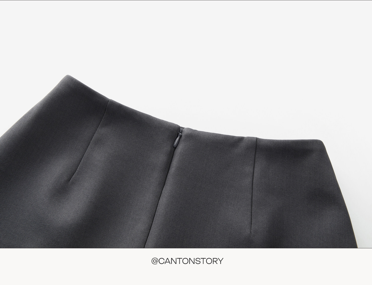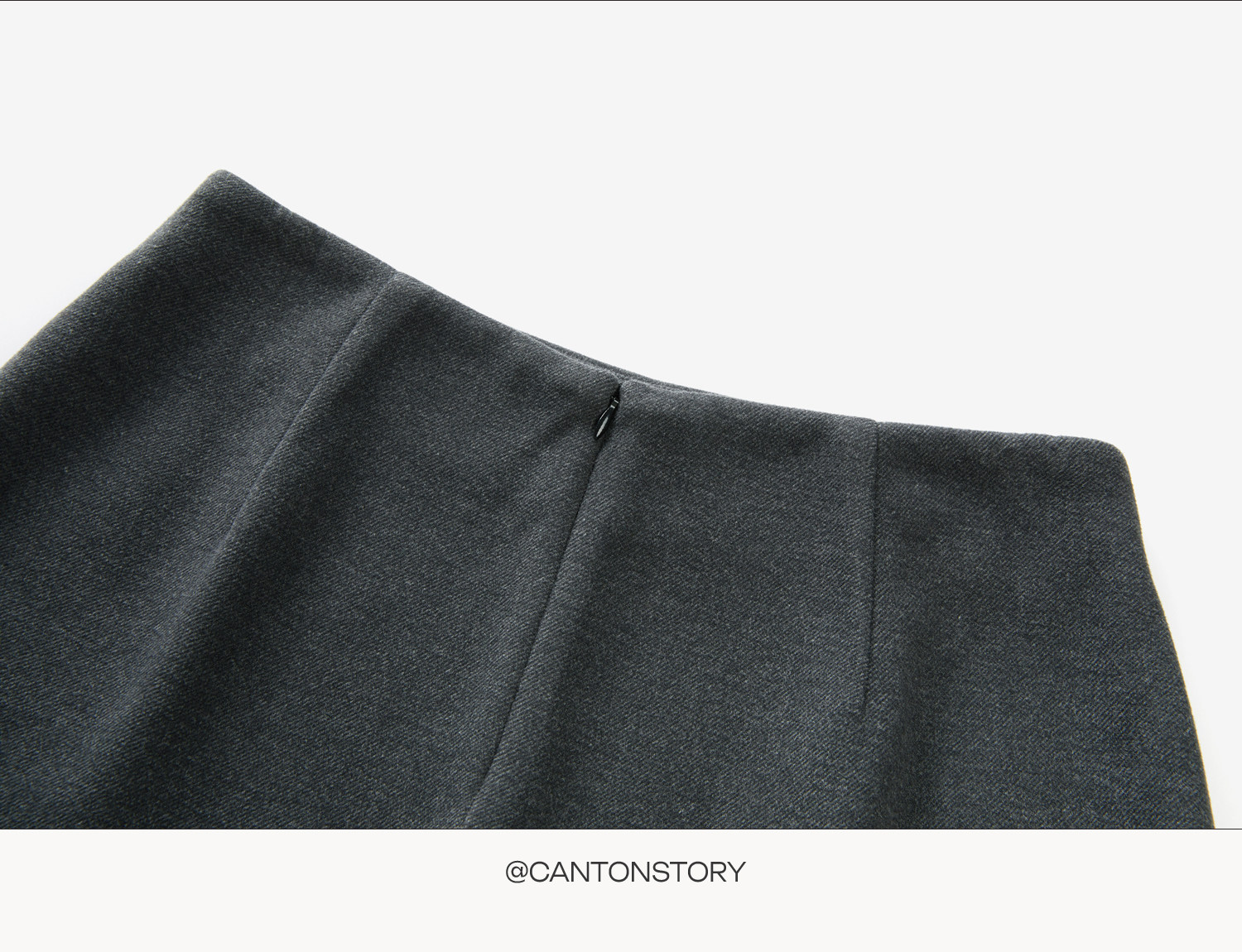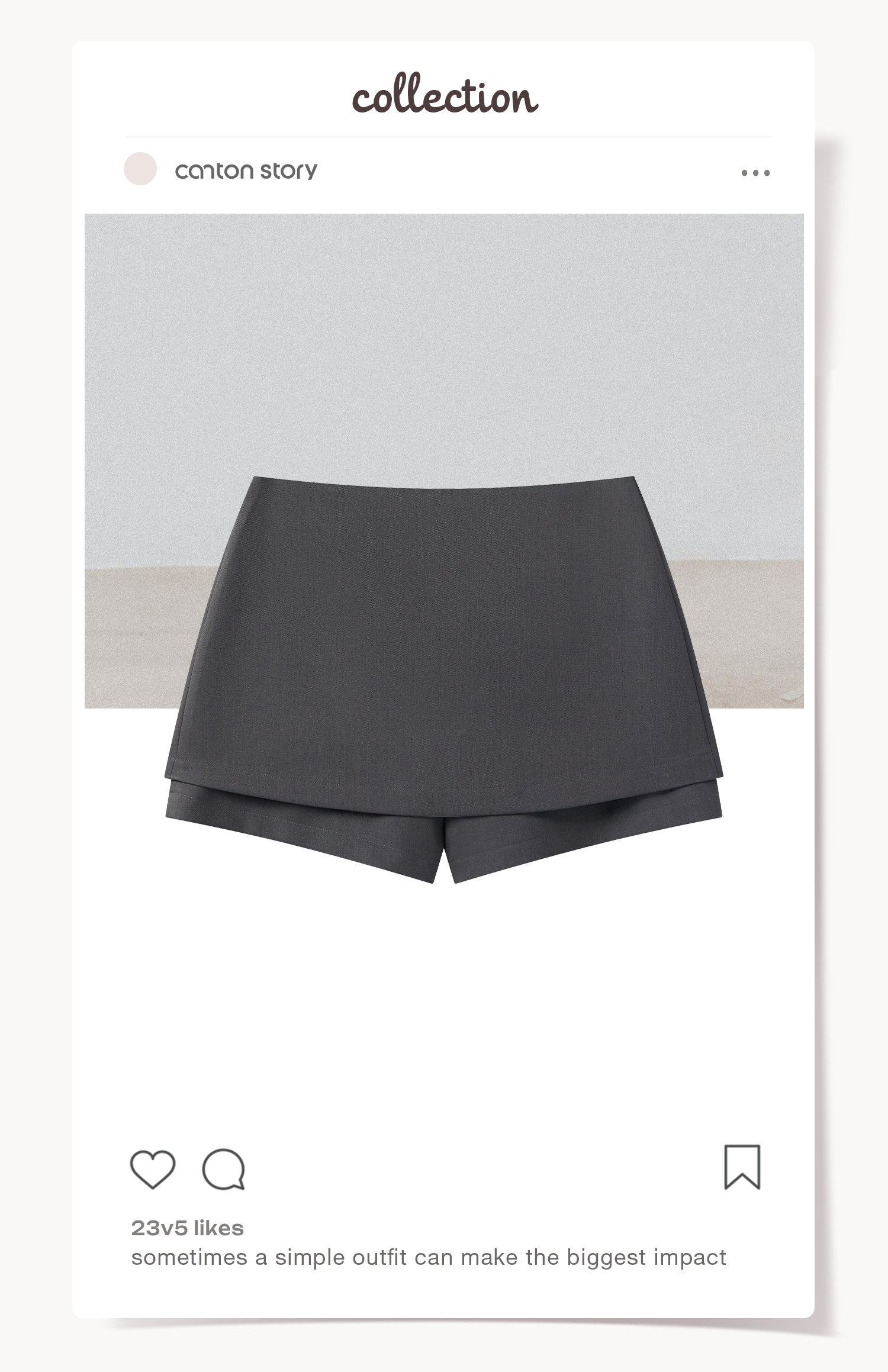 cantonstory Retro Gray High Waist Faux Two Piece Skirt Pants
