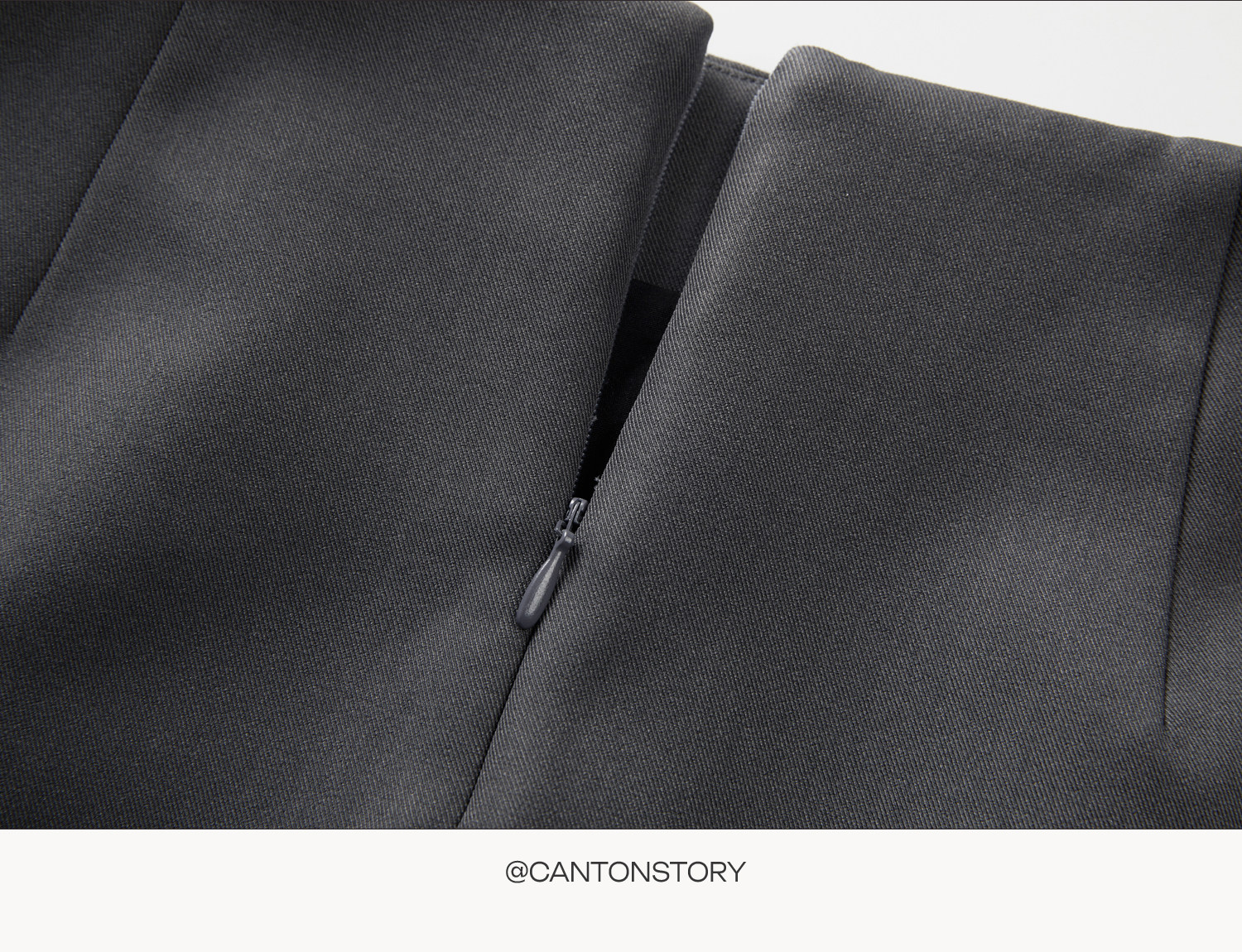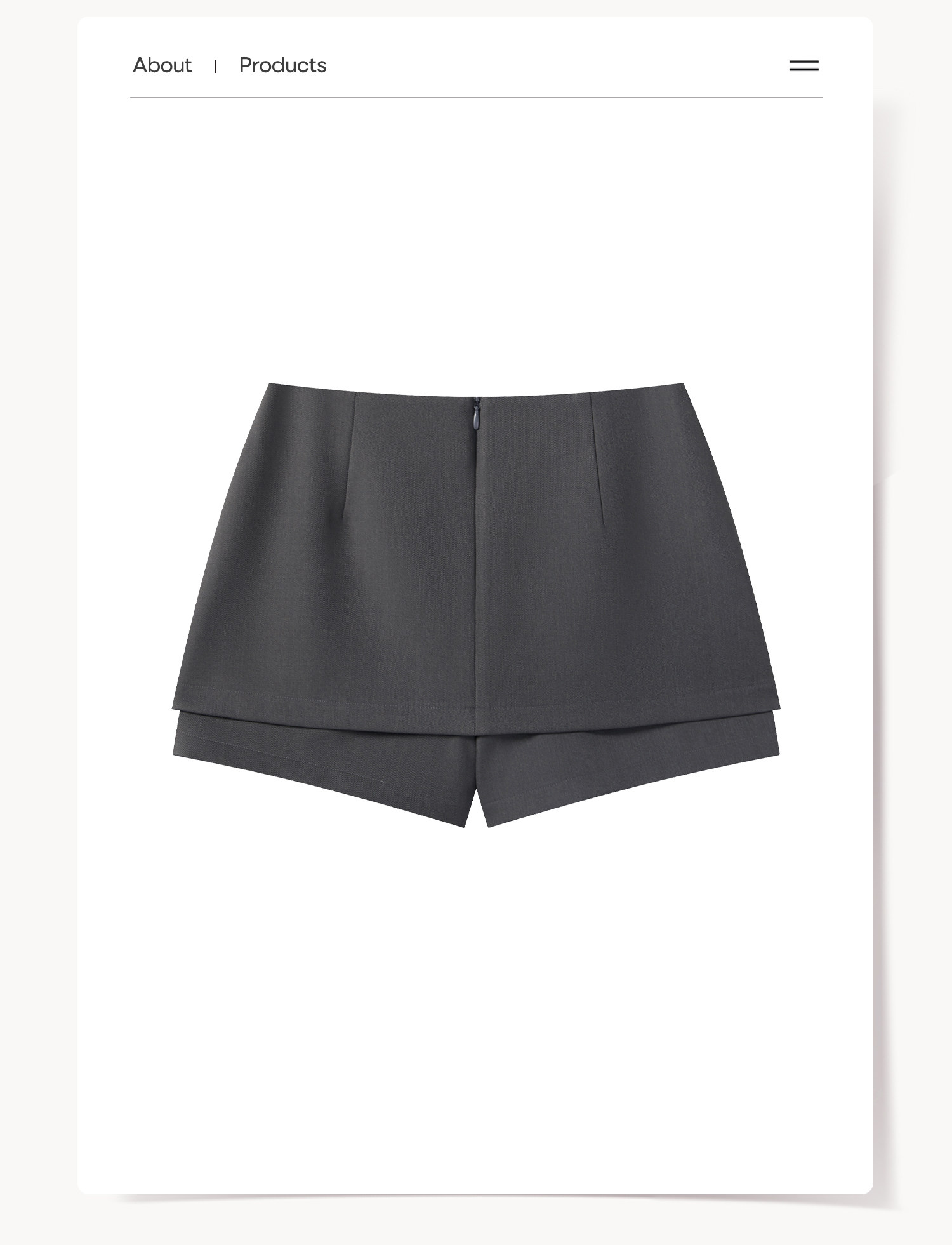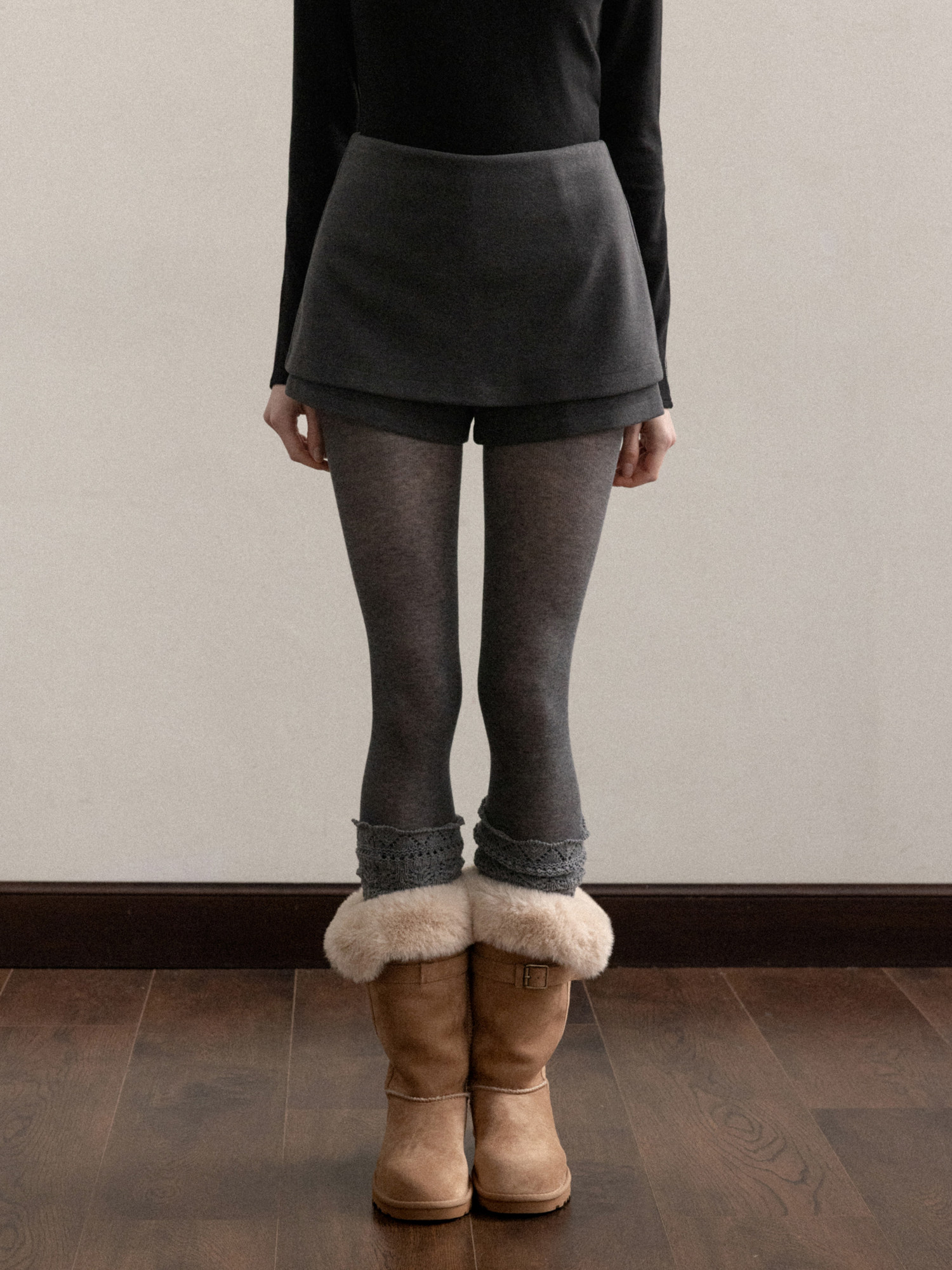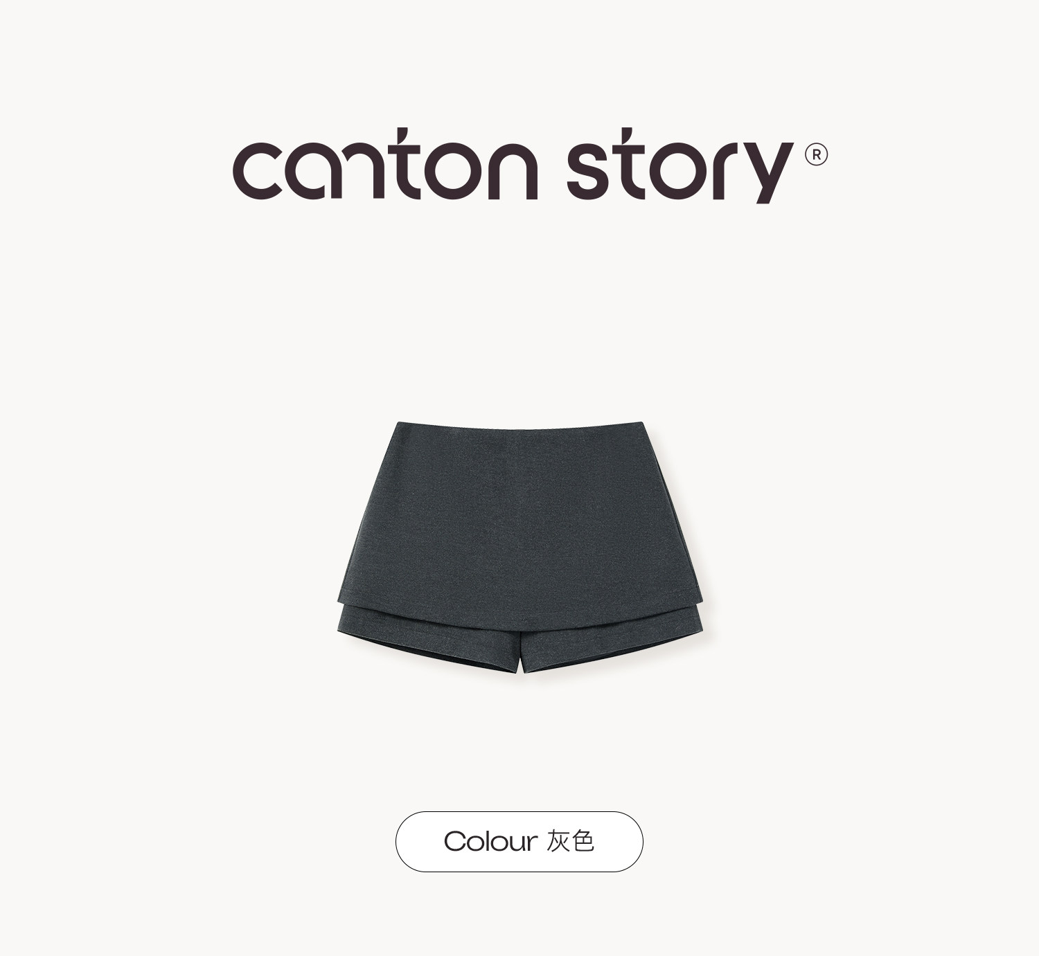 cantonstory Retro Gray High Waist Faux Two Piece Skirt Pants