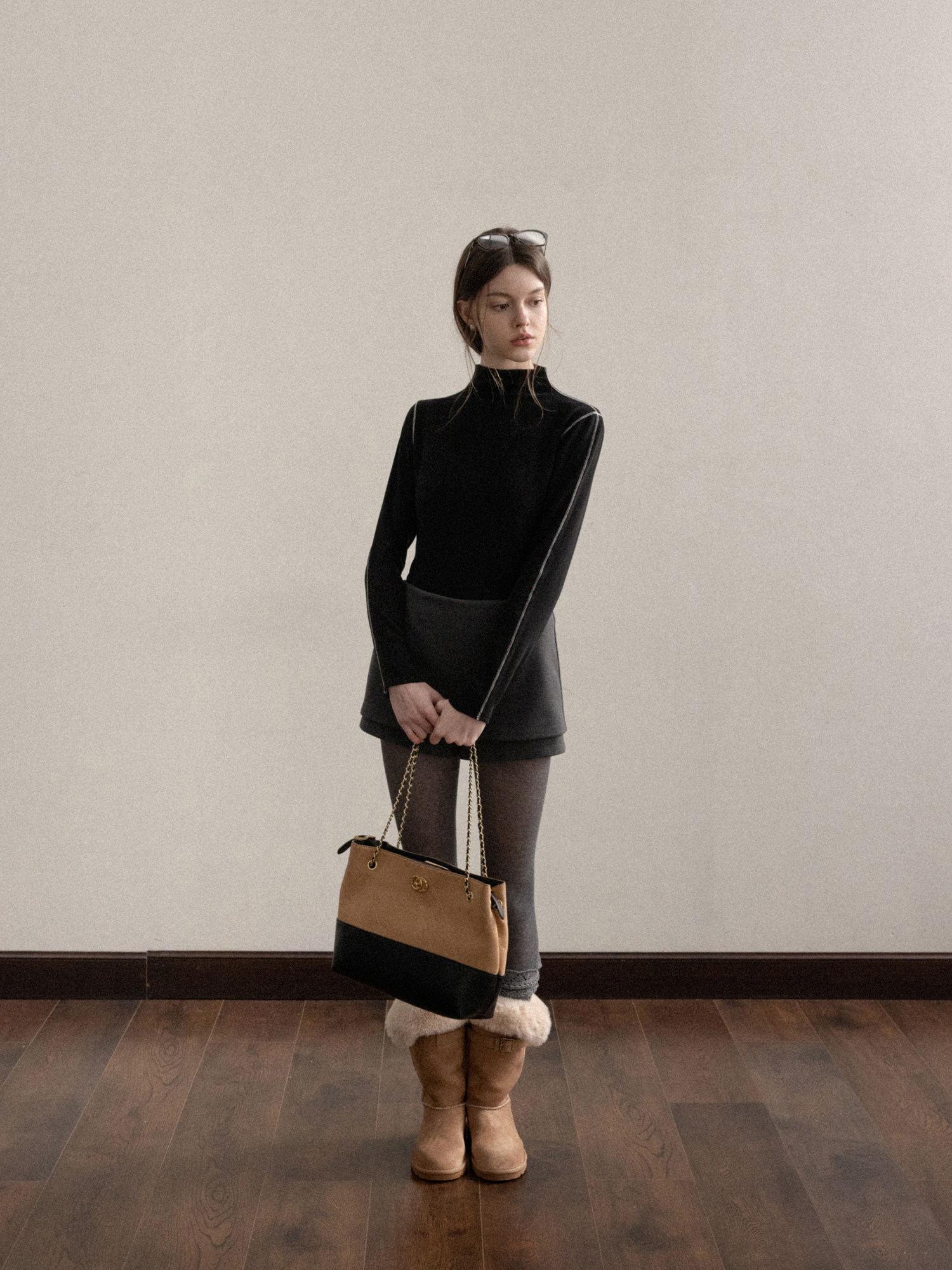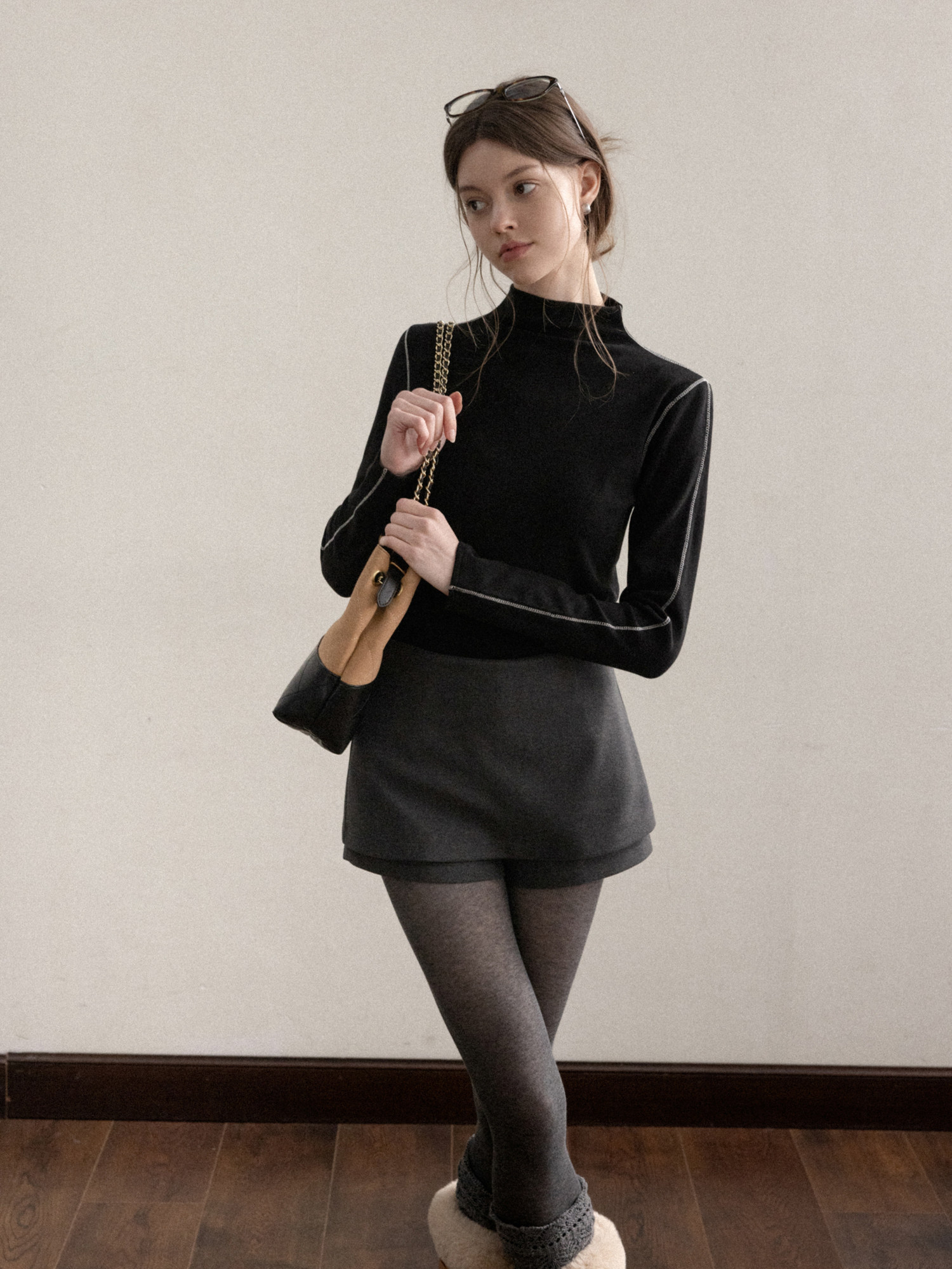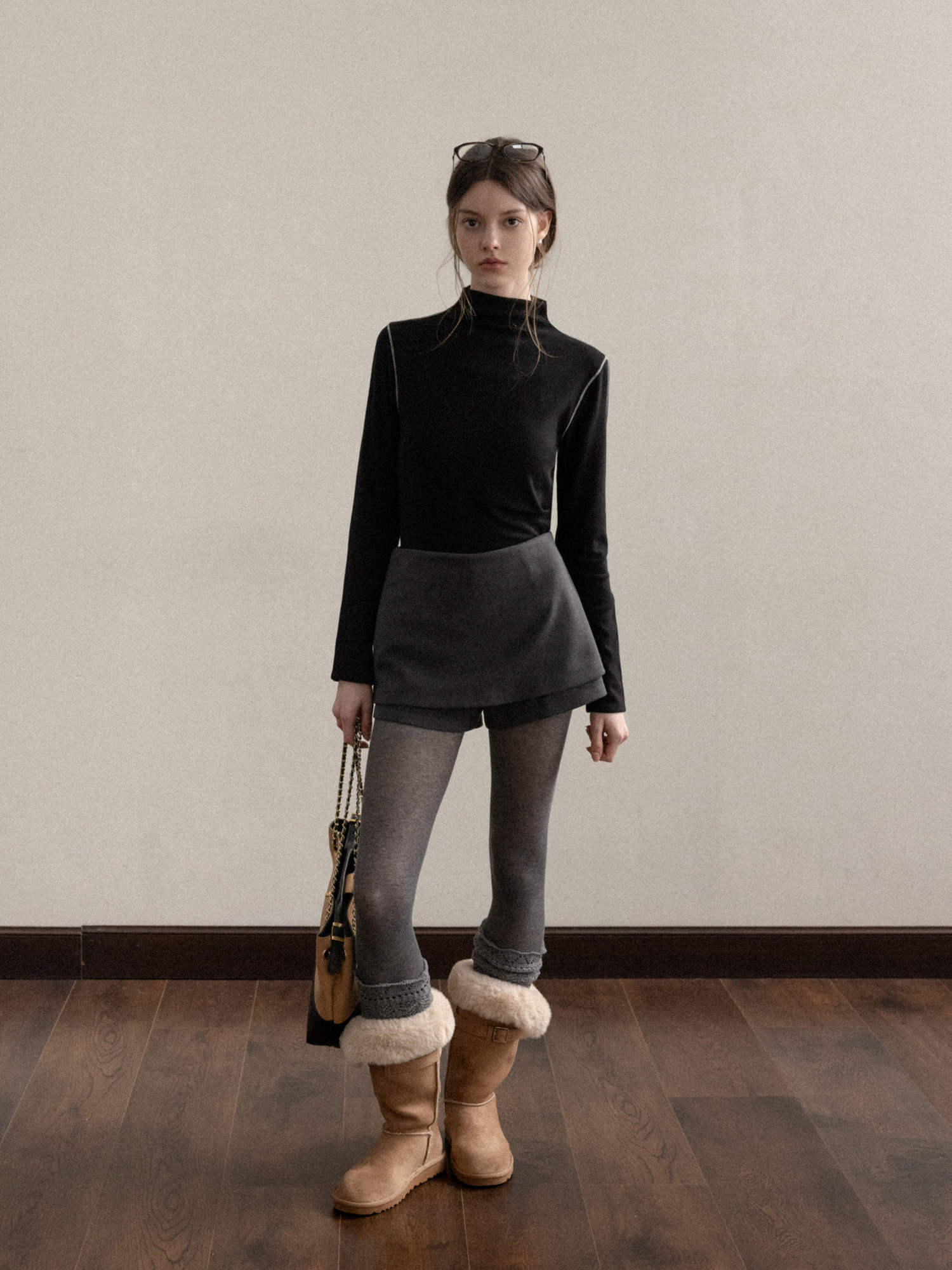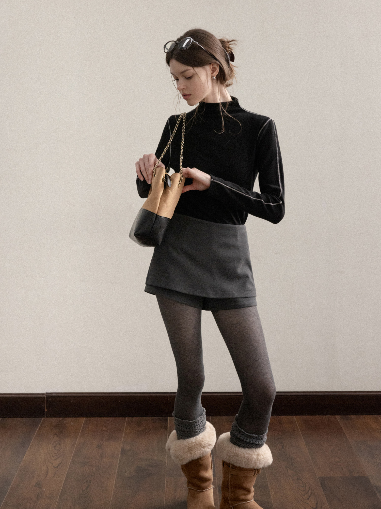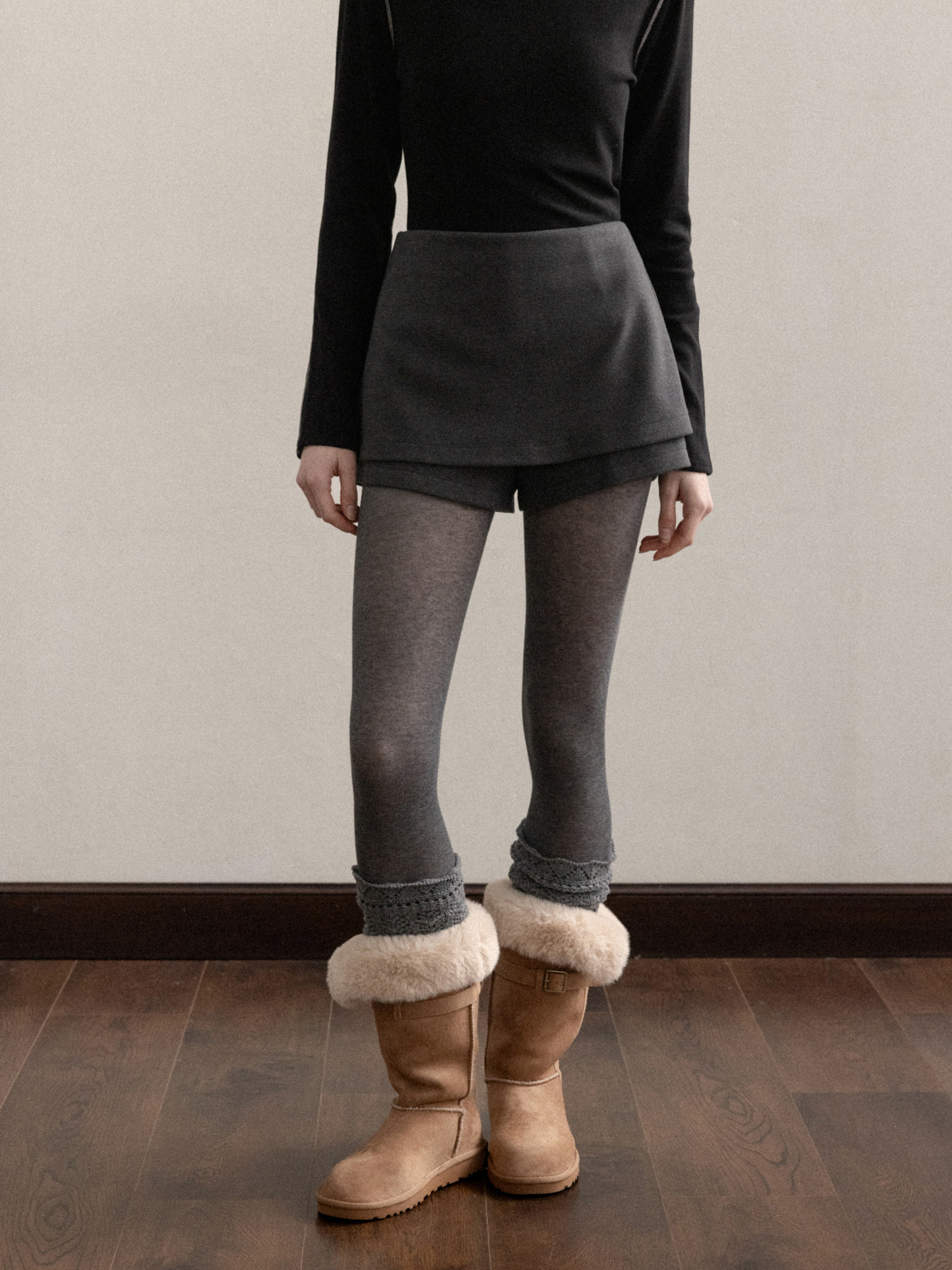 cantonstory Retro Gray High Waist Faux Two Piece Skirt Pants