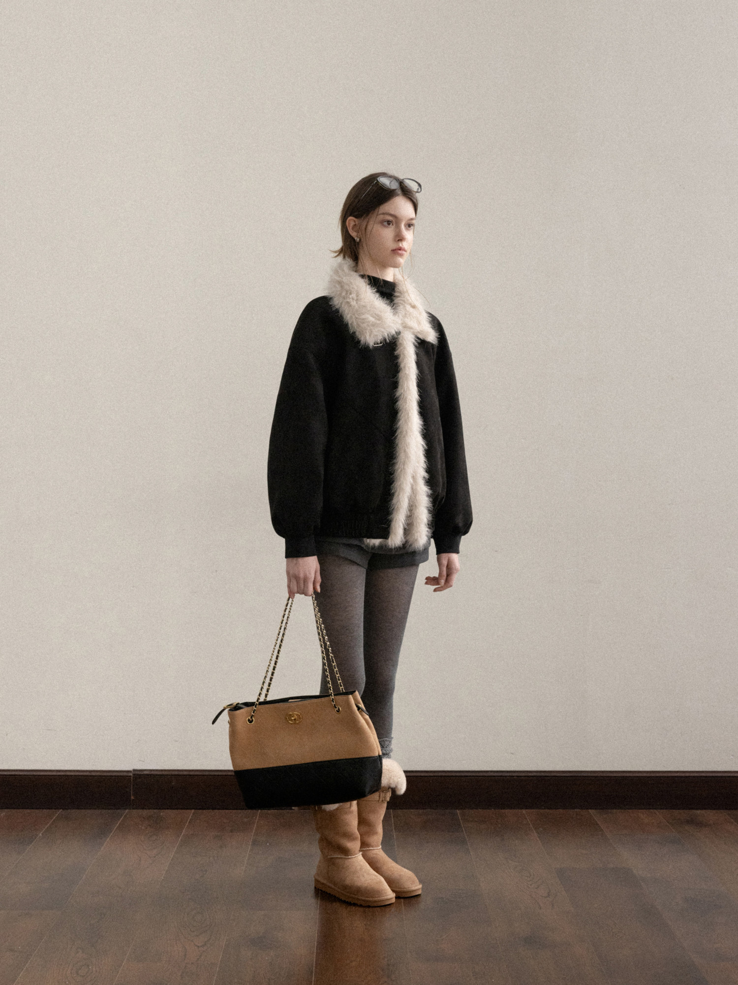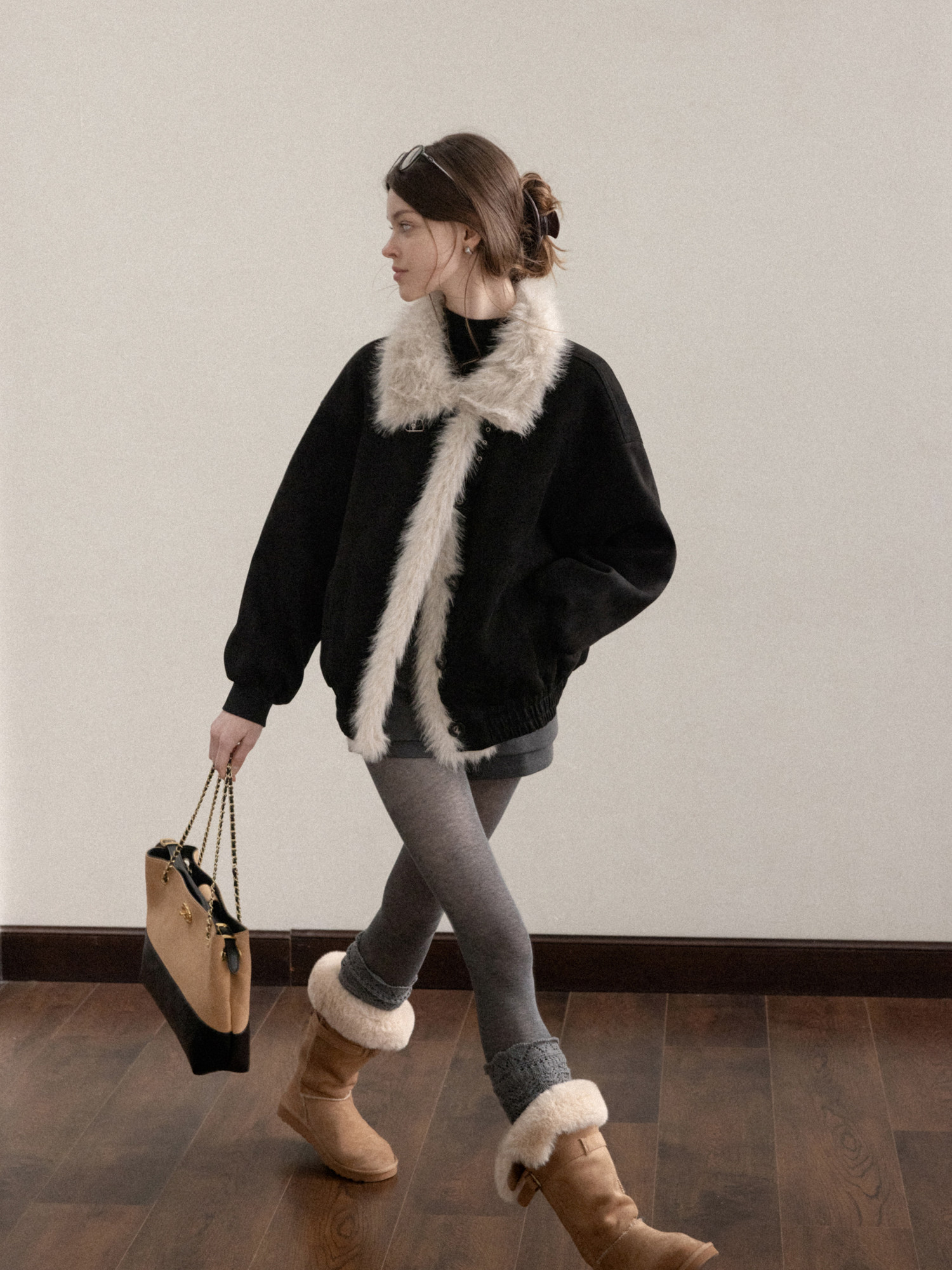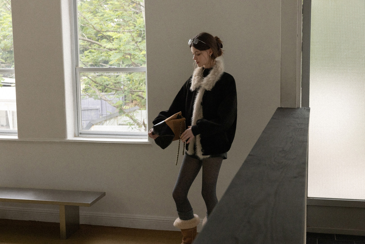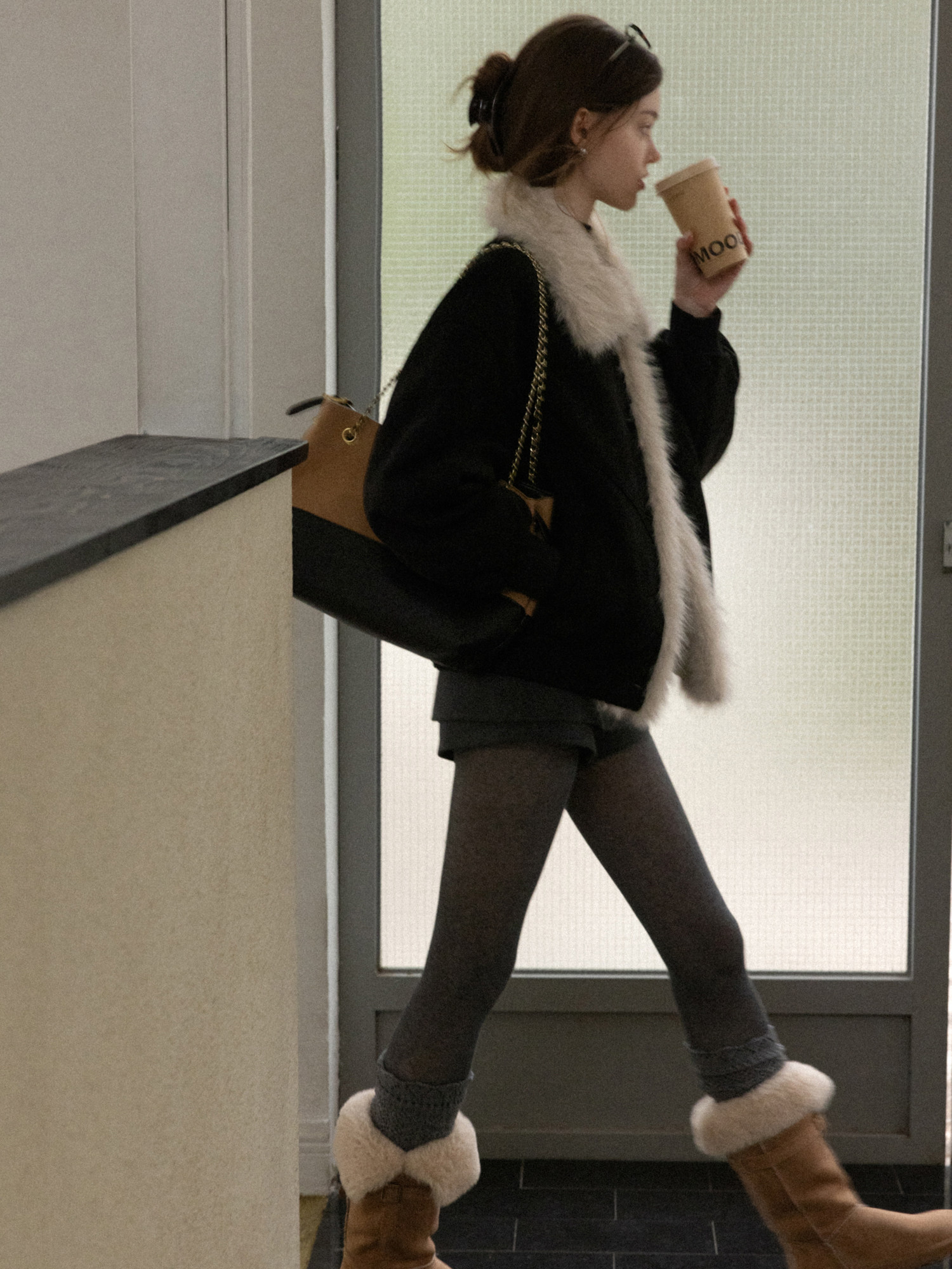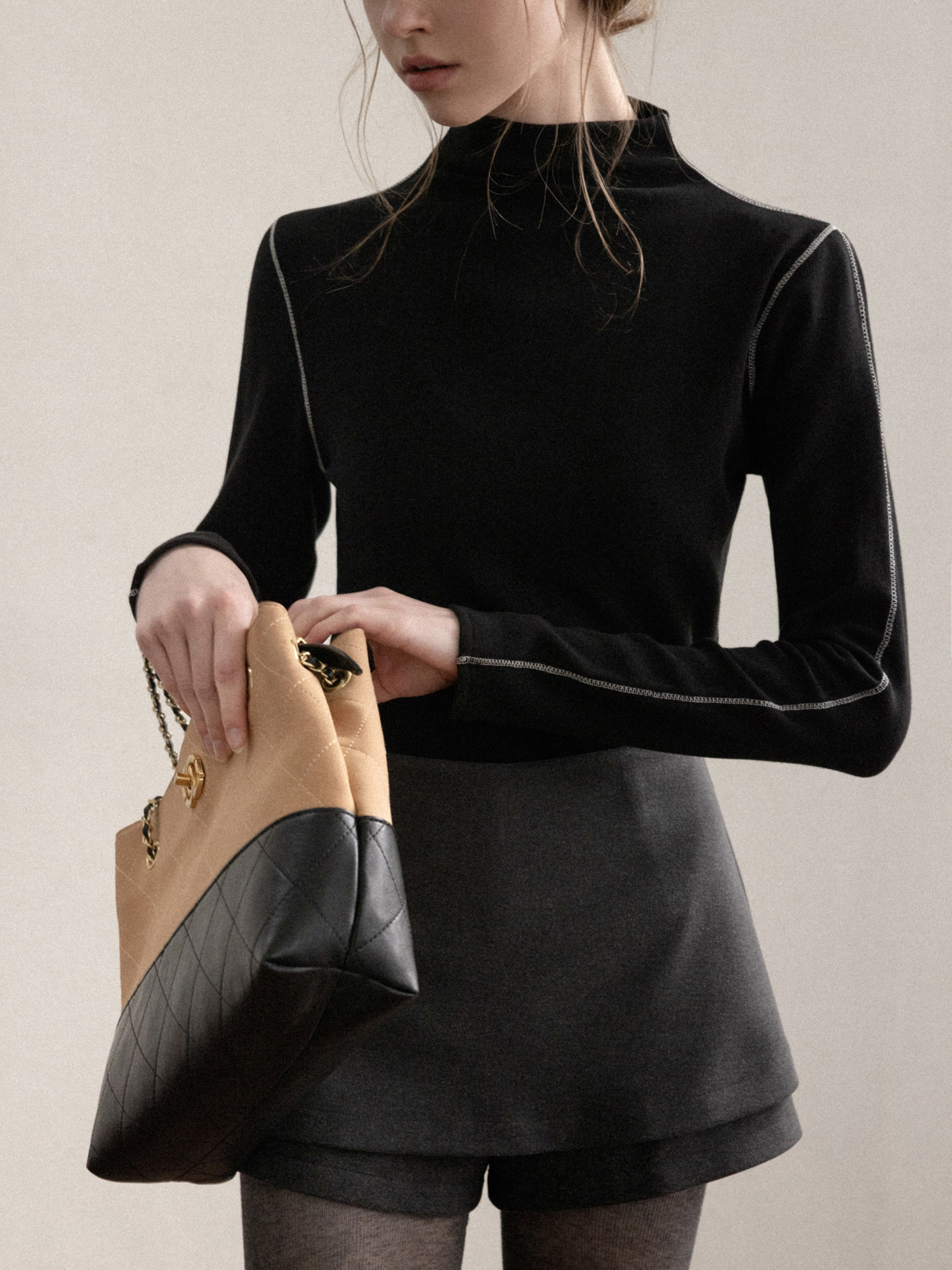 cantonstory Retro Gray High Waist Faux Two Piece Skirt Pants