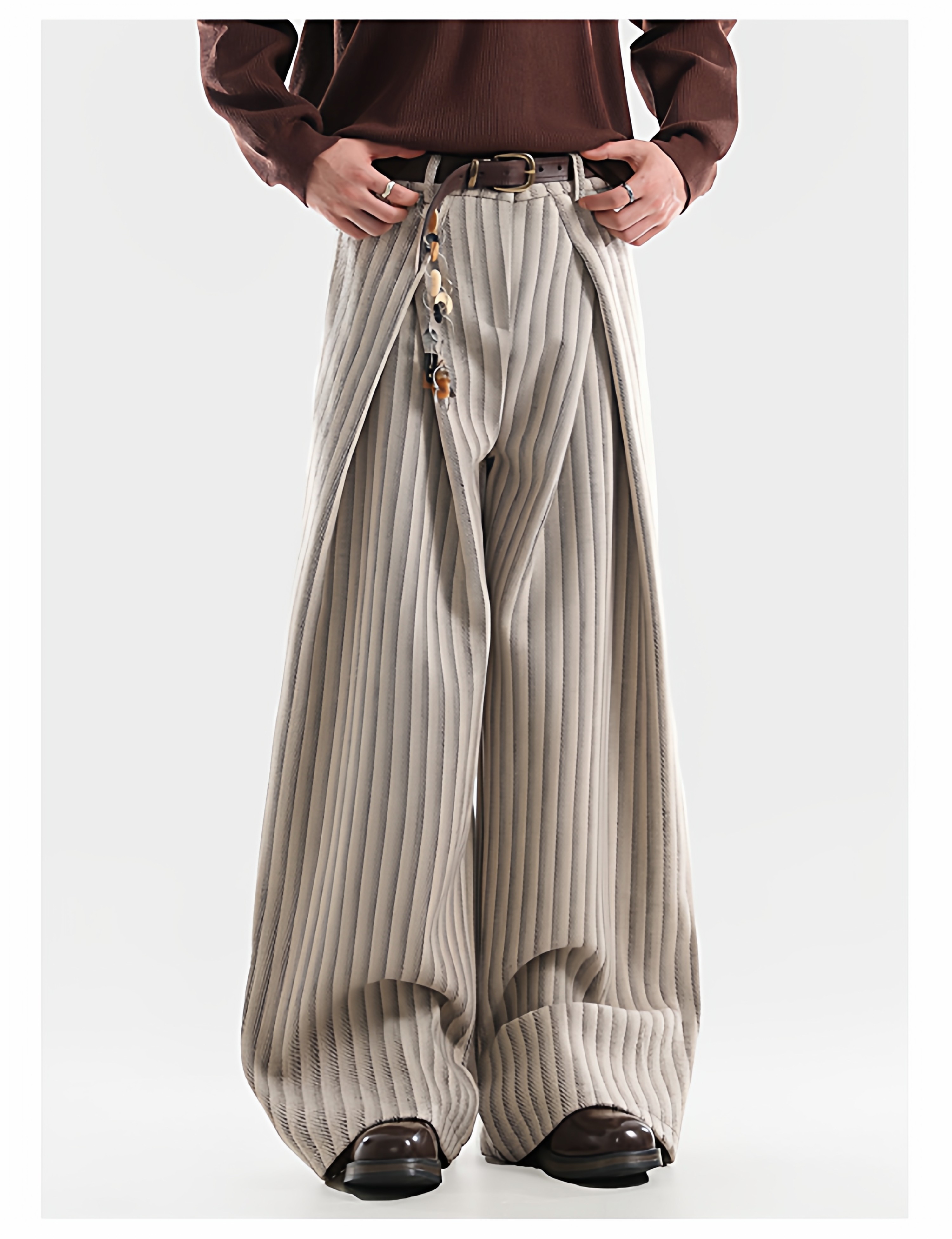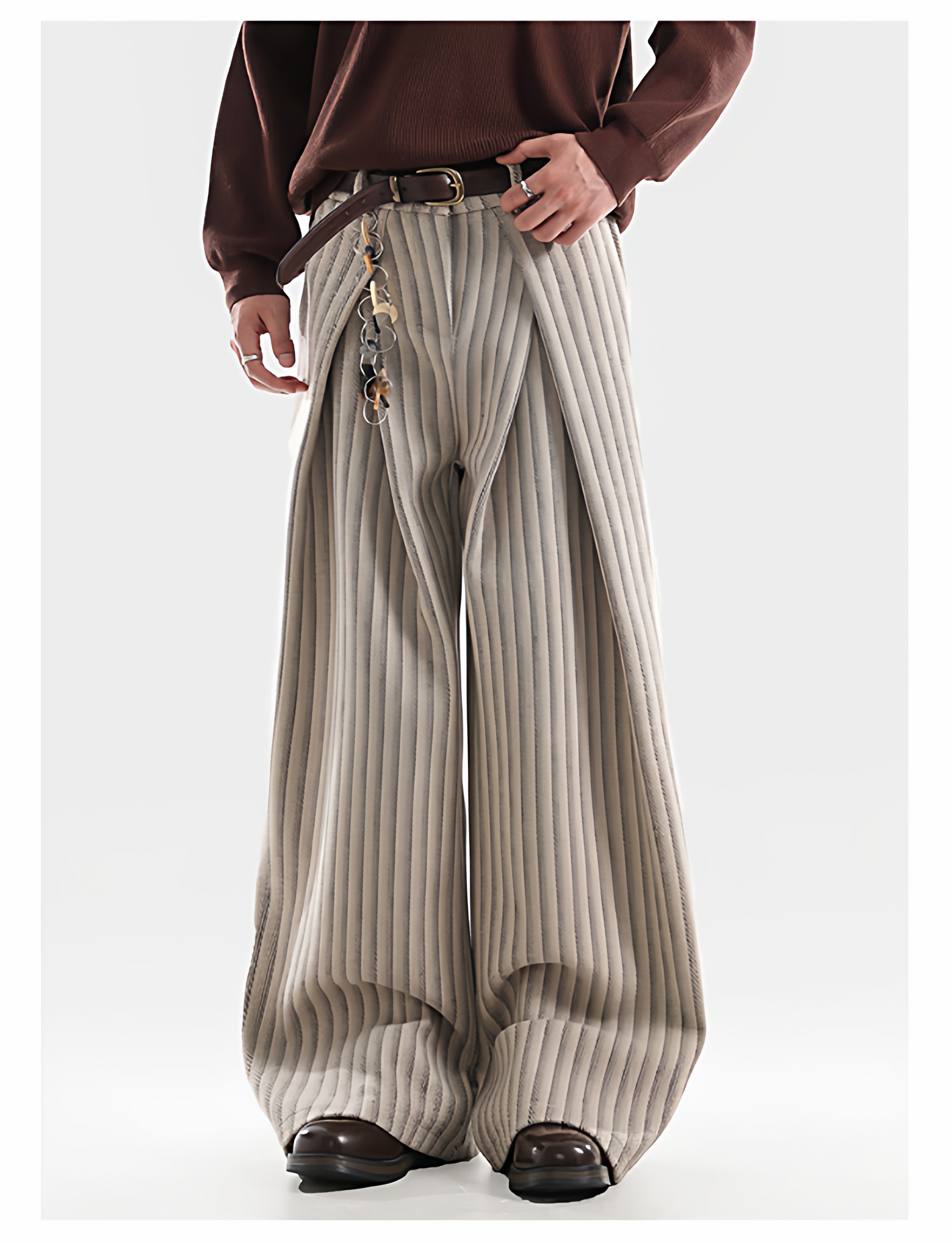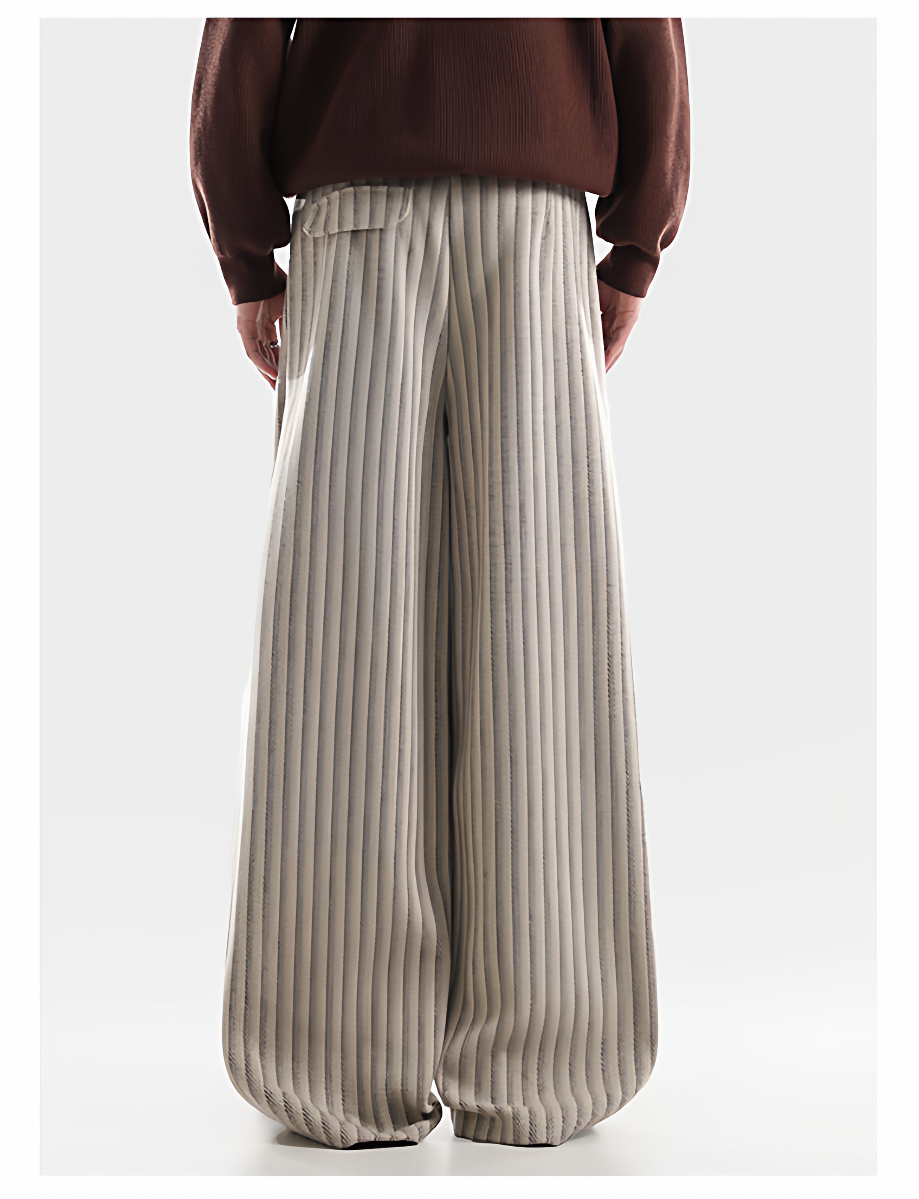 American Retro Pleated Striped Wool Wide Leg Pants