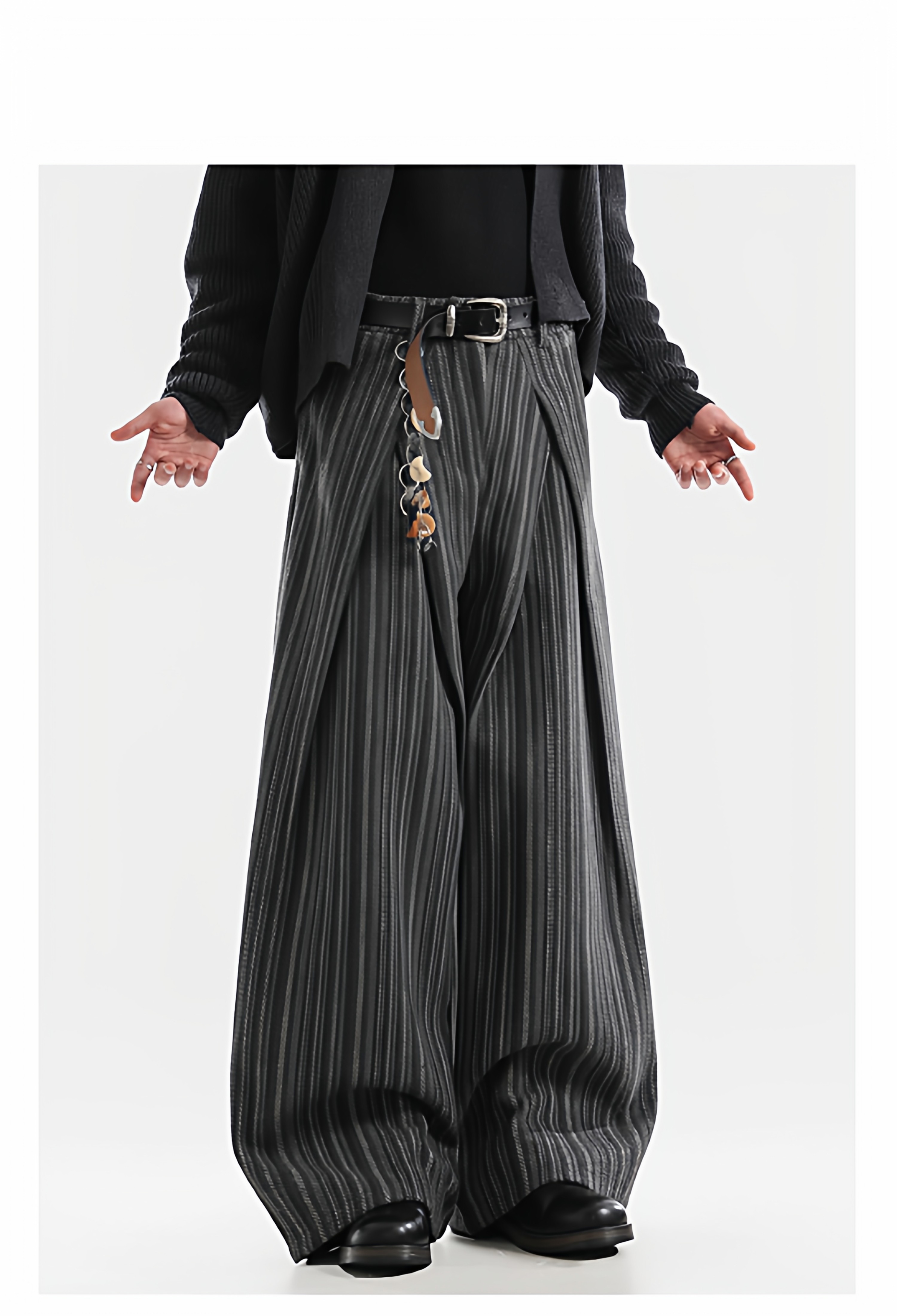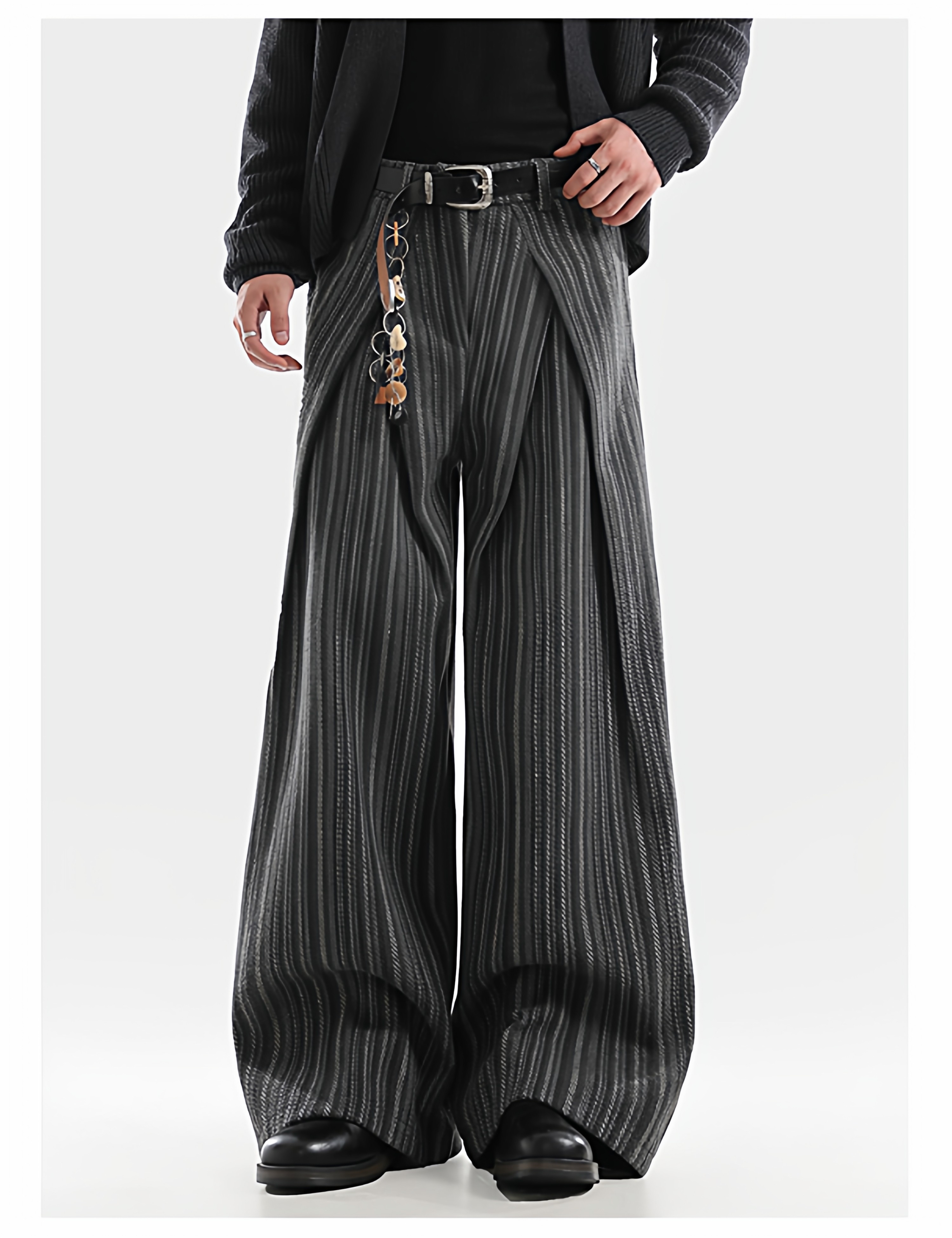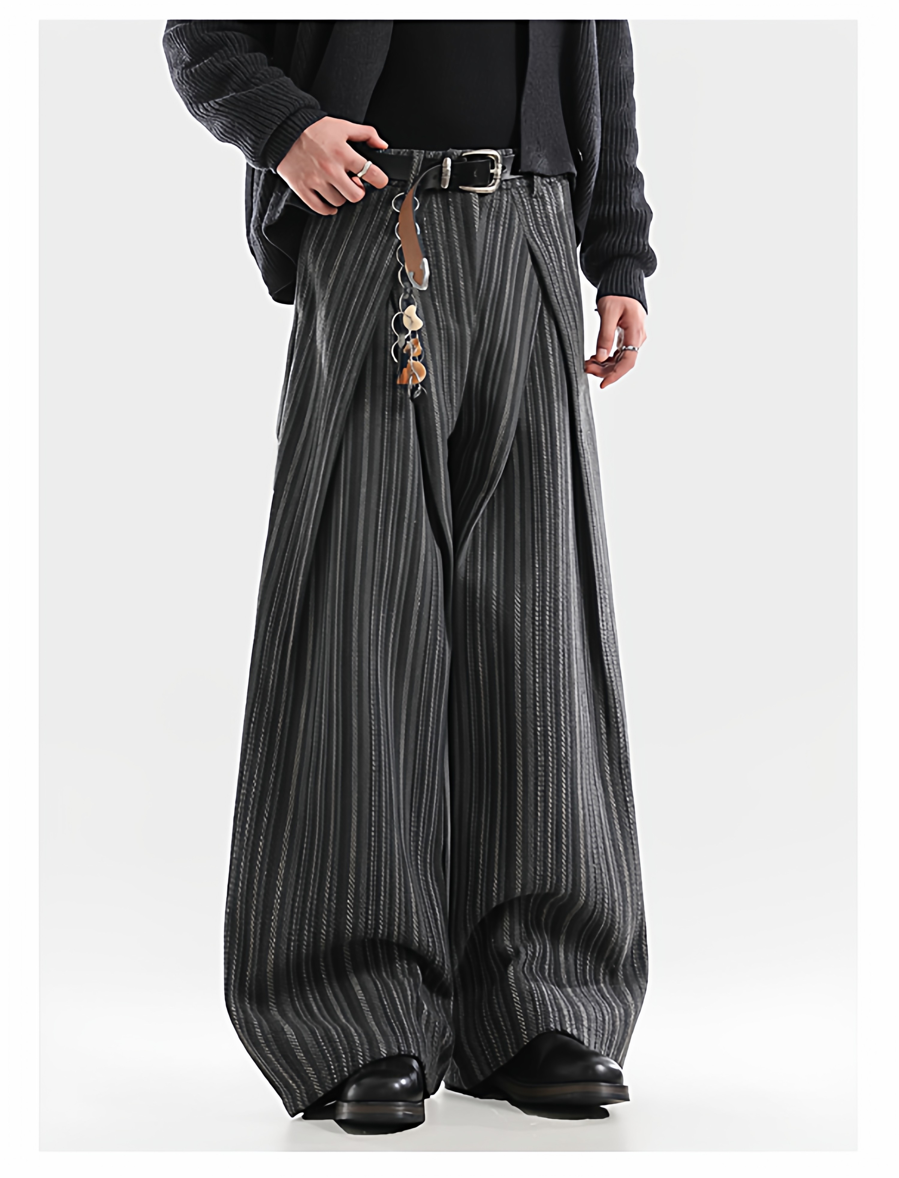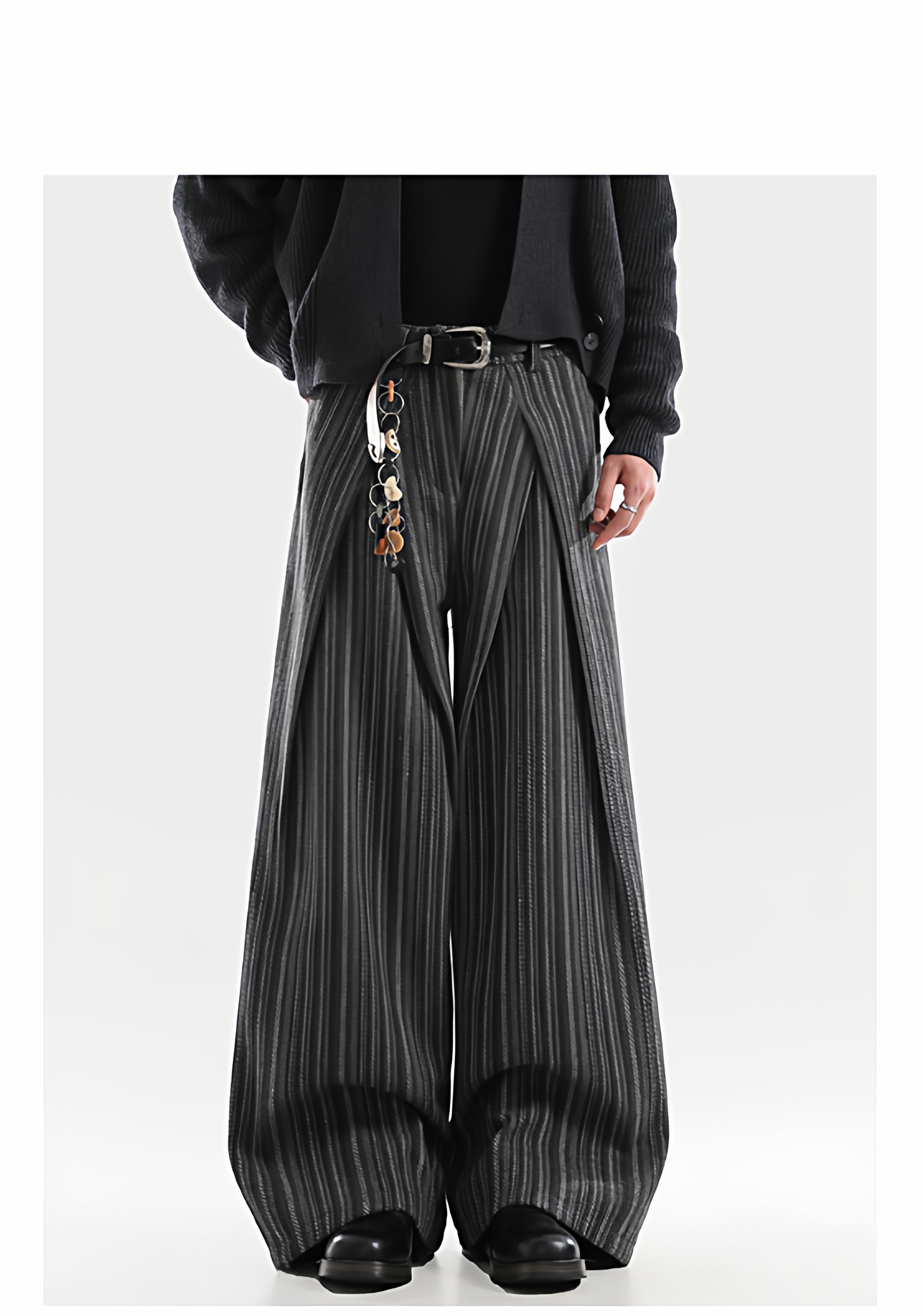 American Retro Pleated Striped Wool Wide Leg Pants