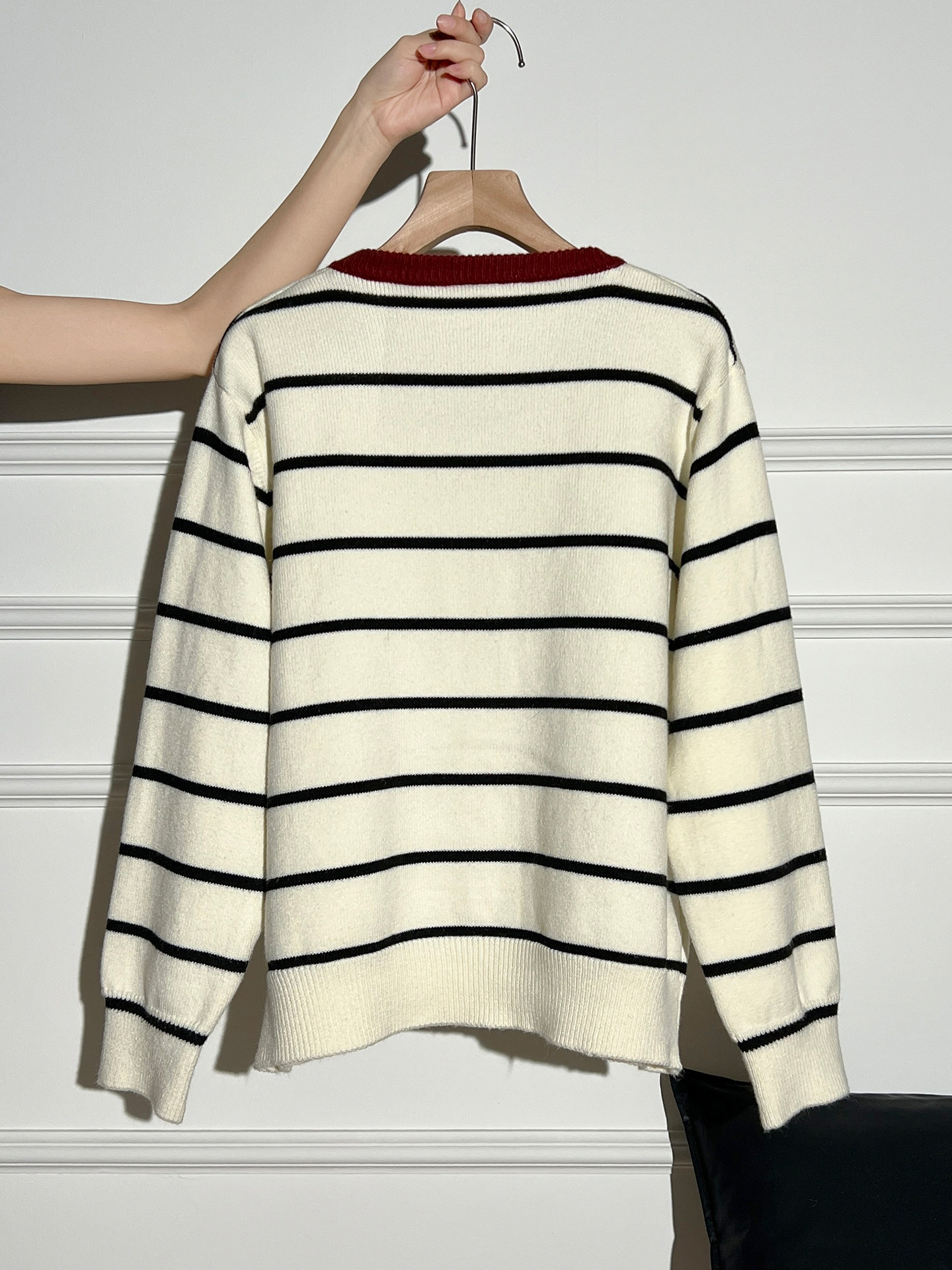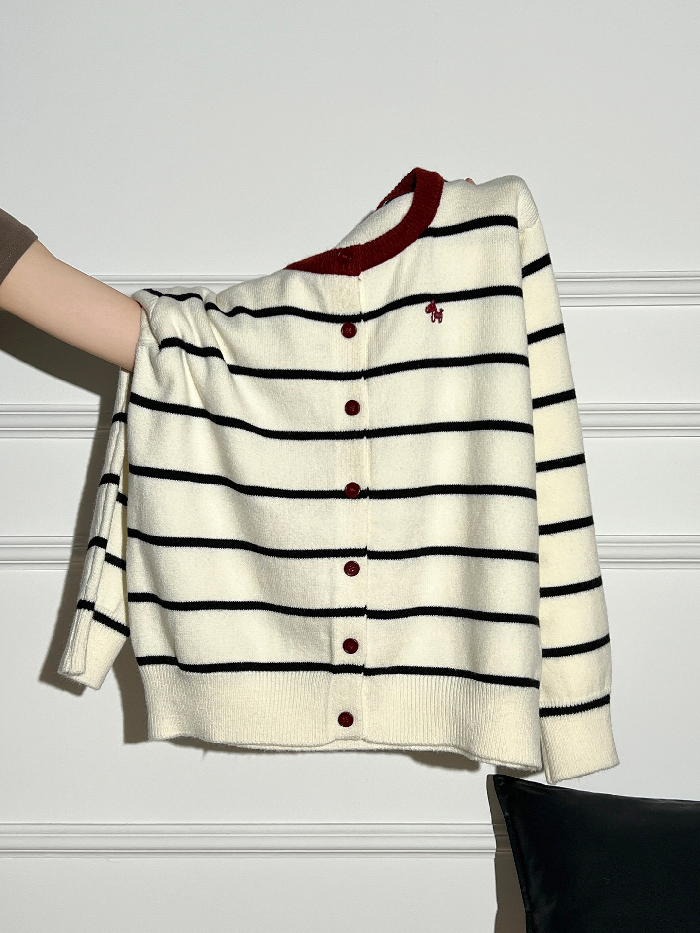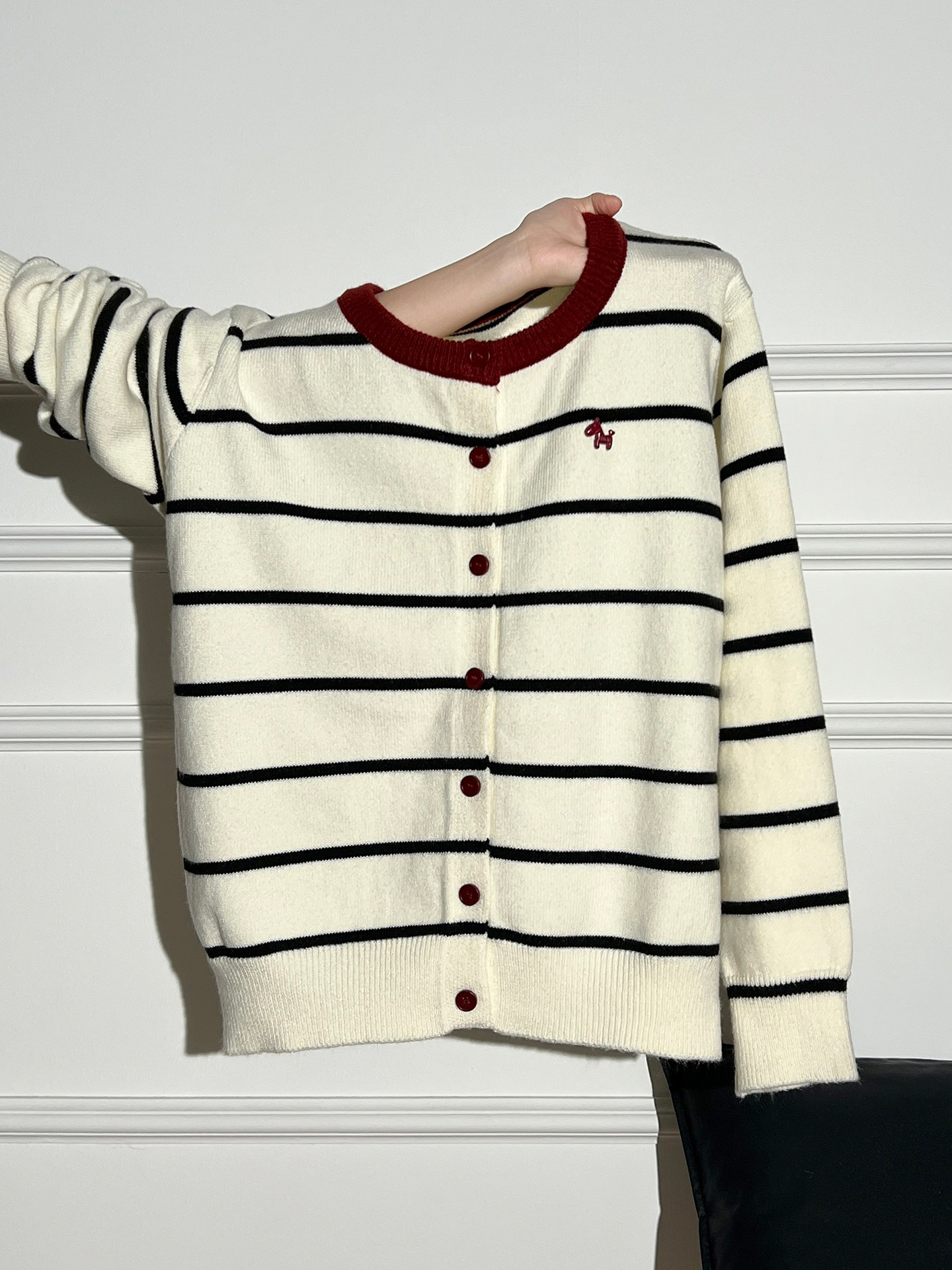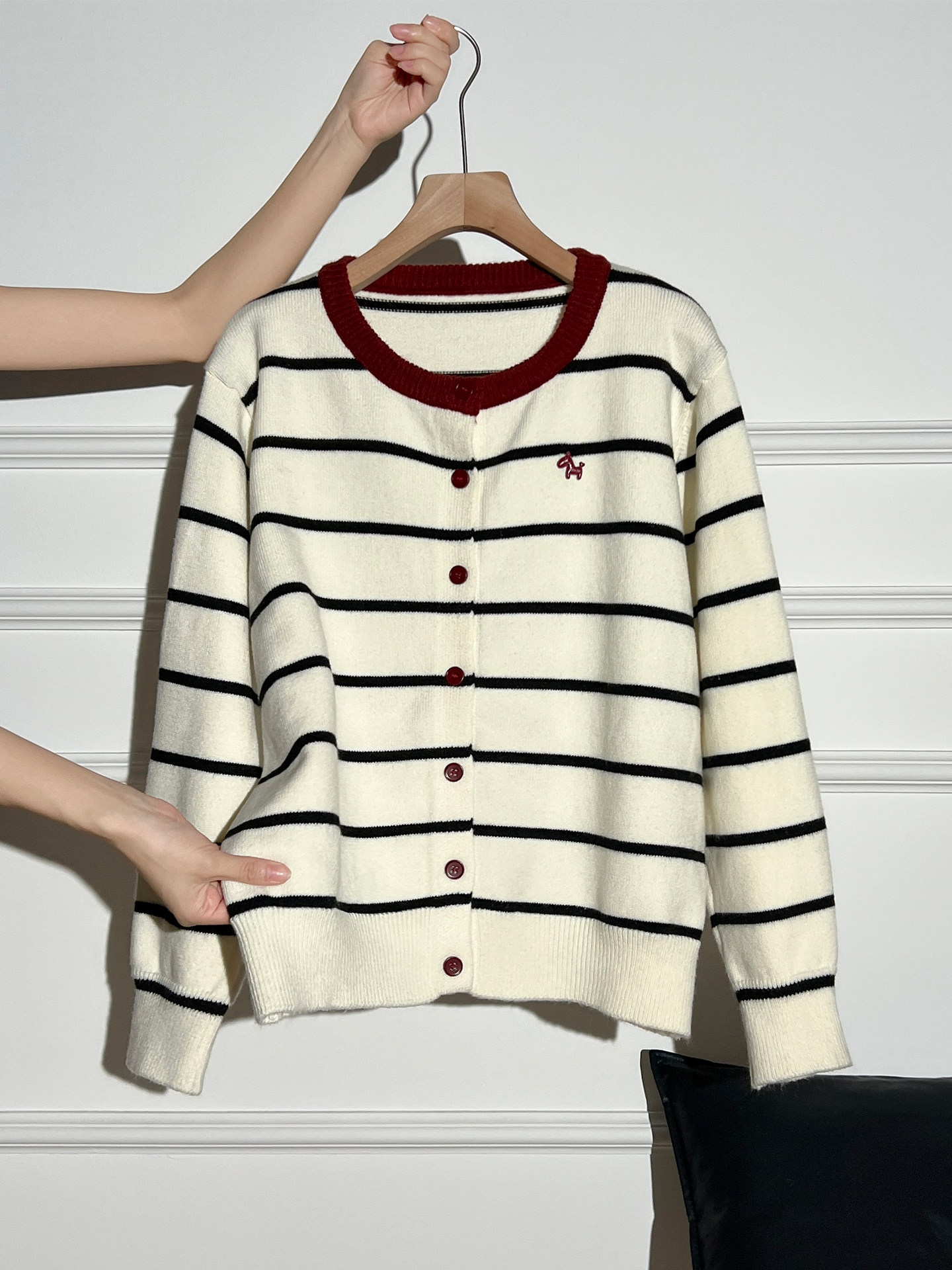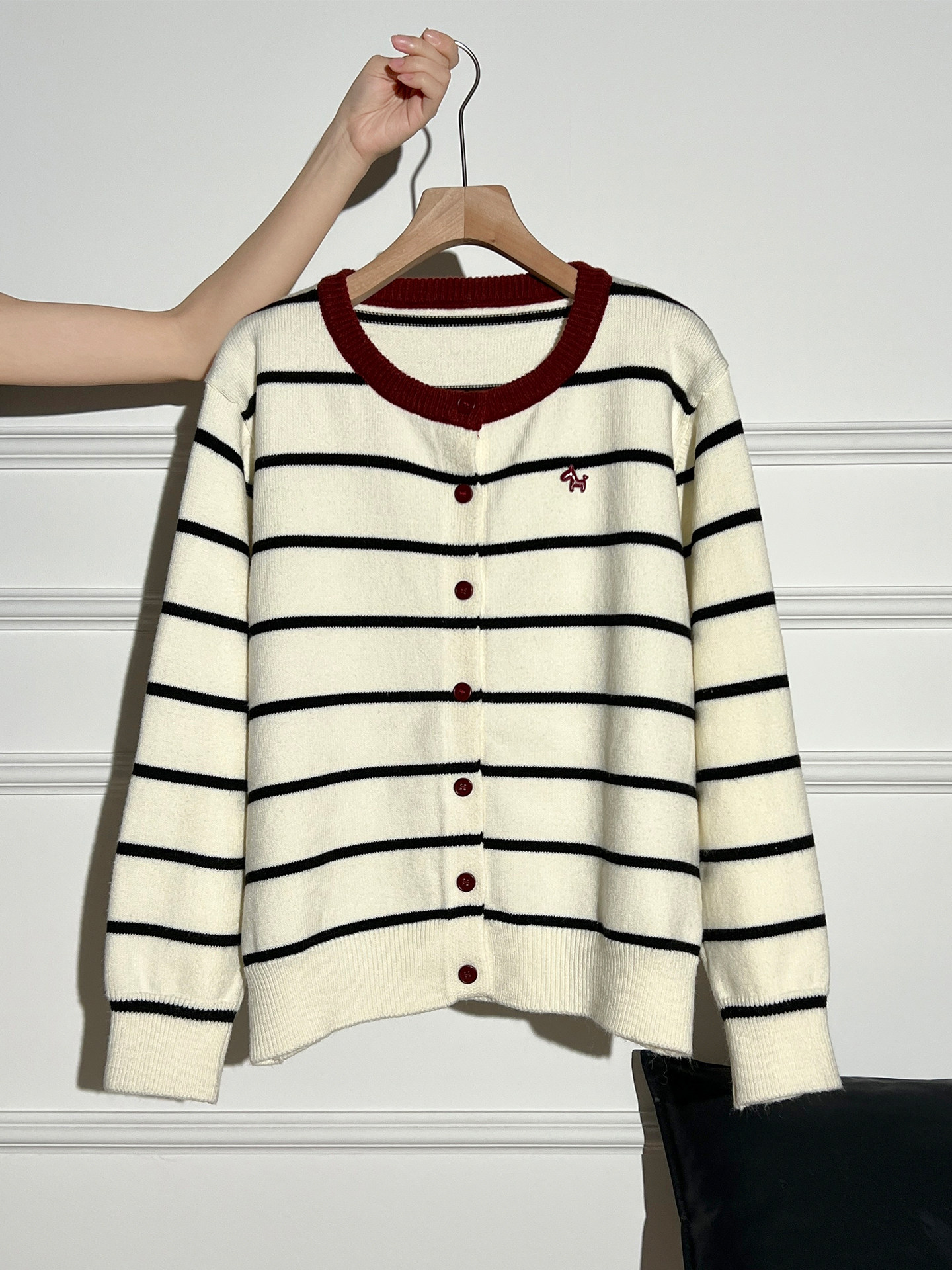 AUDISTY Pony Embroidery Contrast Striped Sweater Cardigan