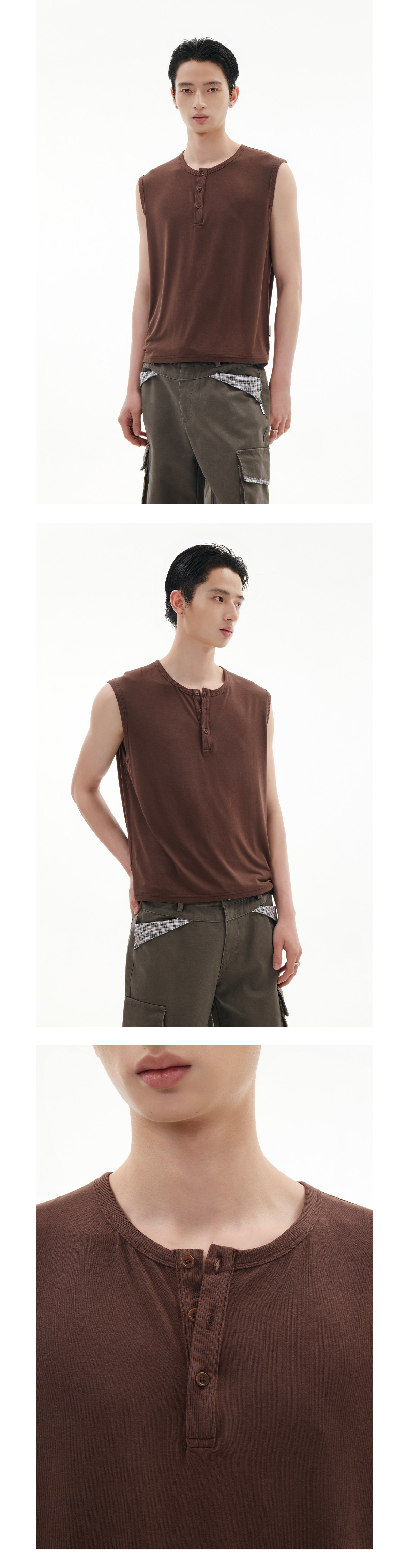 FUNKYFUN Versatile Henry Neck Loose Sleeveless Vest