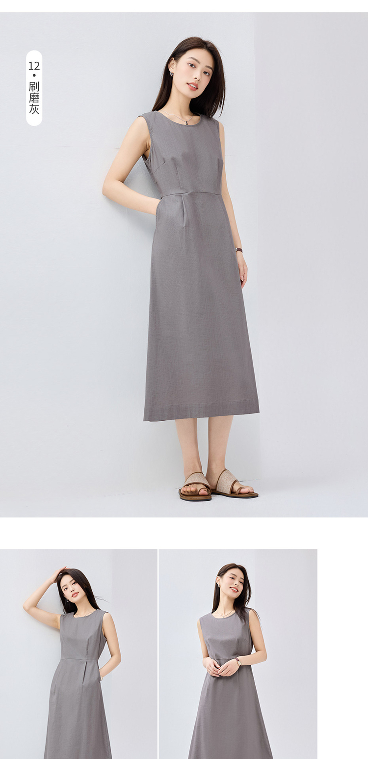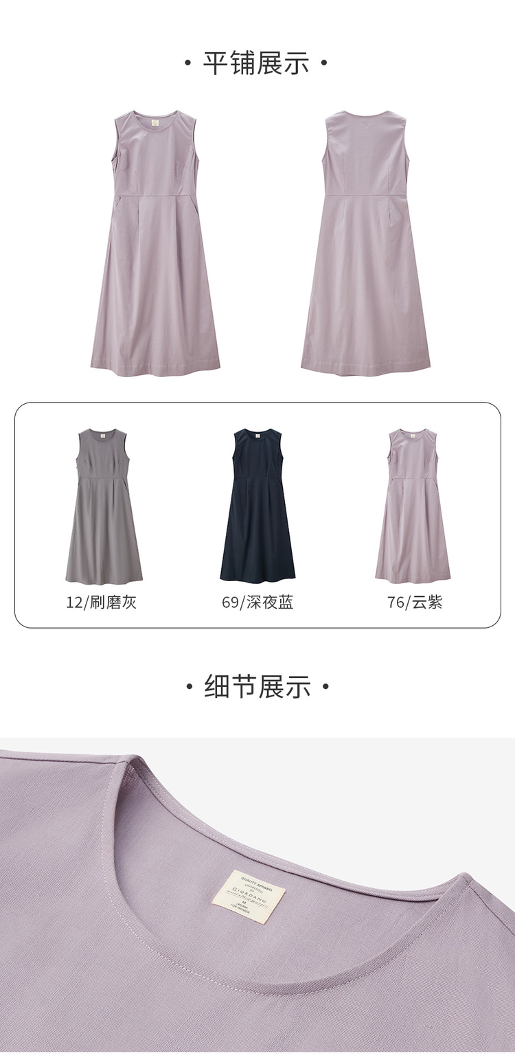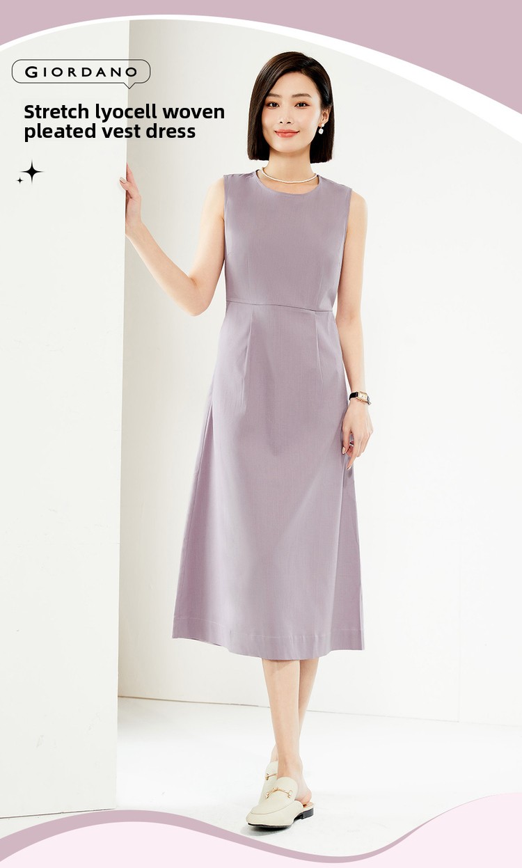 Giordano Minimalist Pleated Round Neck Sleeveless Dress