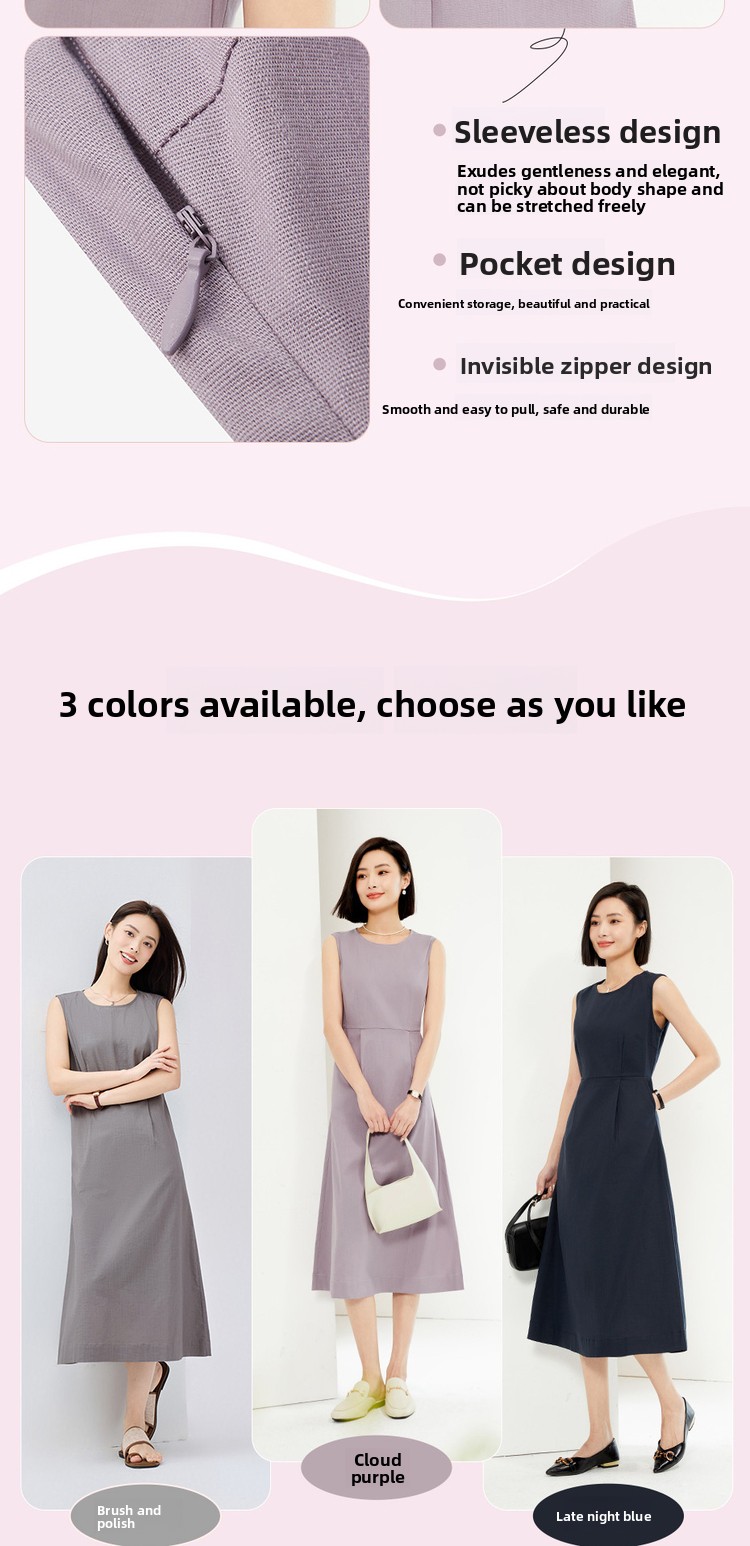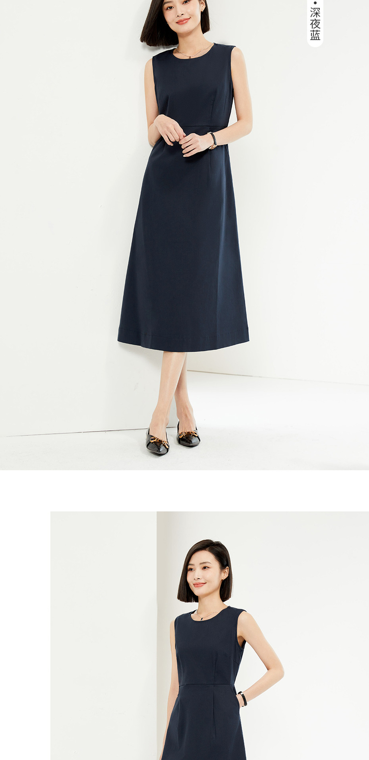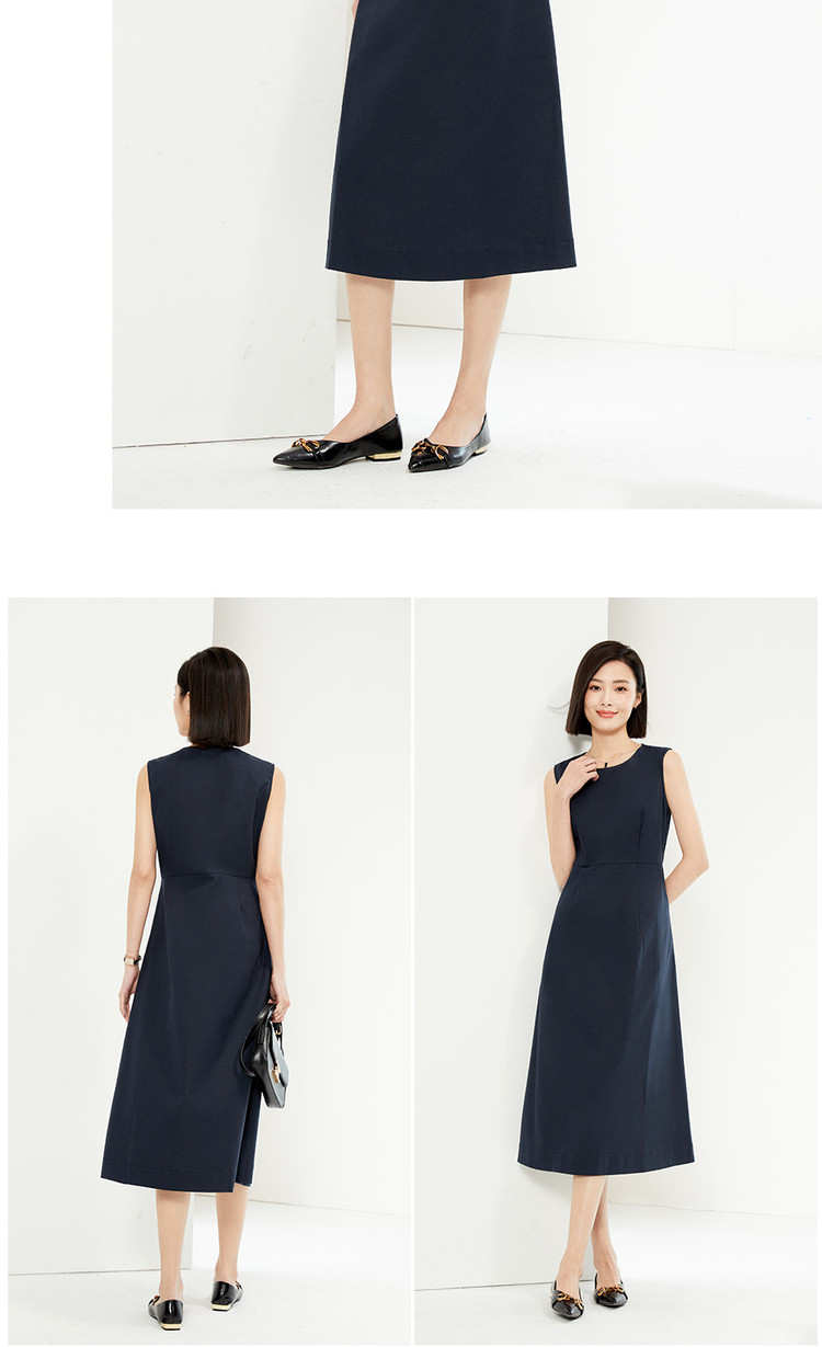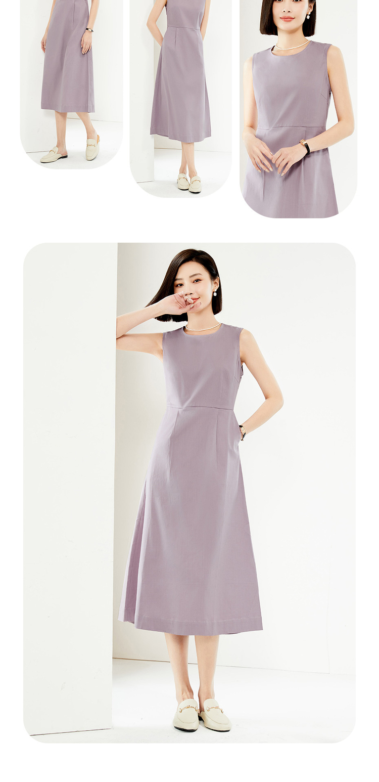 Giordano Minimalist Pleated Round Neck Sleeveless Dress