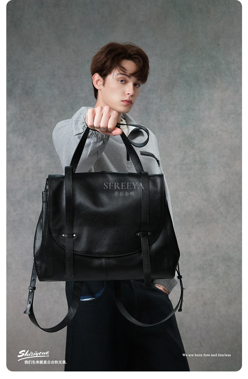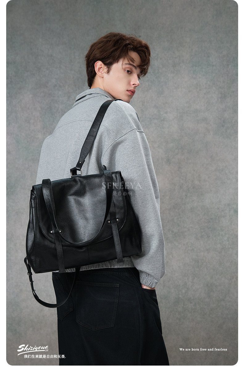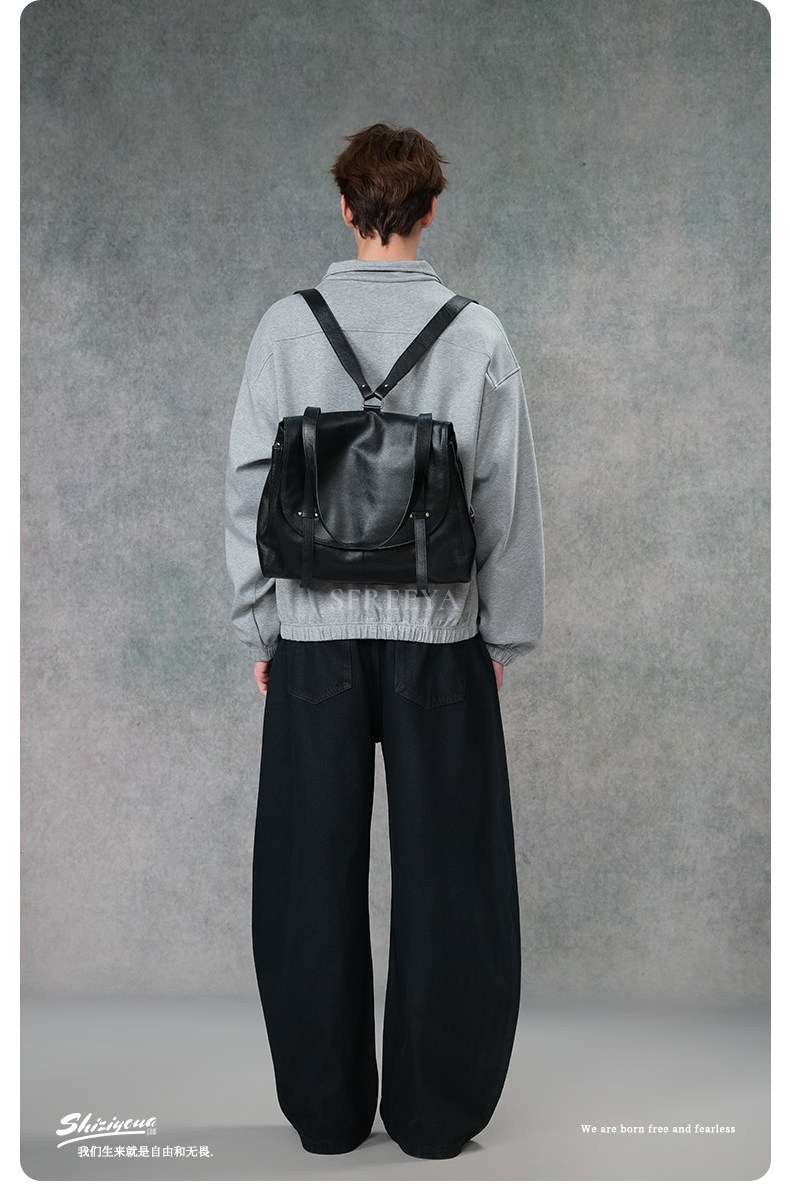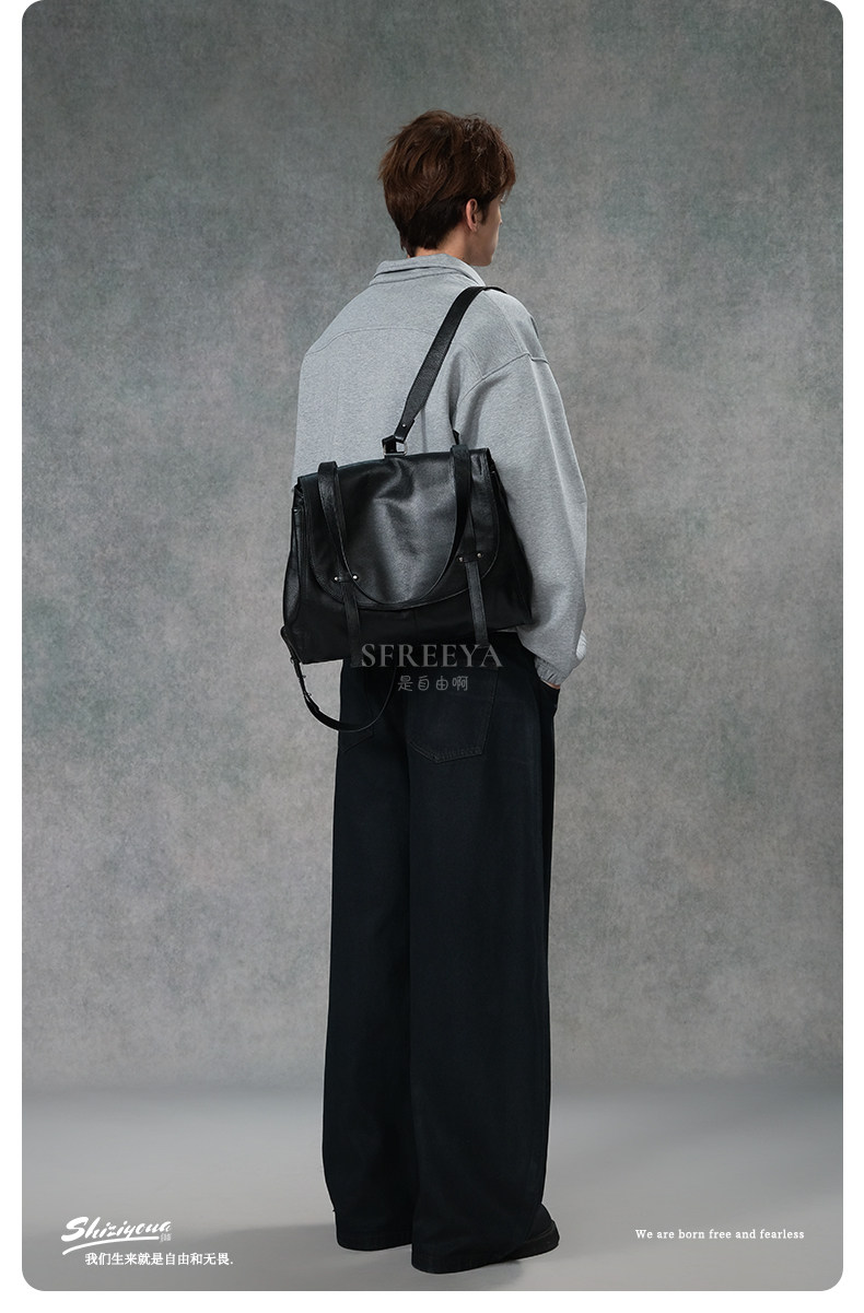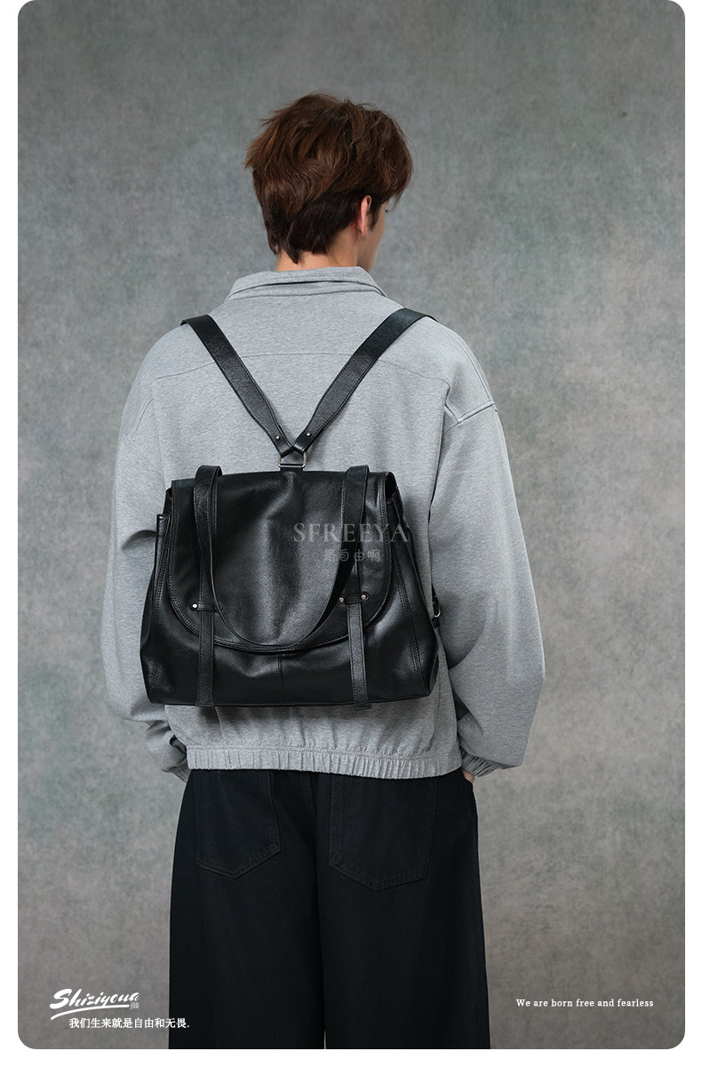 SFREEYA Retro Cowhide Messenger Backpack