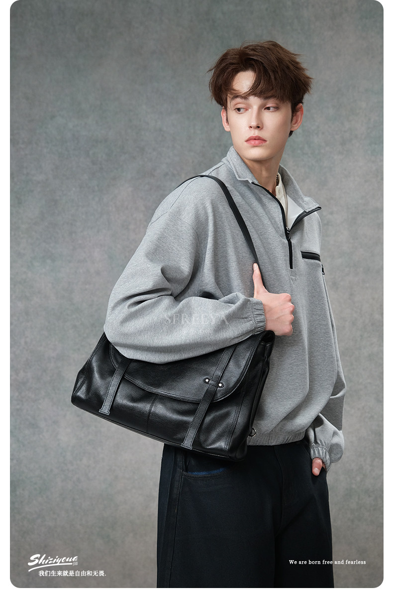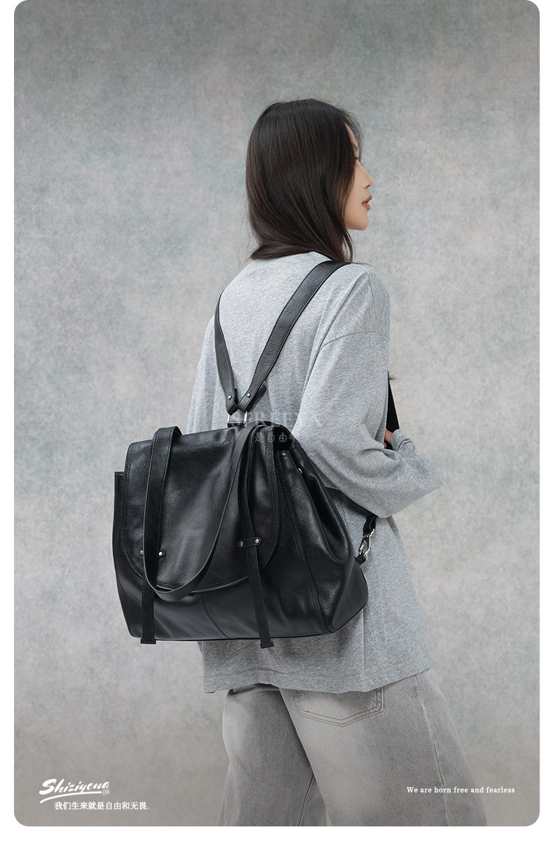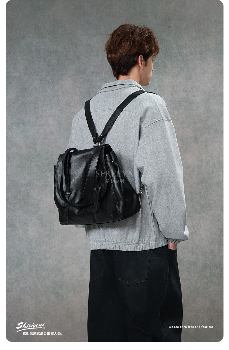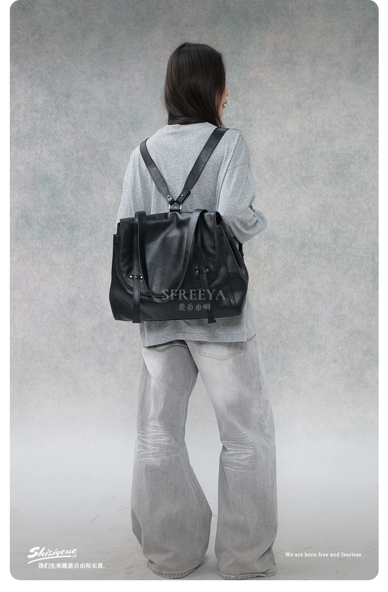 SFREEYA Retro Cowhide Messenger Backpack