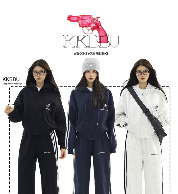 KKBBU Three Stripe Lazy Jacket Sweatshirt Set