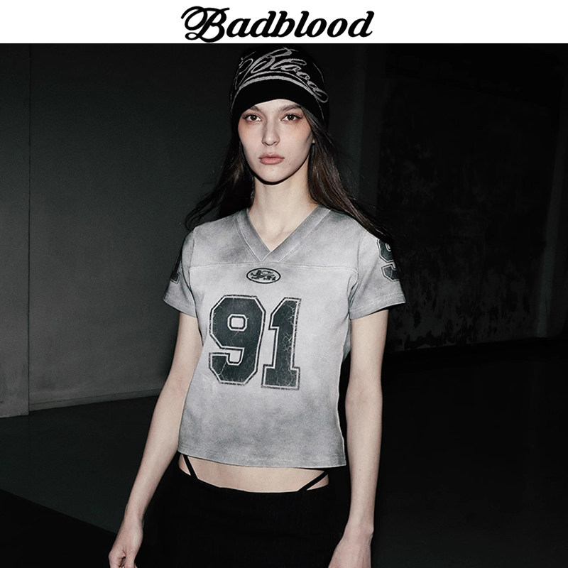 BADBLOOD Retro V-Neck Slim Short Sleeve Tee