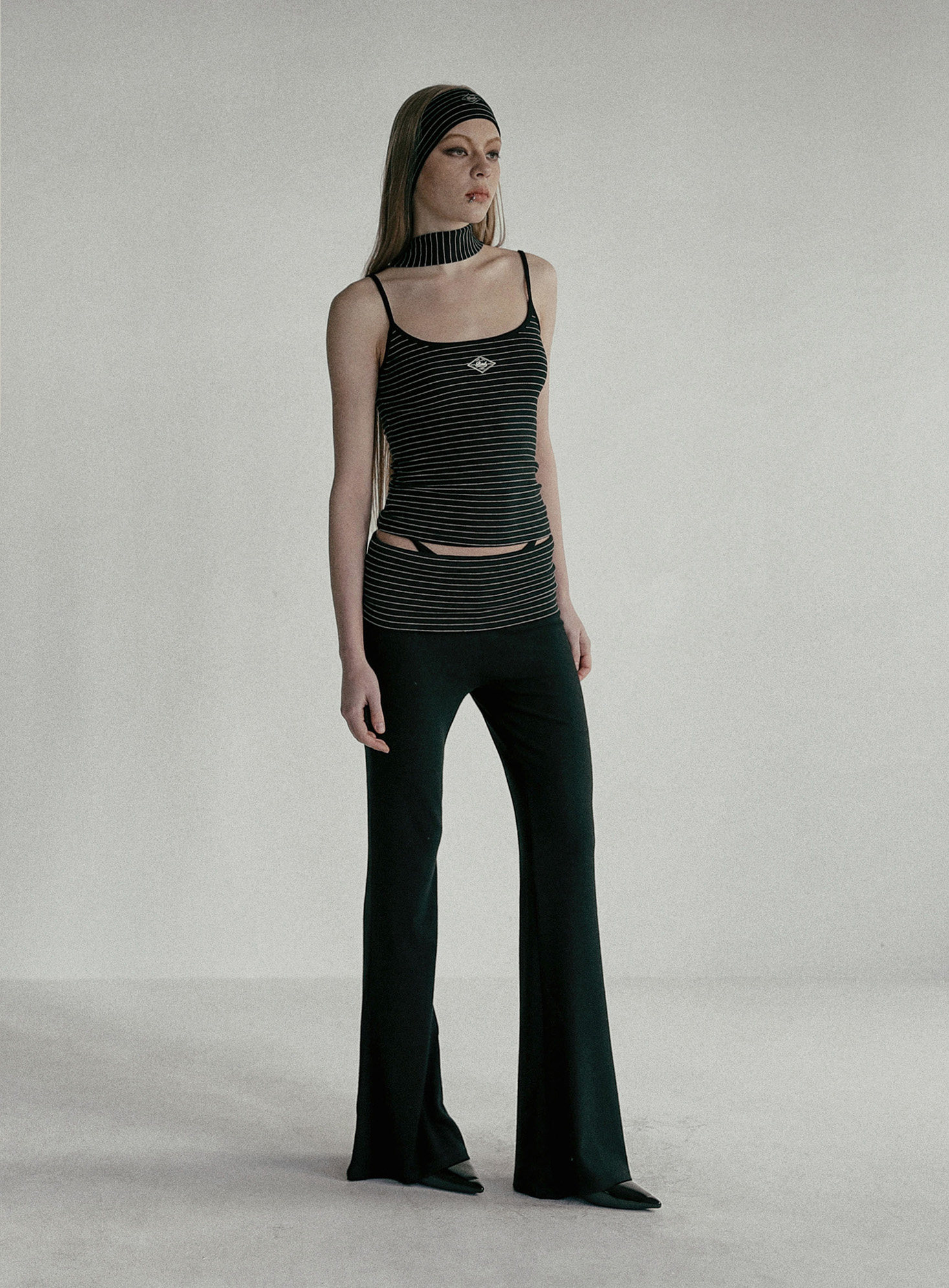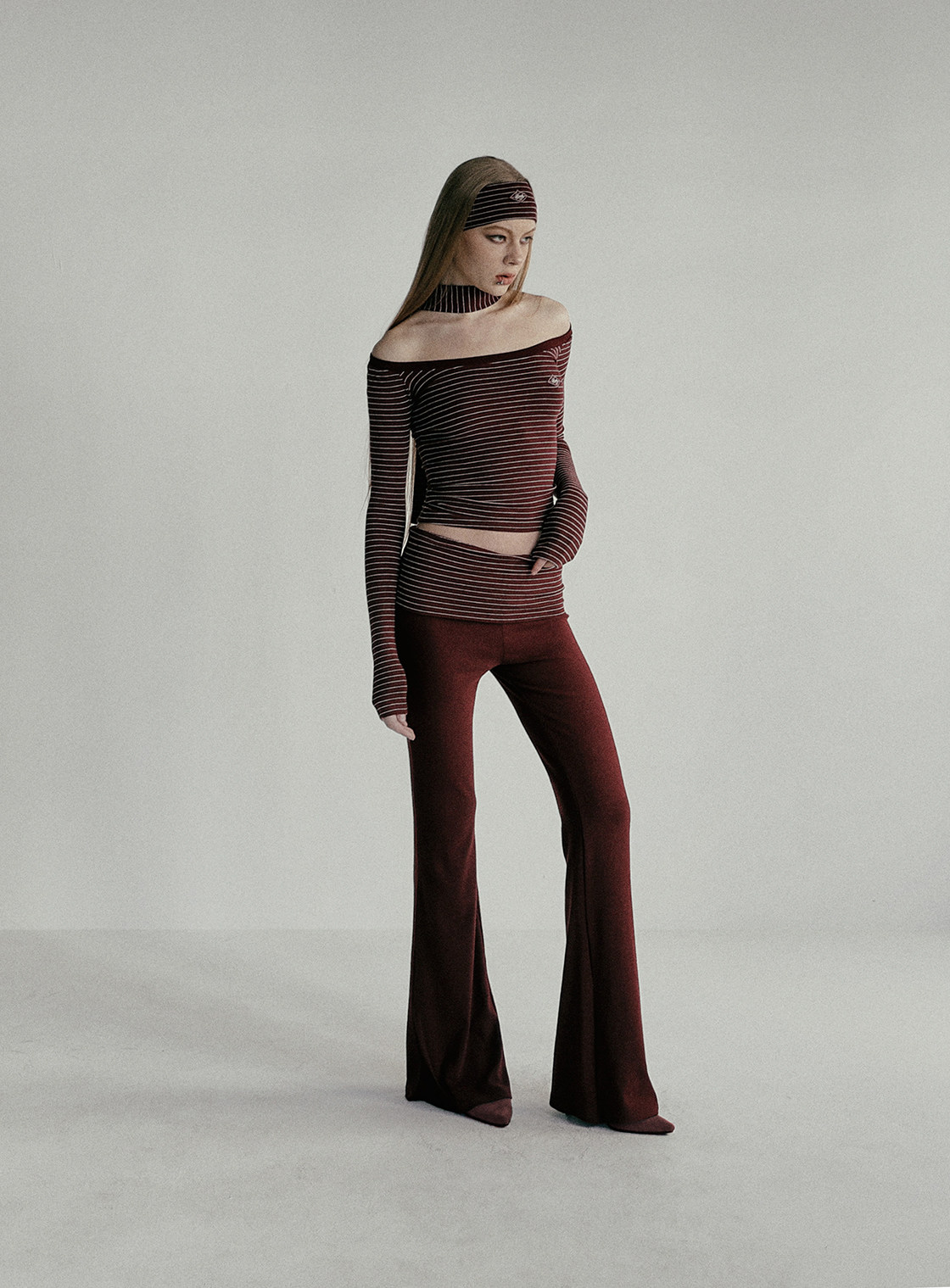 BADBLOOD High-Waist Boot-Cut Striped Pants