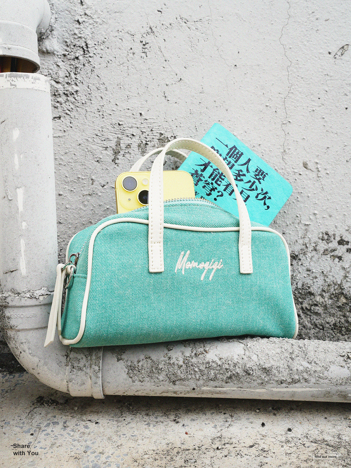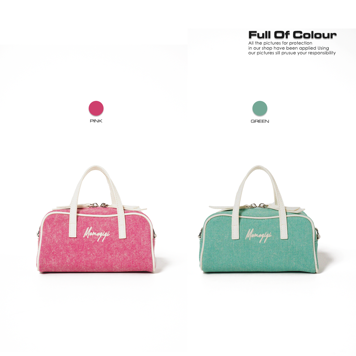 Momogigi is a summer getaway, retro washed denim mini shoulder messenger Boston bag