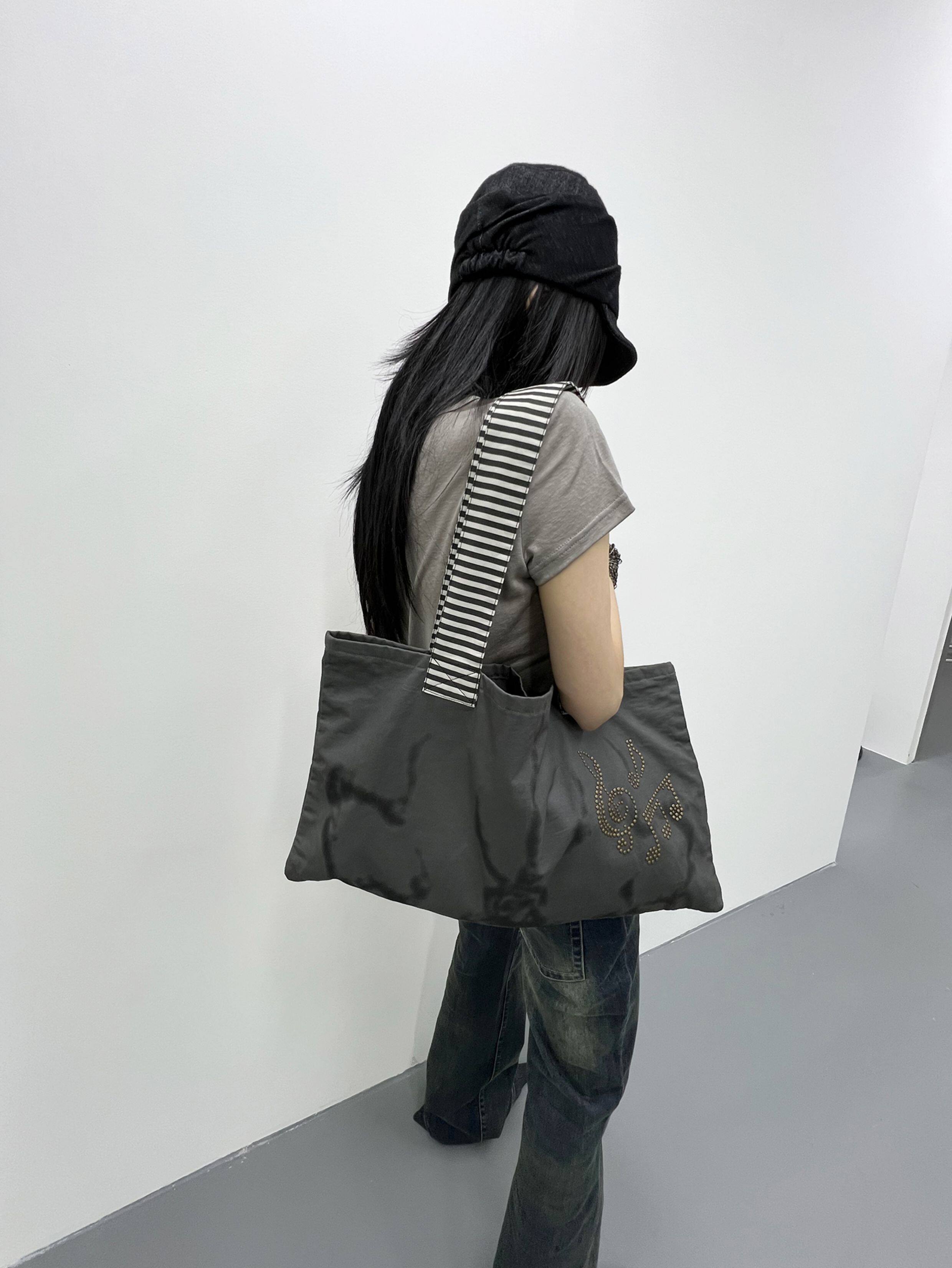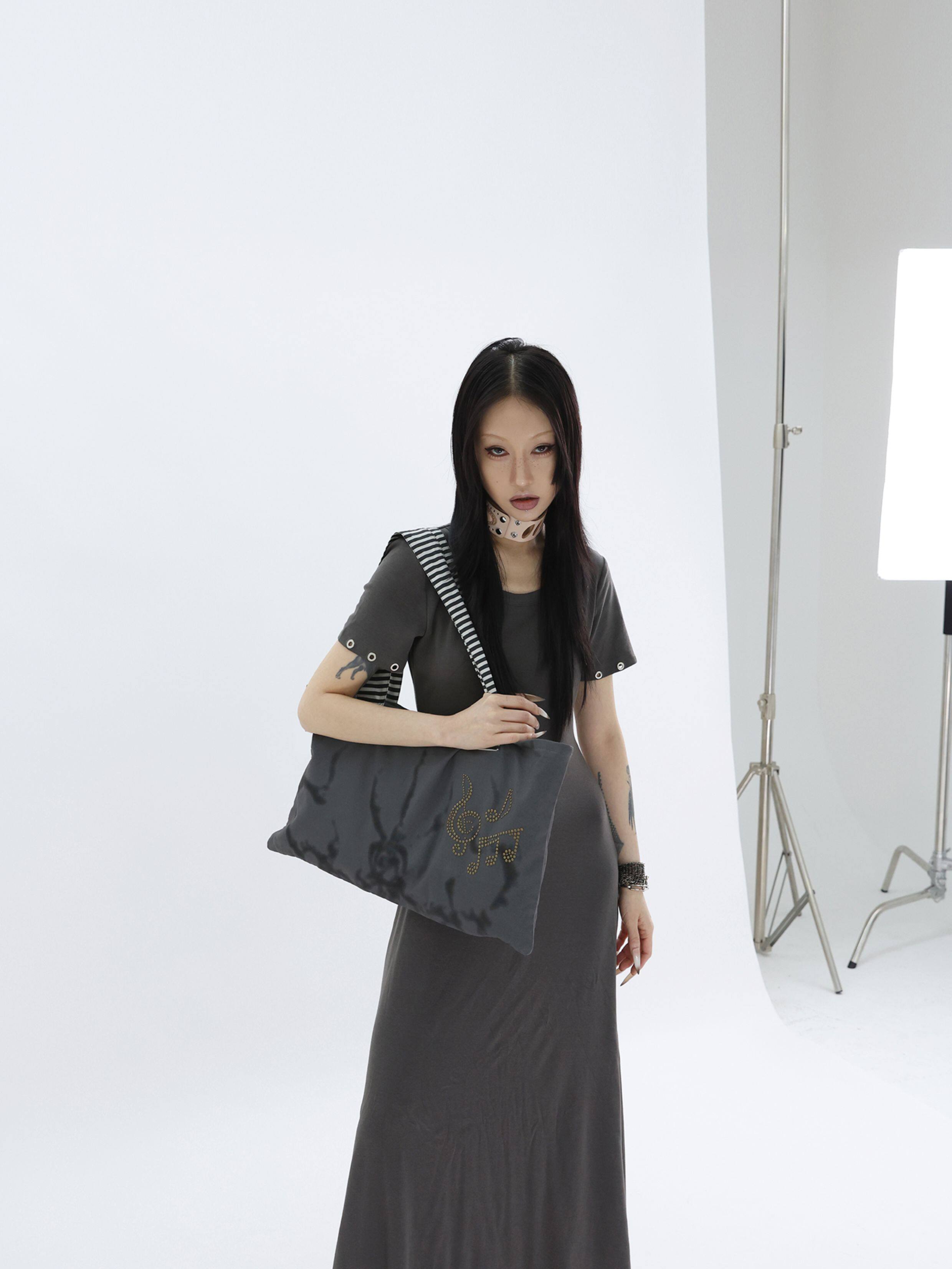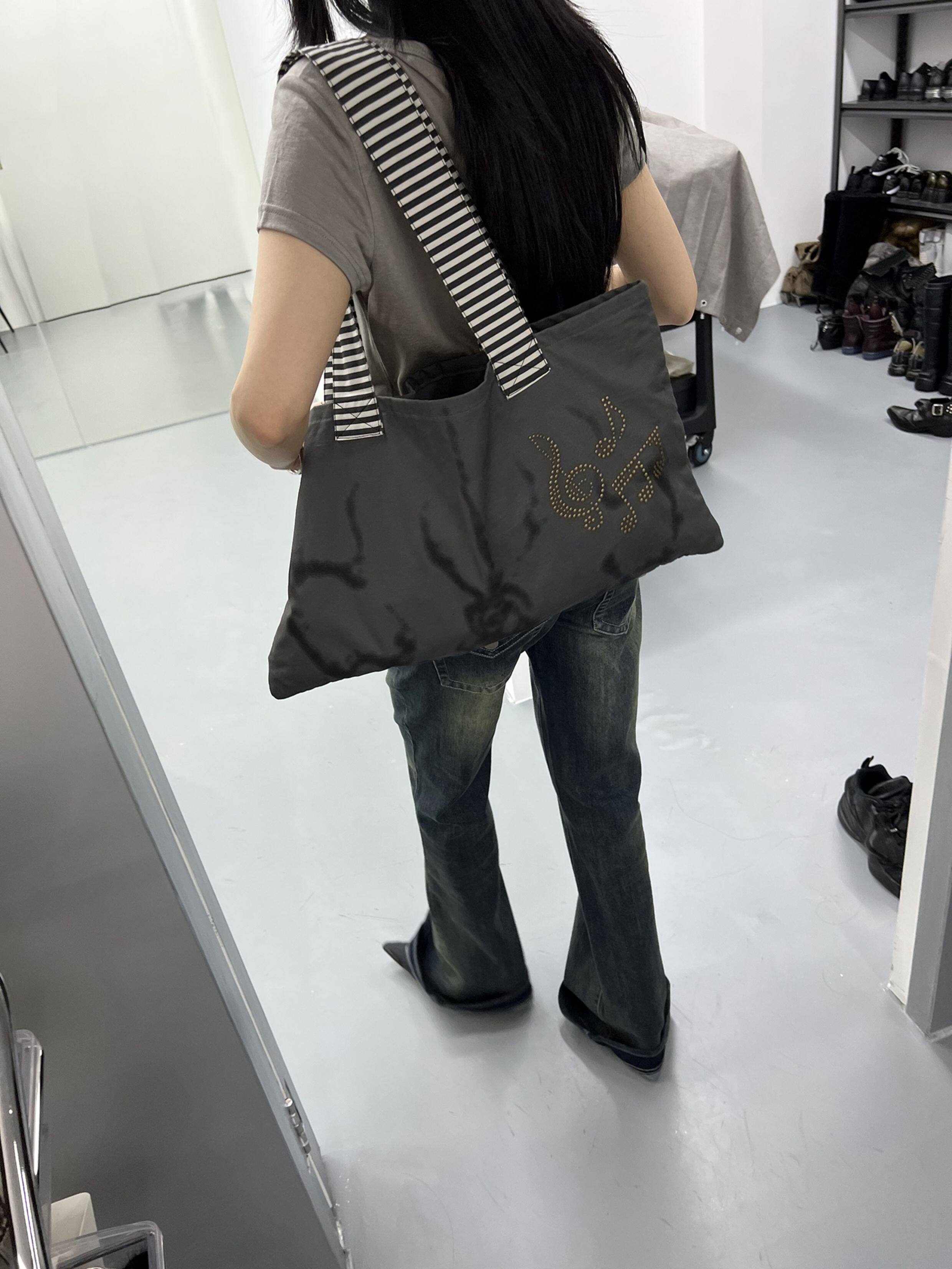 FUZZYKON Music Note Iron Nail Striped Shoulder Strap Shoulder Bag