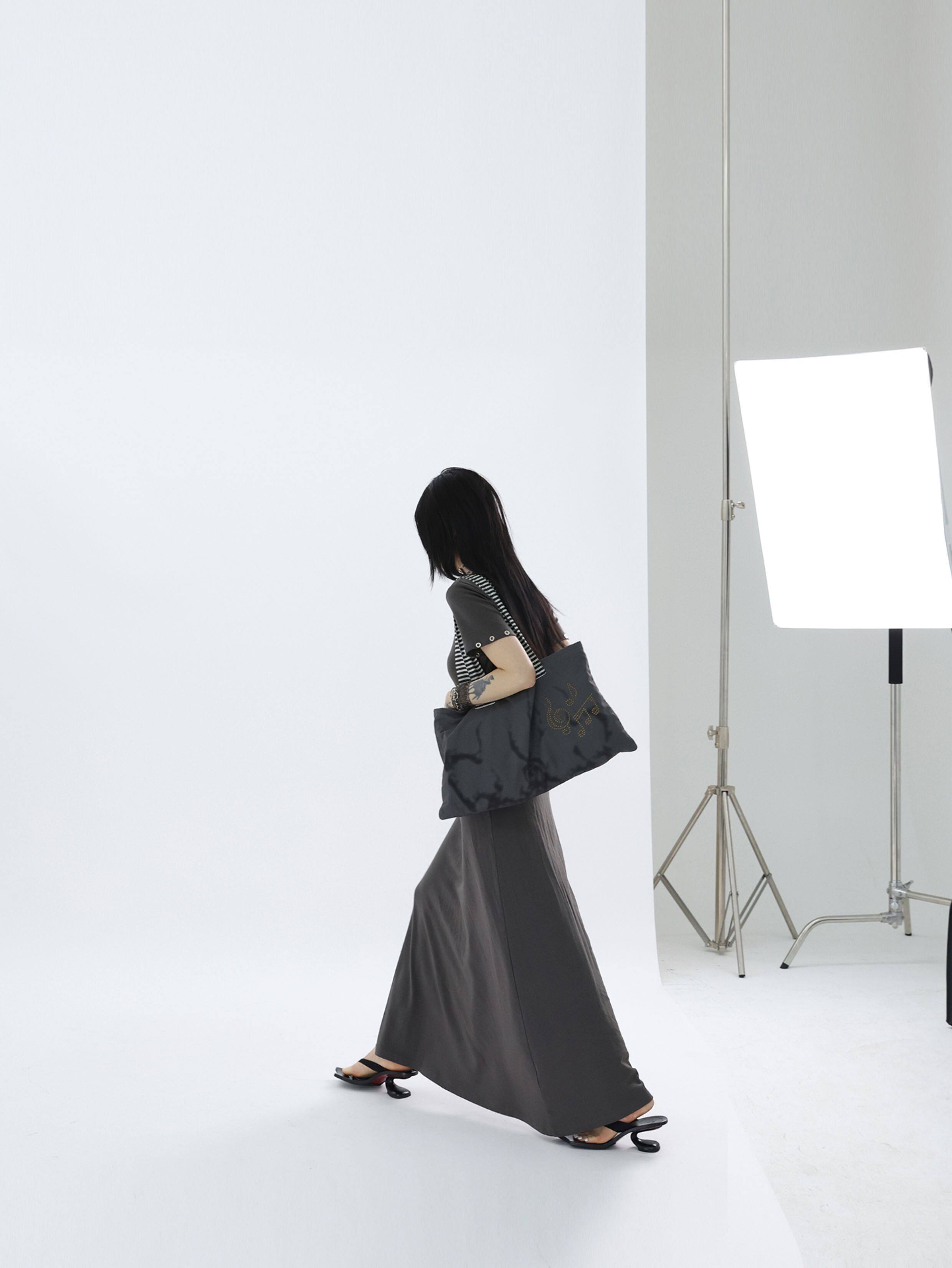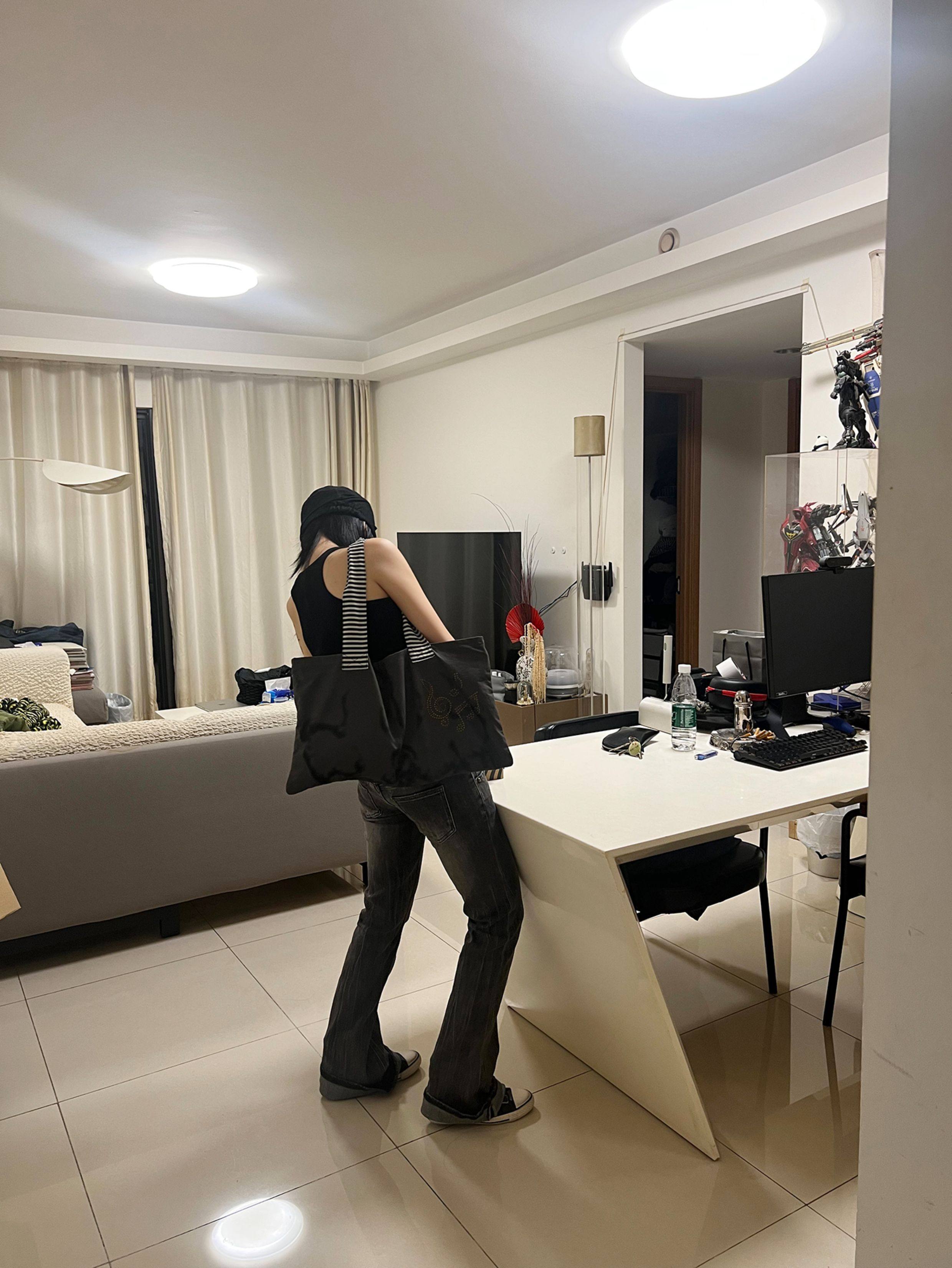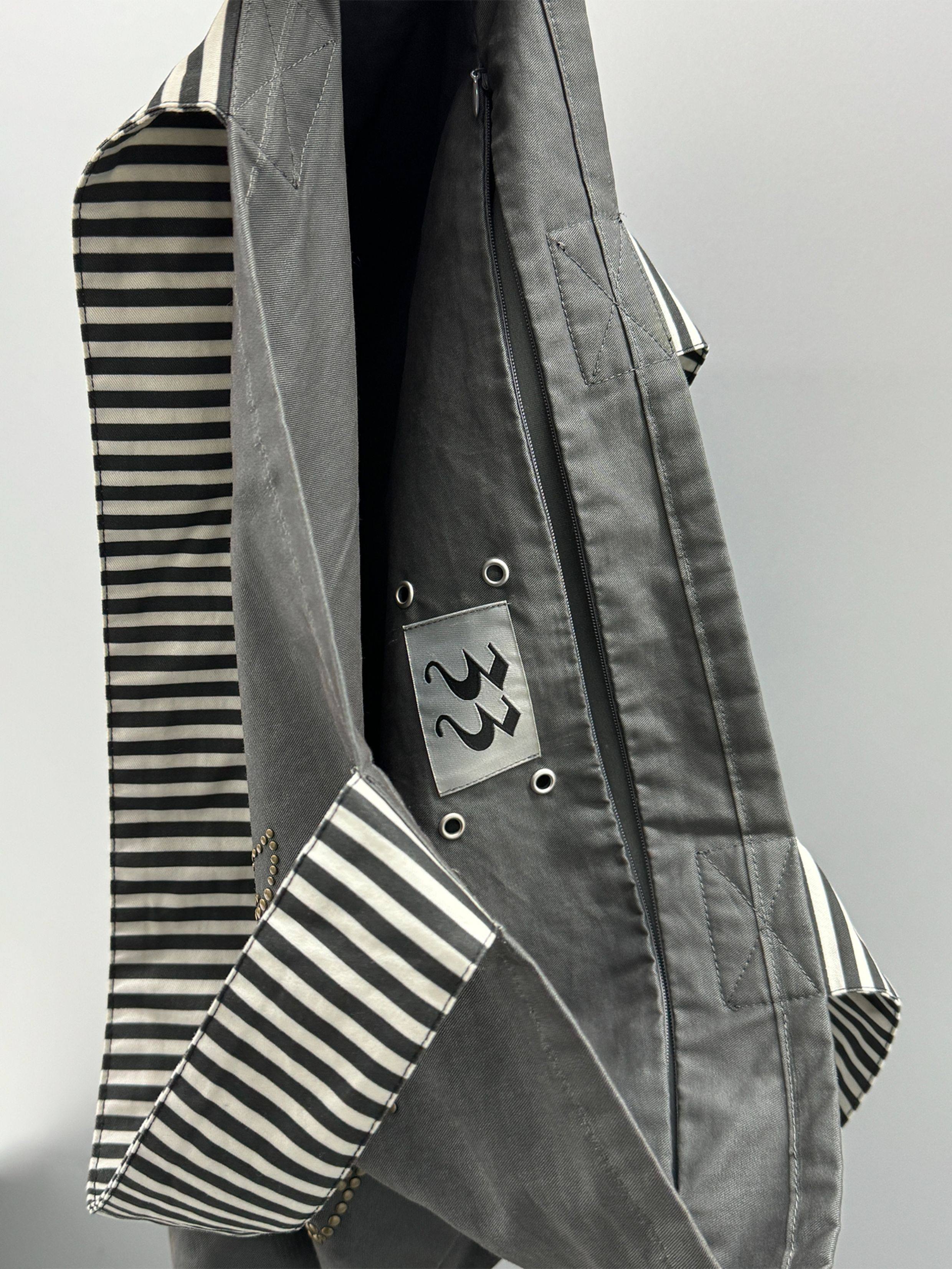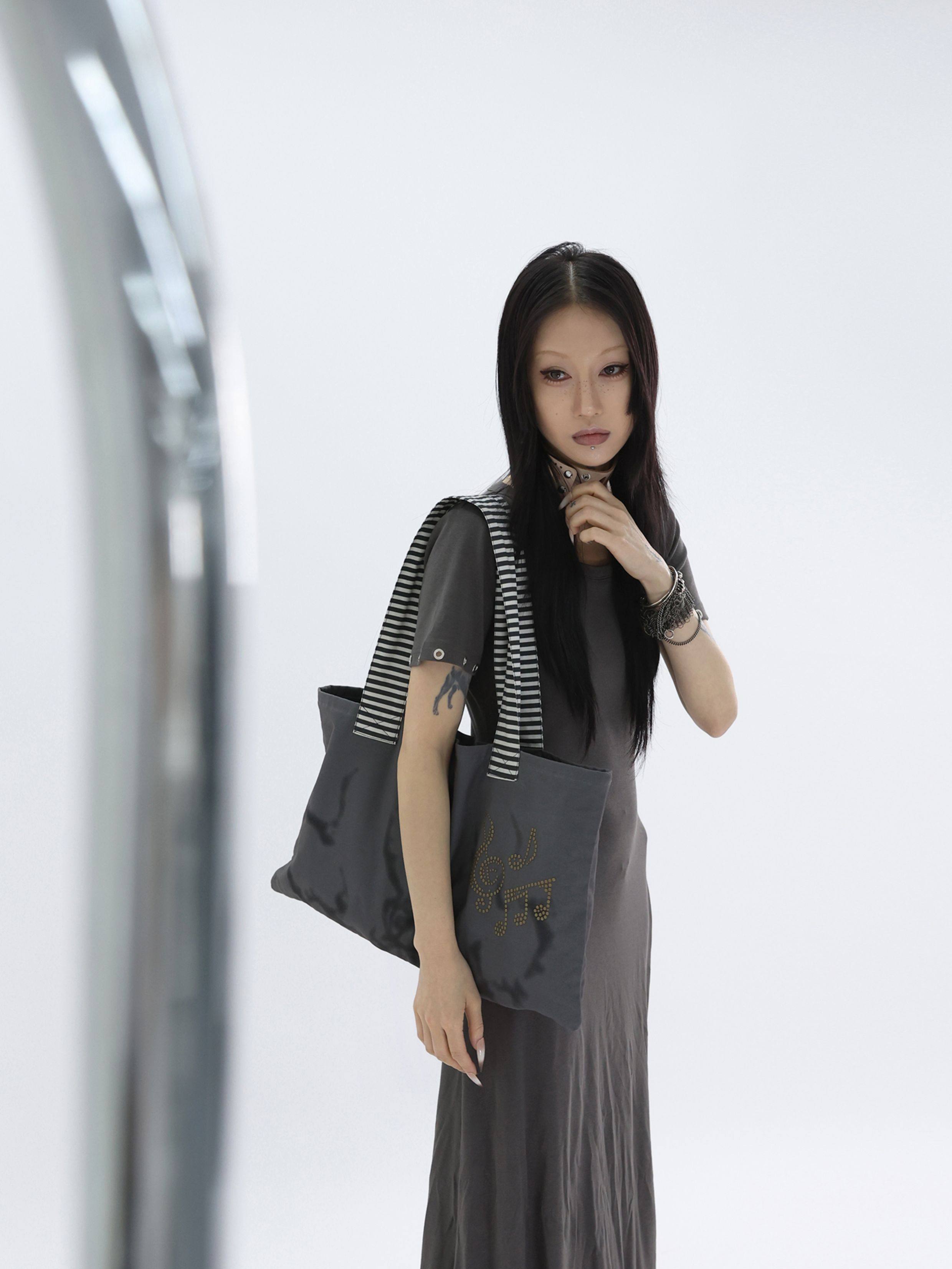 FUZZYKON Music Note Iron Nail Striped Shoulder Strap Shoulder Bag