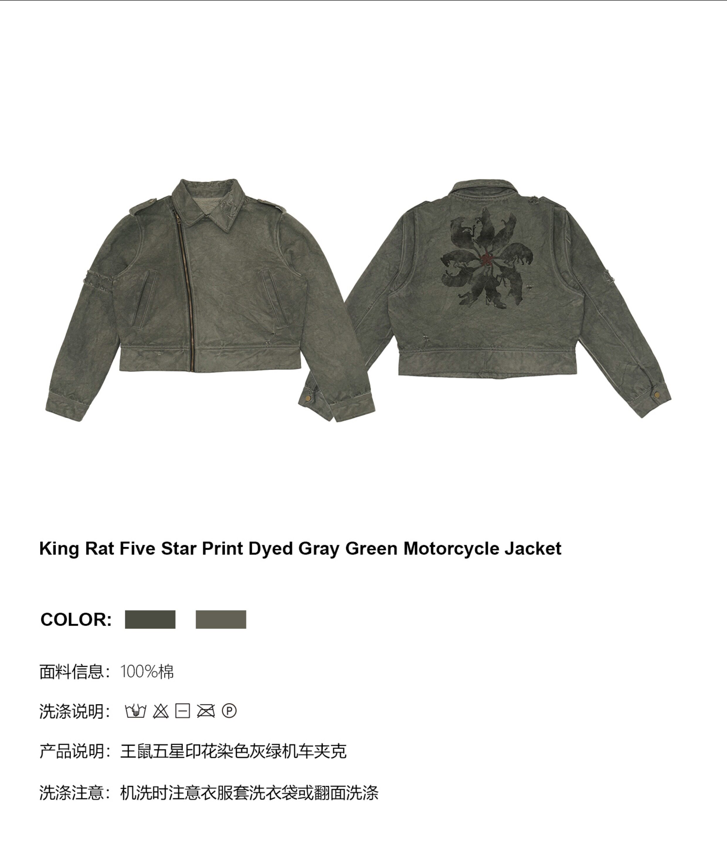noEmosen Tie Gray Green Dyed Motorcycle Collar Jacket