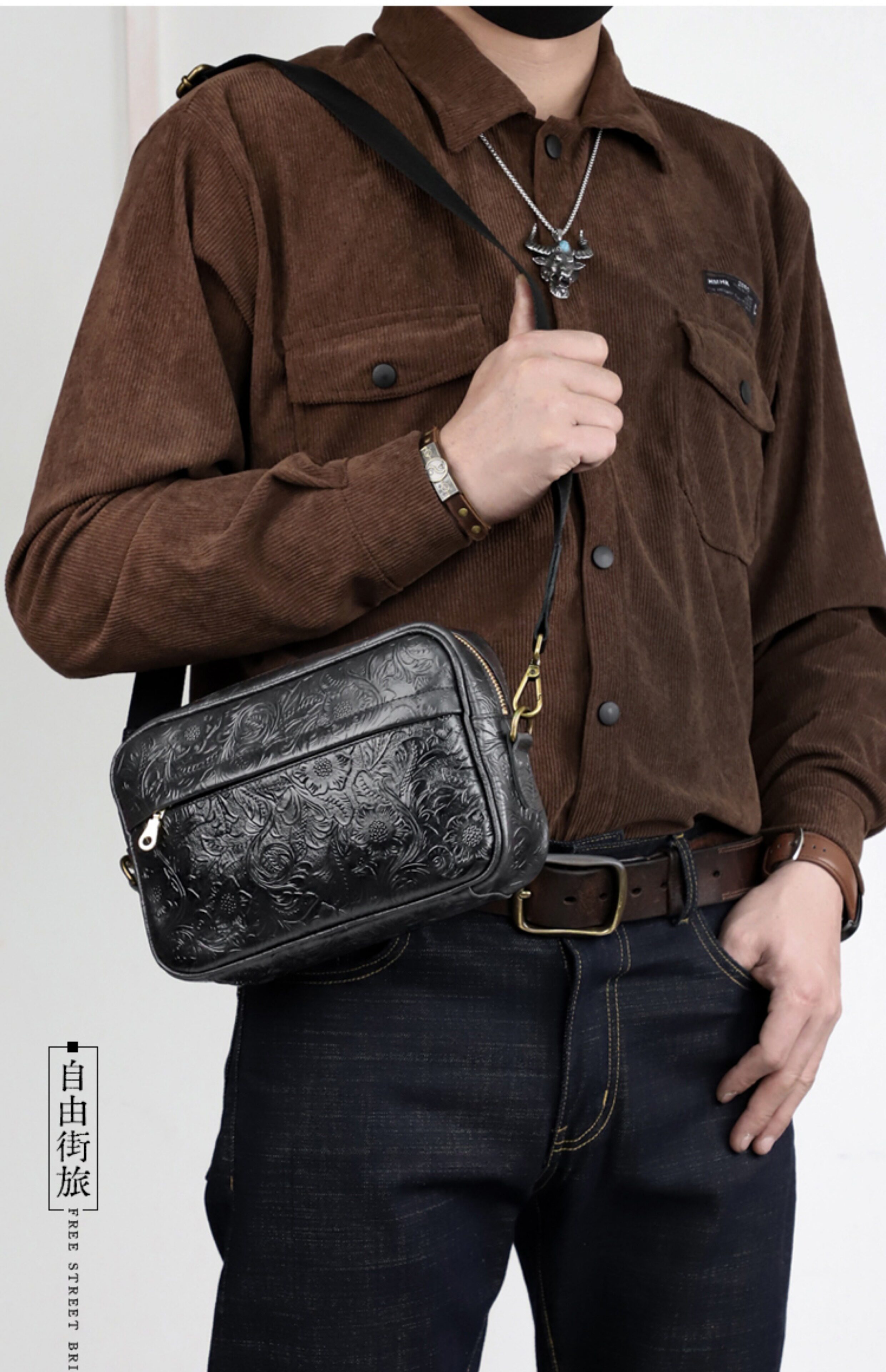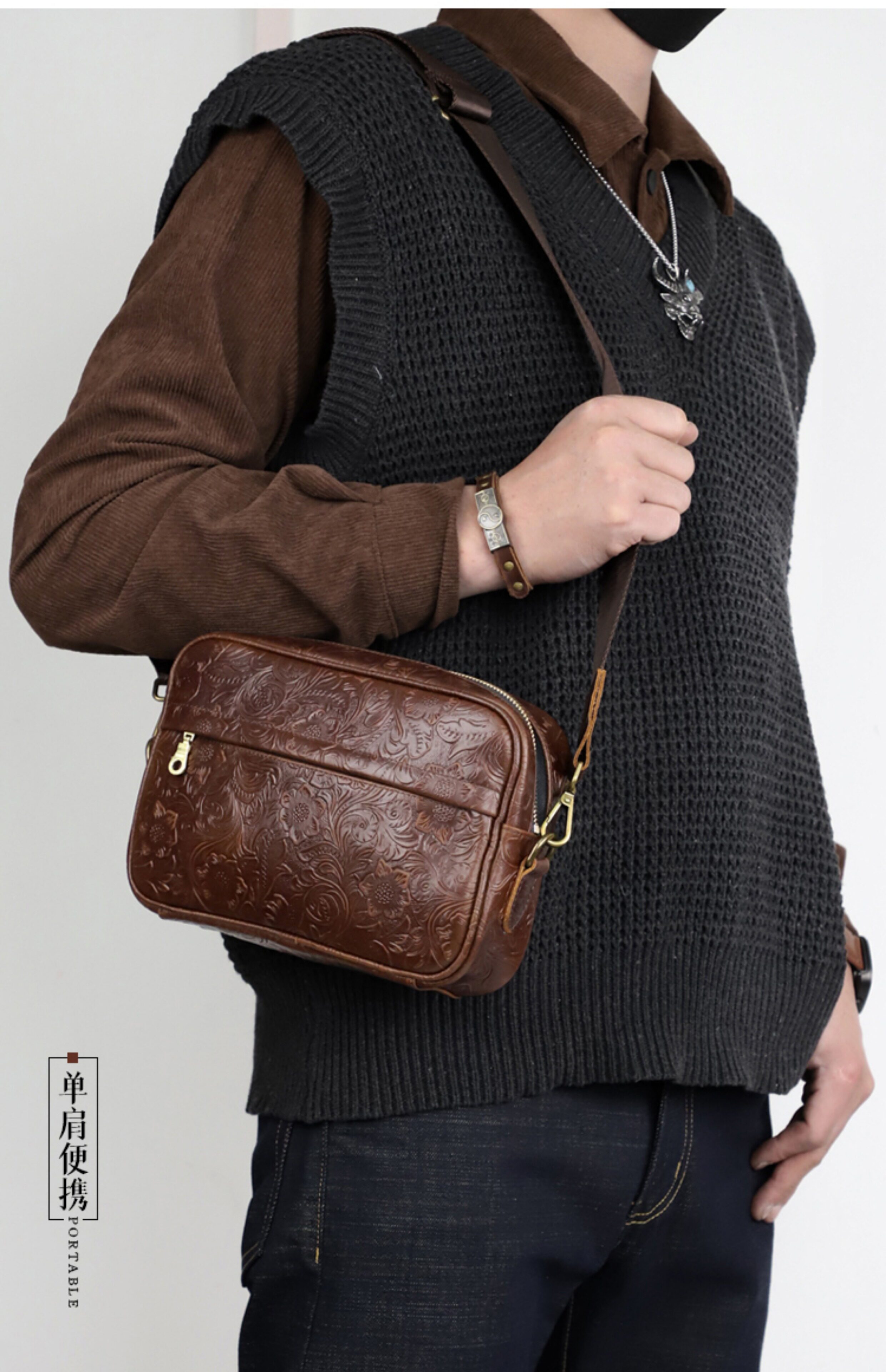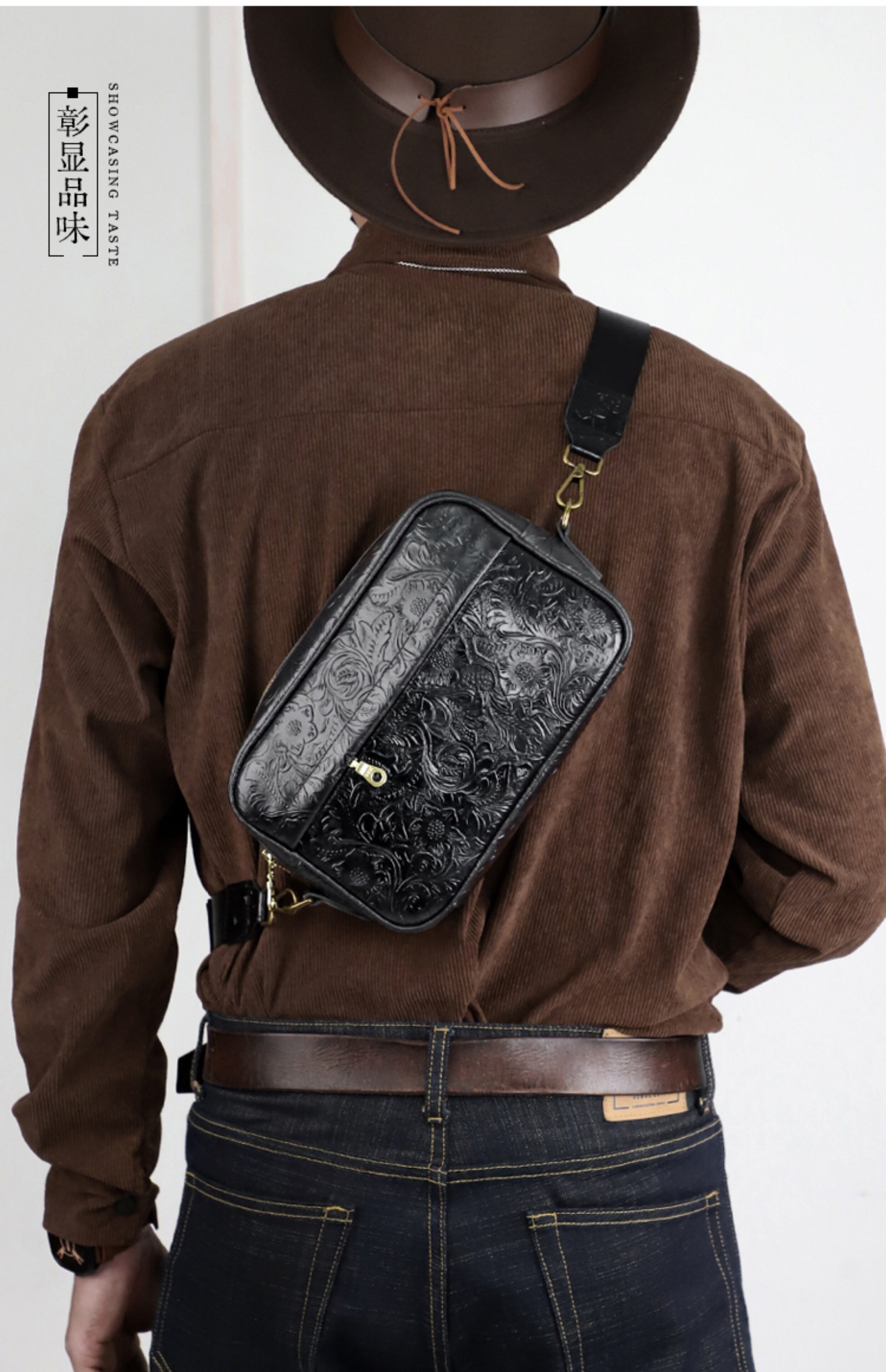 Fanguo Designer Leather Shoulder Messenger Bag