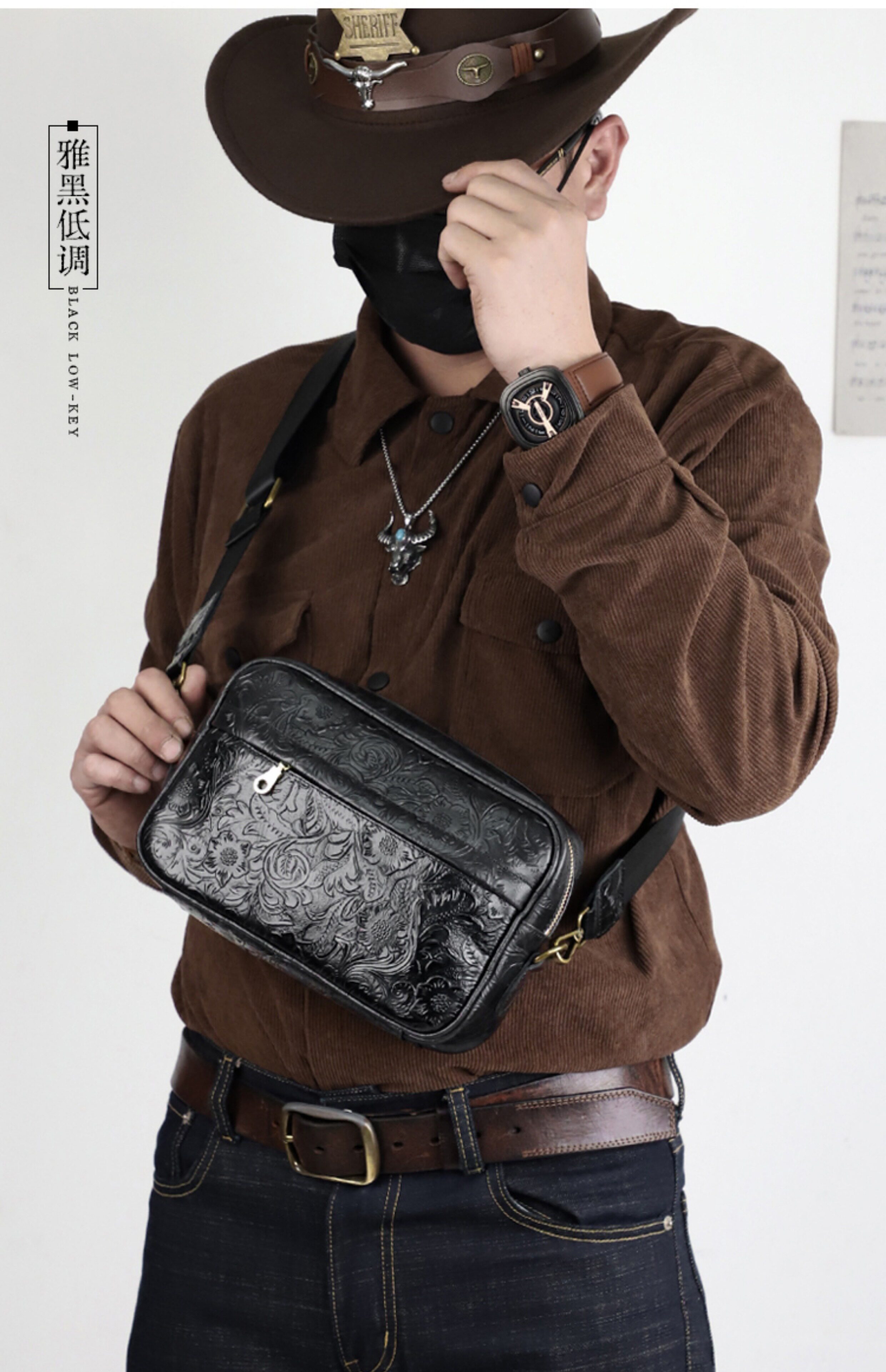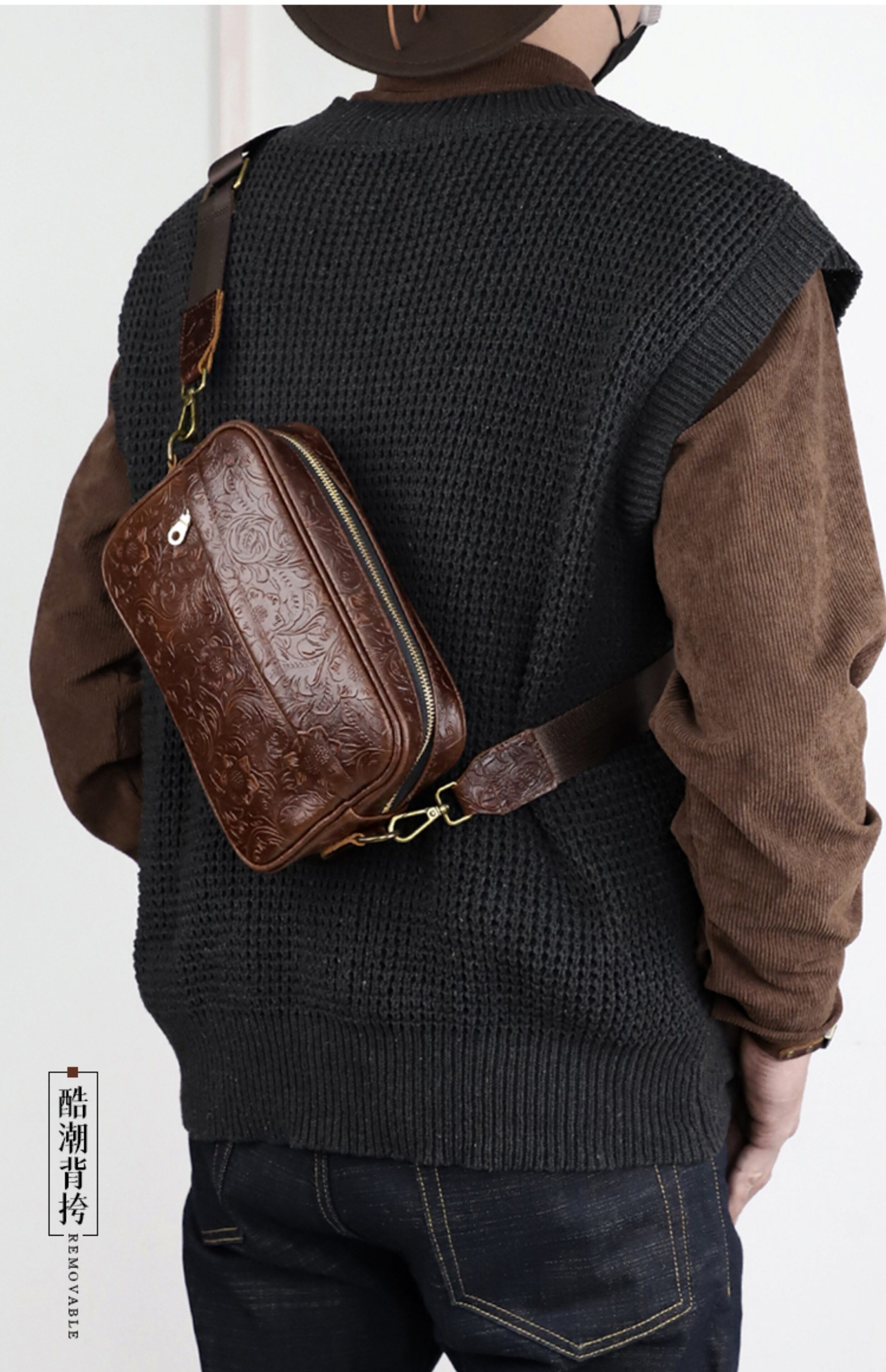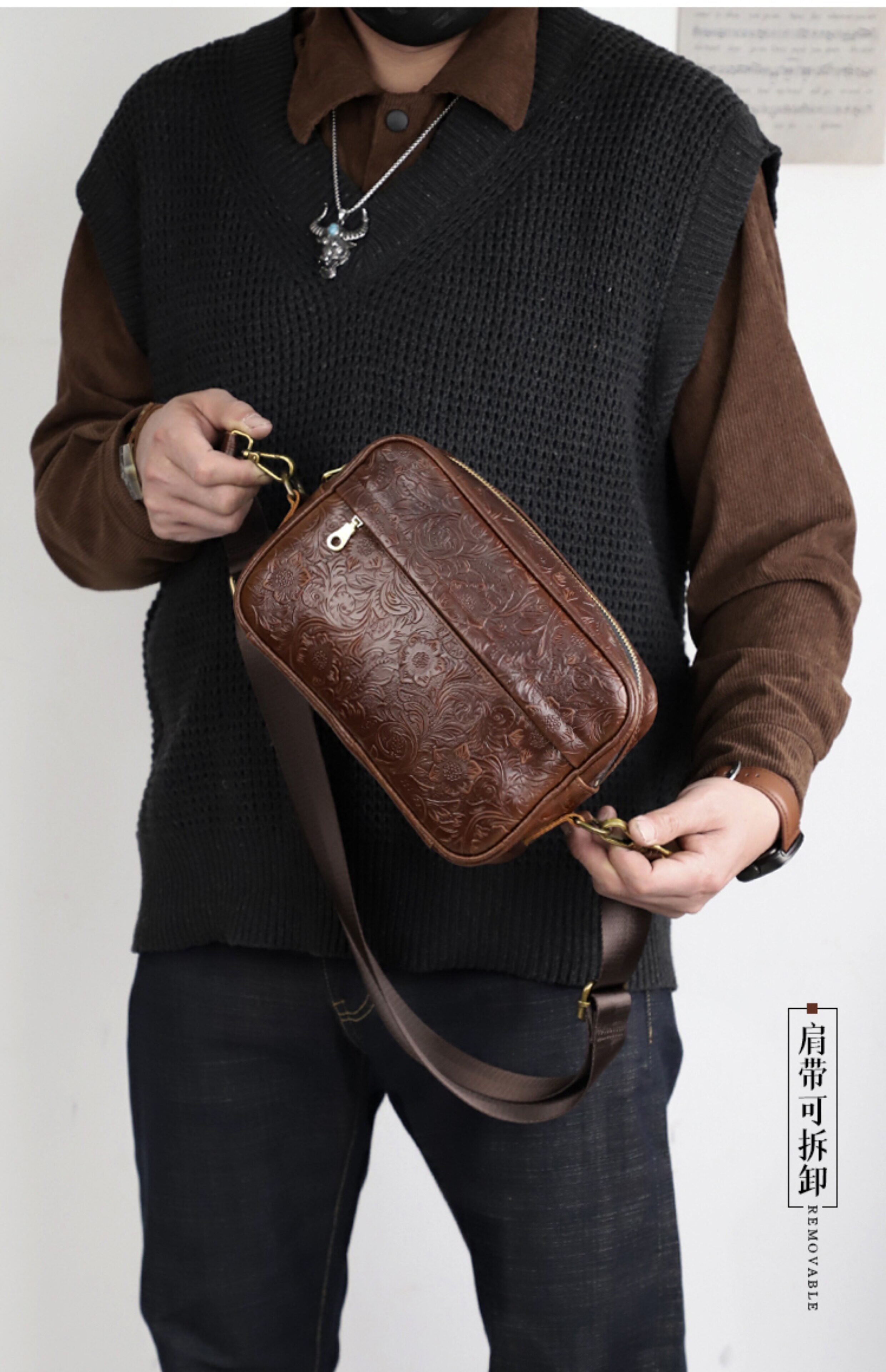Fanguo Designer Leather Shoulder Messenger Bag
