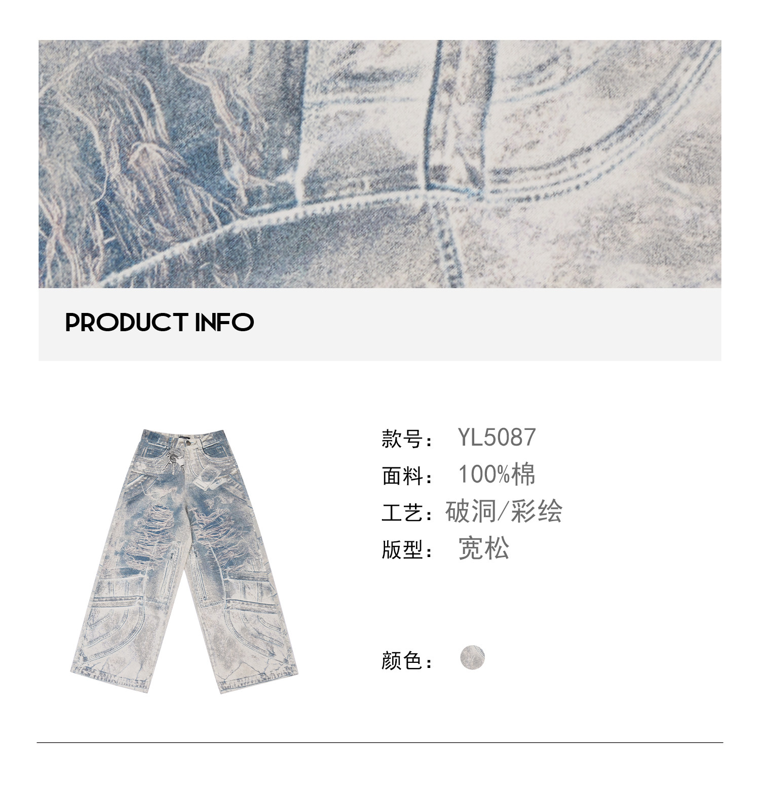 PEOPLESTYLE 3D Printed Jeans Keychain Baggy Wide Leg Pants