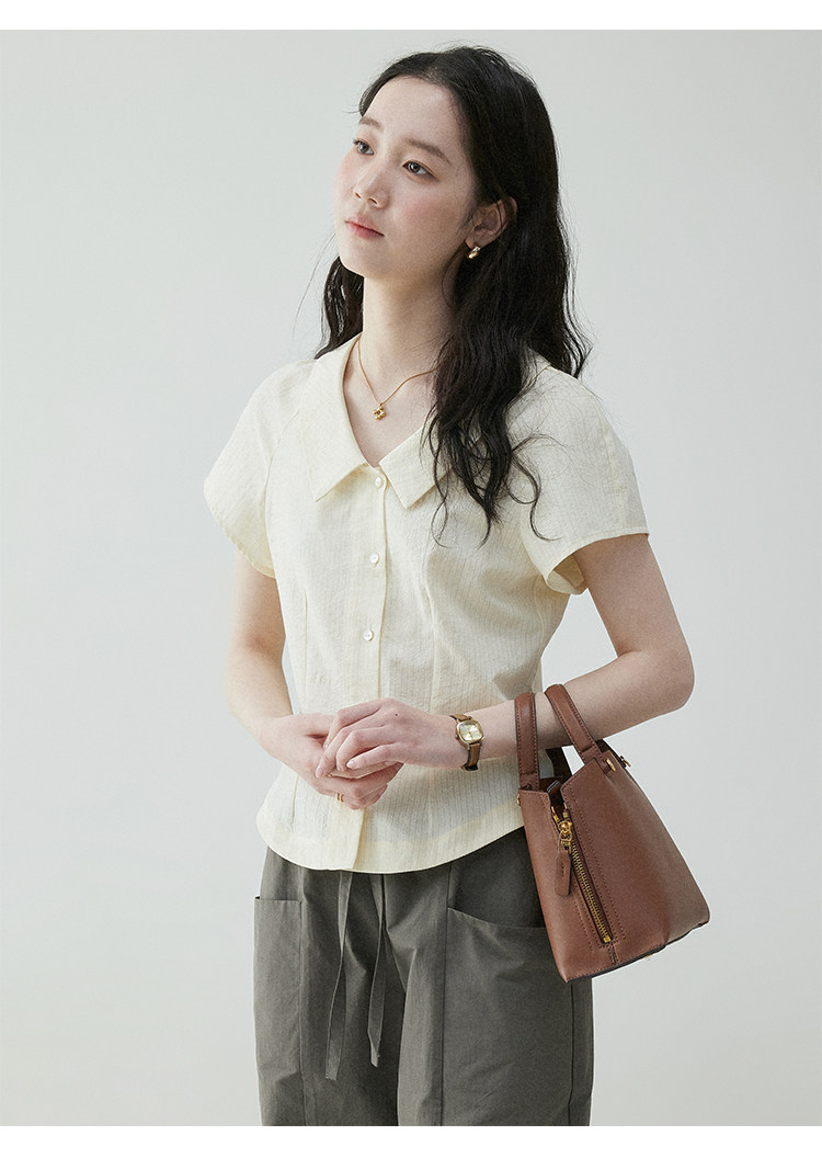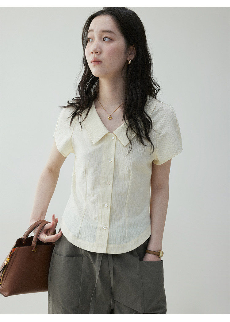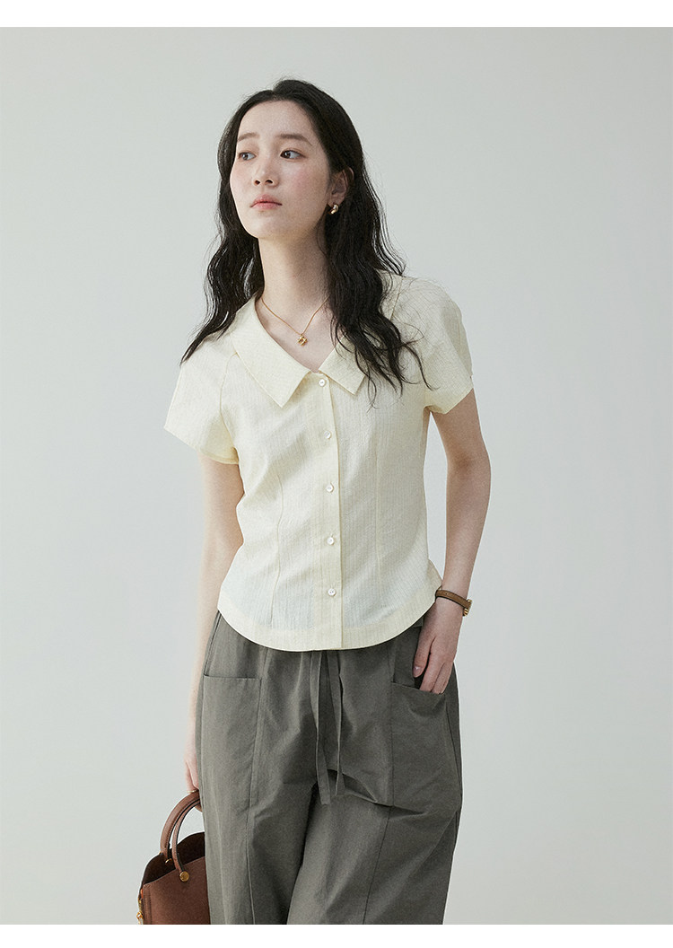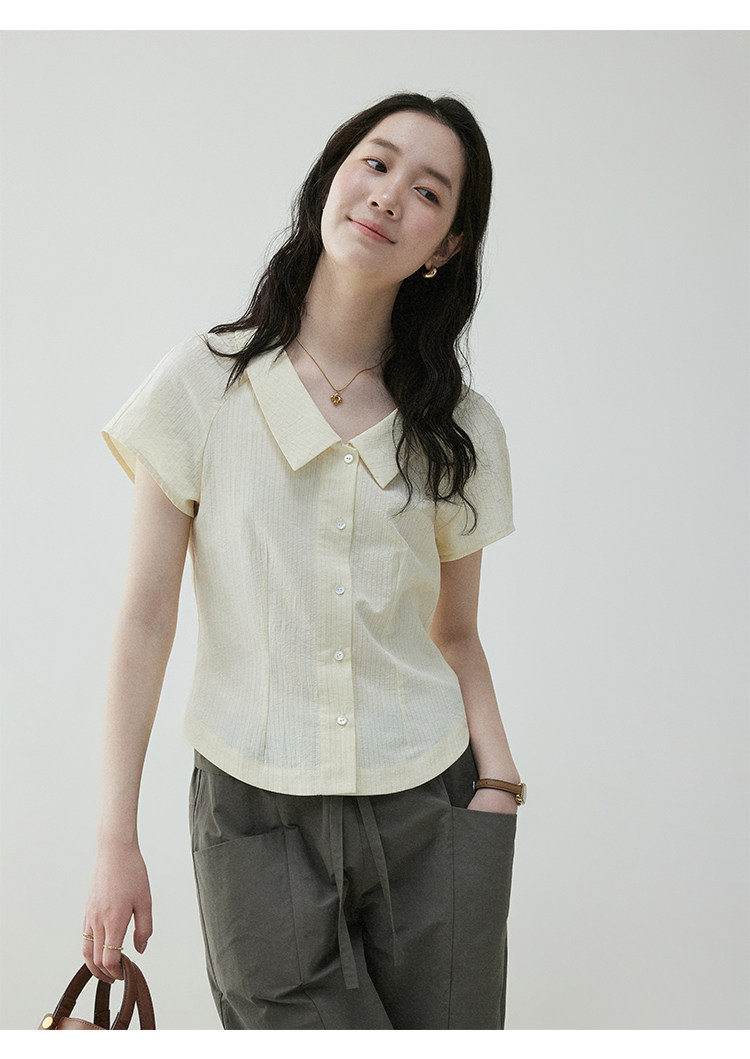 VOOE Lapel Slim Commuter Short-sleeved Shirt