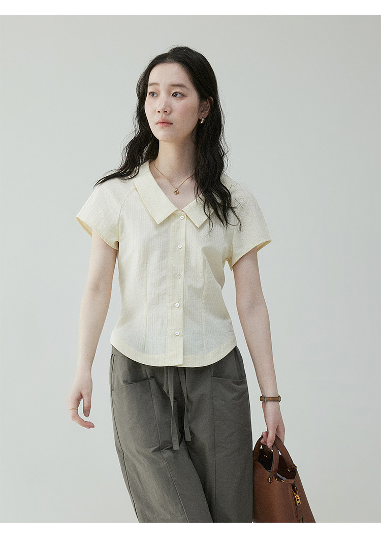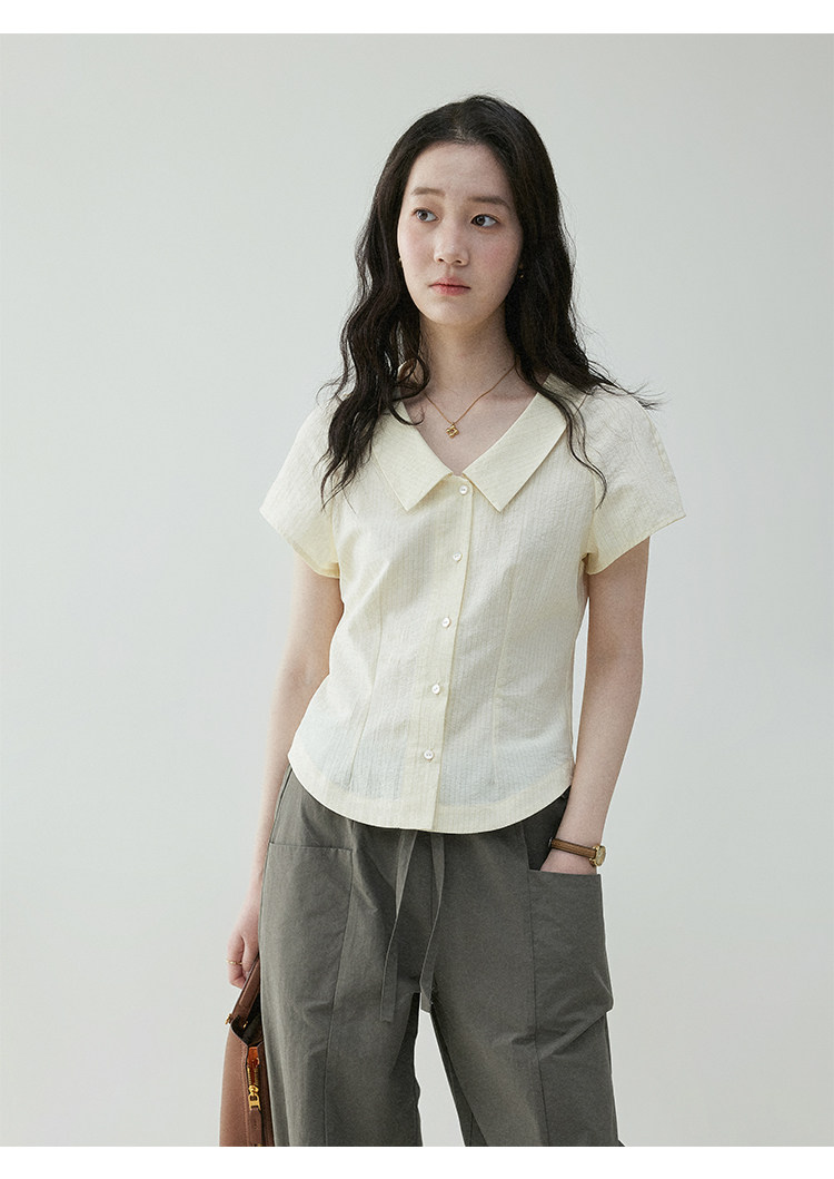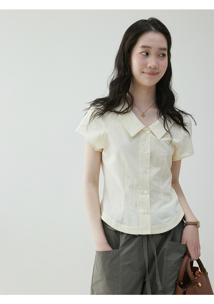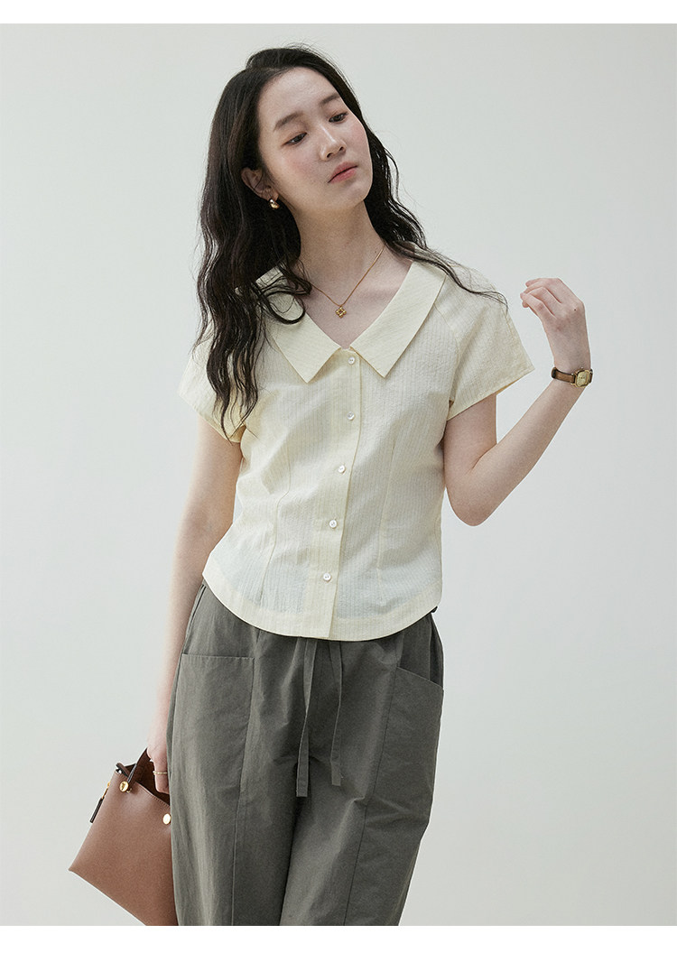 VOOE Lapel Slim Commuter Short-sleeved Shirt