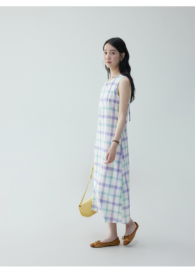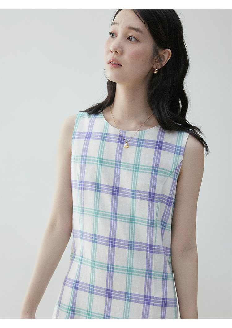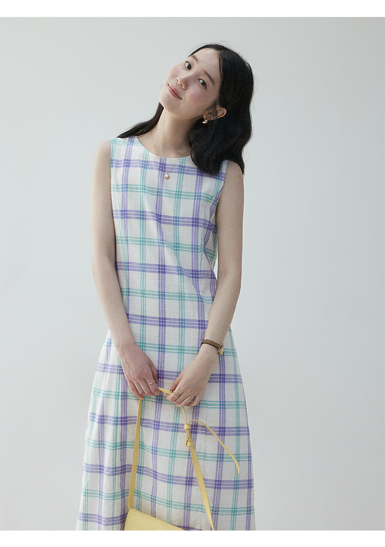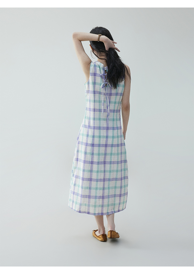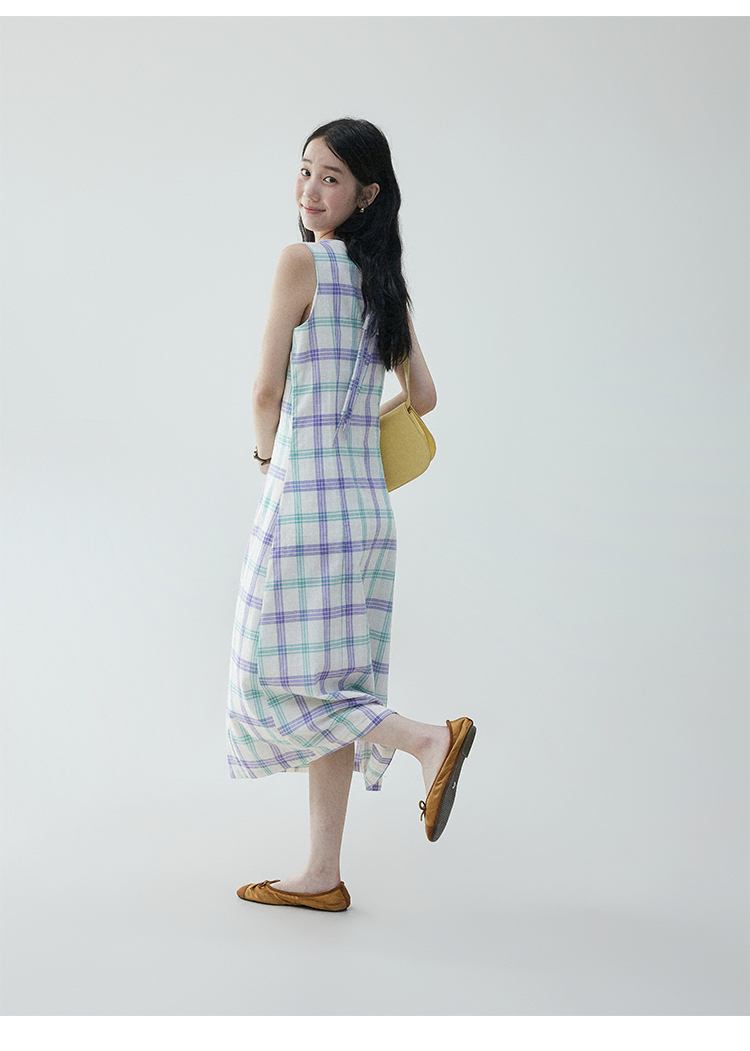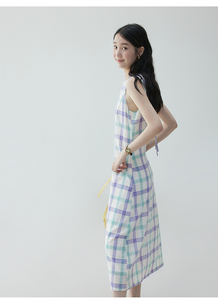 VOOE Niche Sleeveless Plaid Strap-on Dress