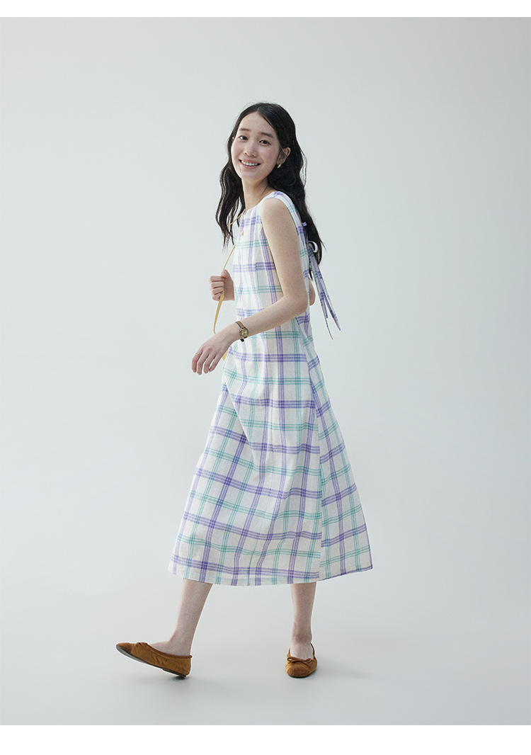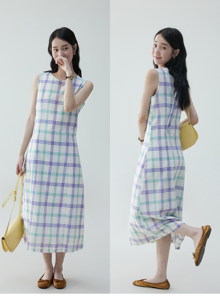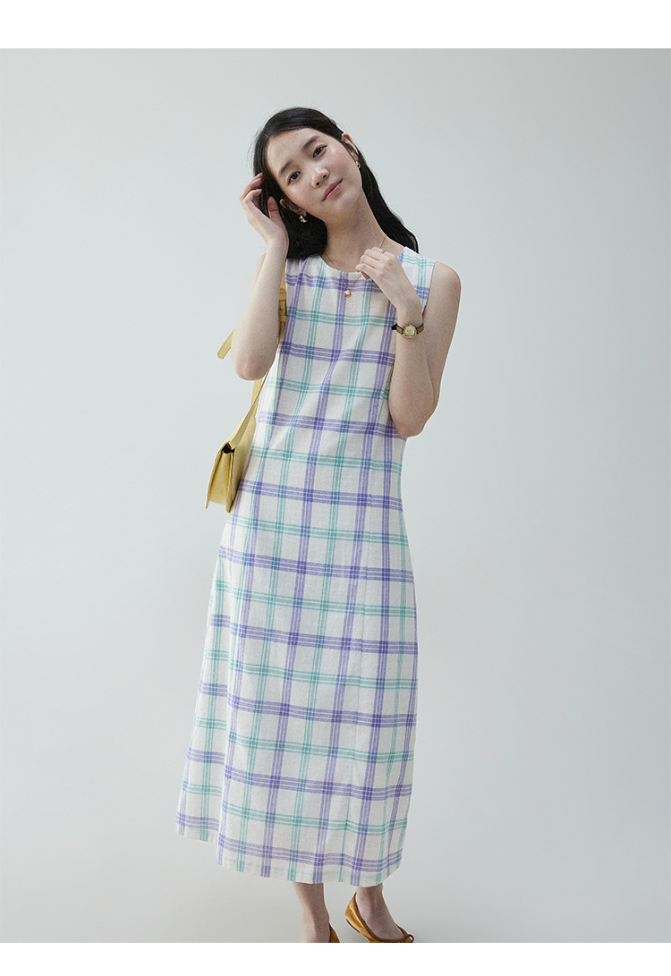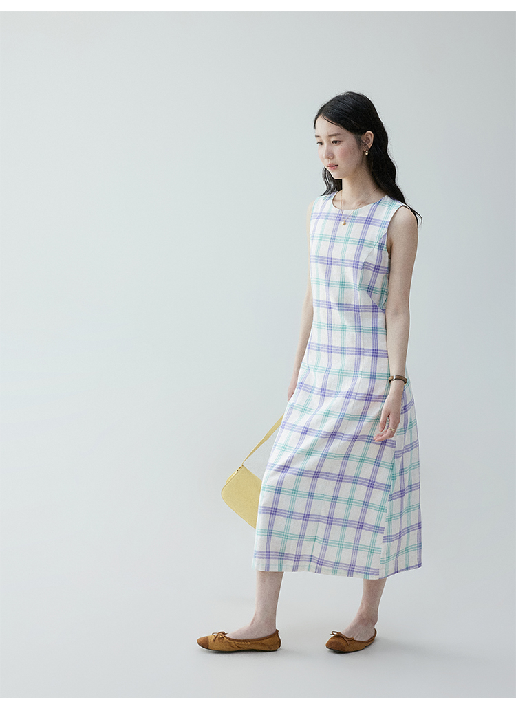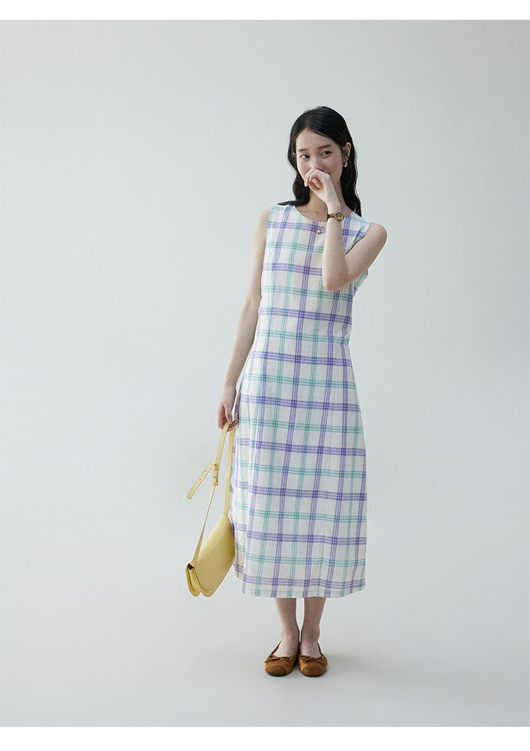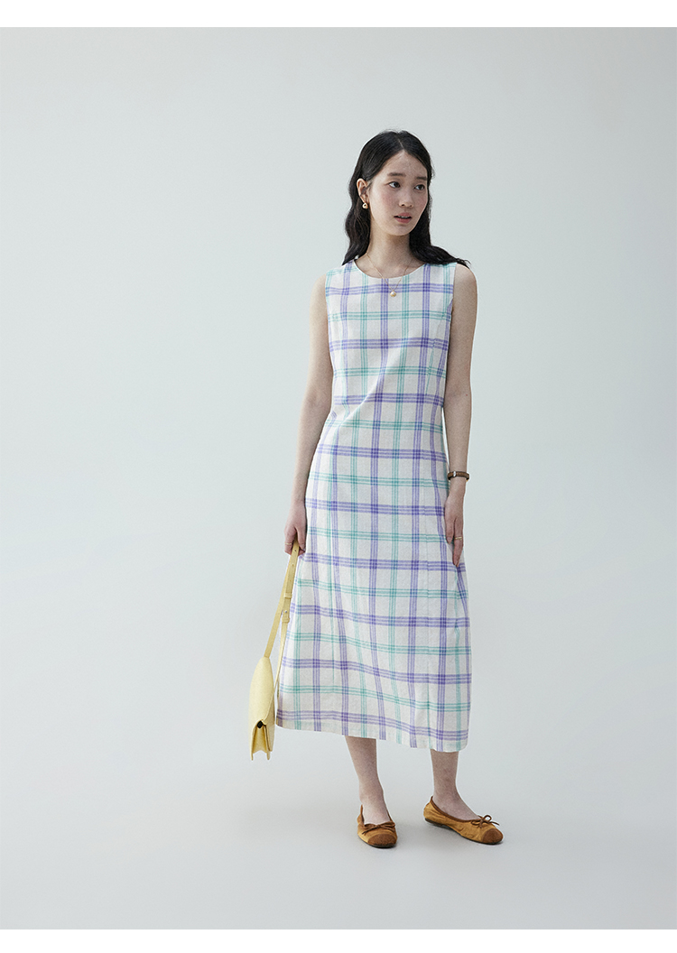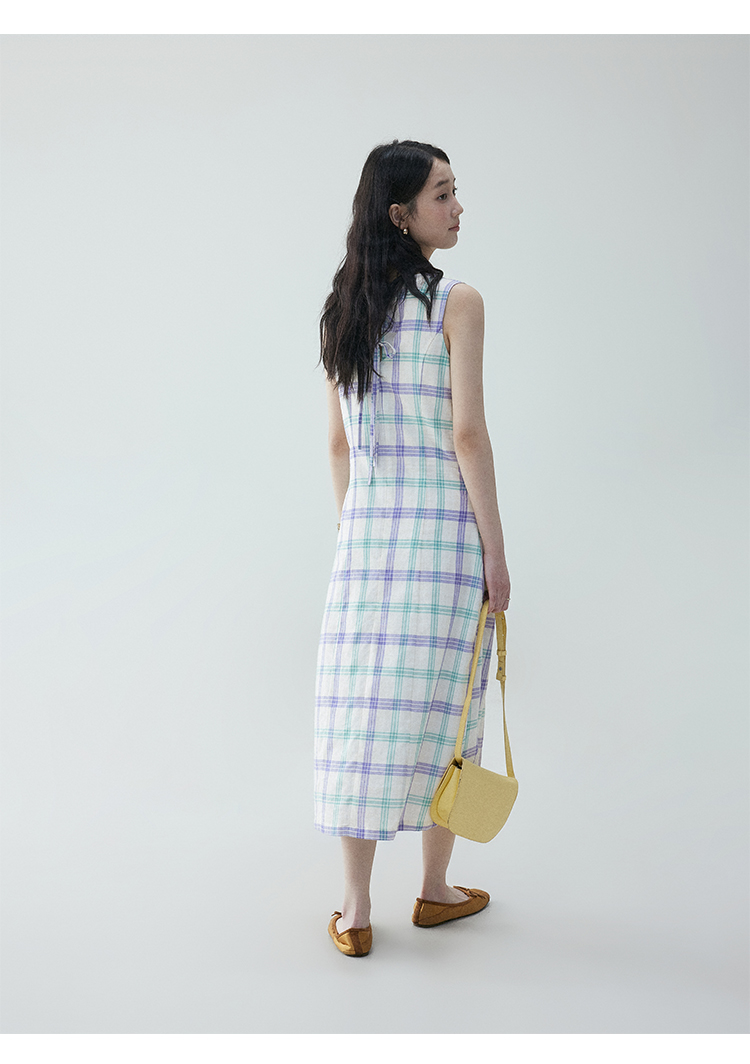 VOOE Niche Sleeveless Plaid Strap-on Dress