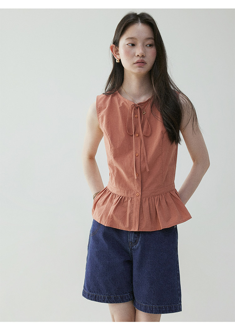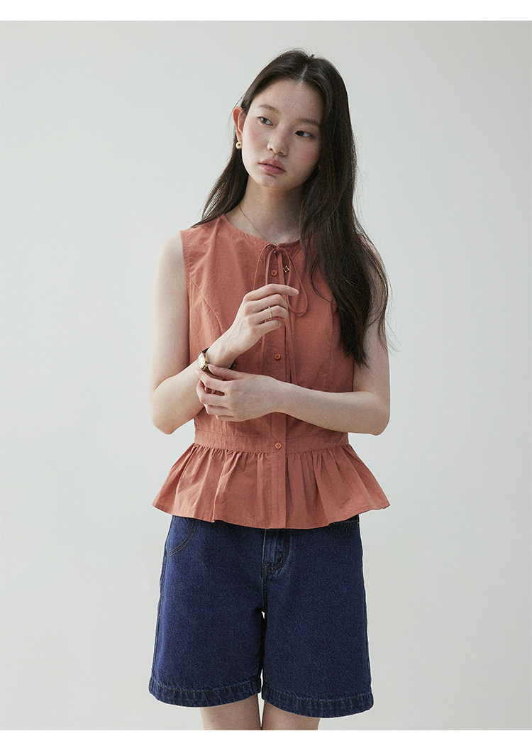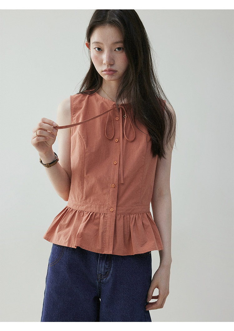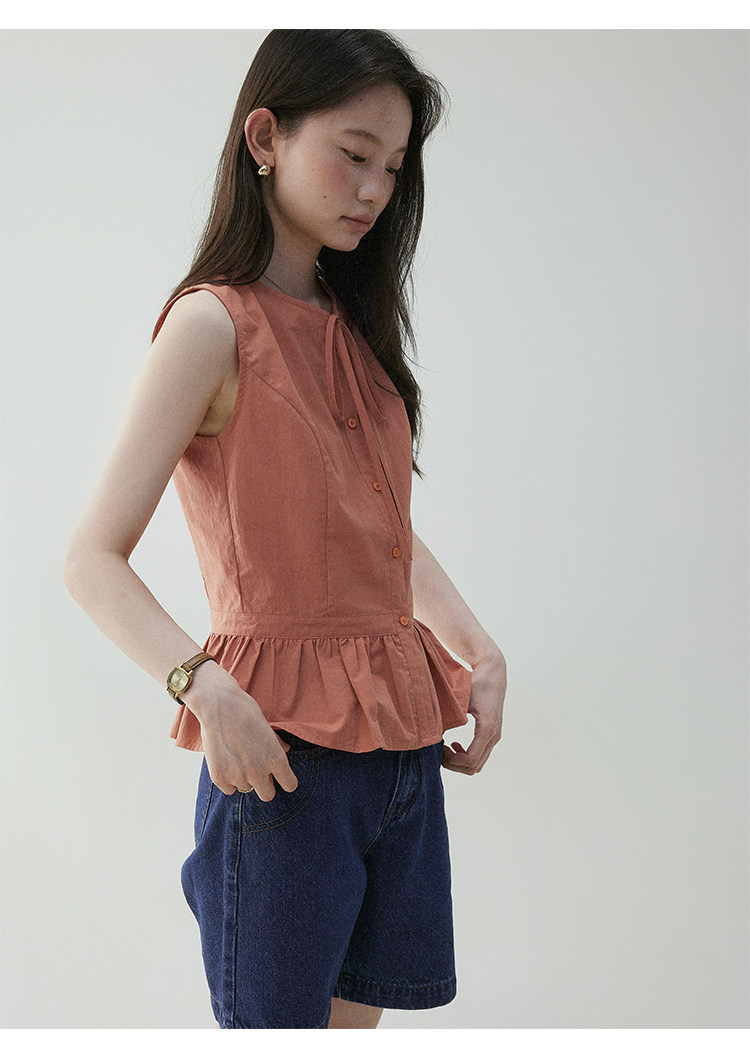 VOOE Strap-on Pleated Sleeveless Doll Shirt