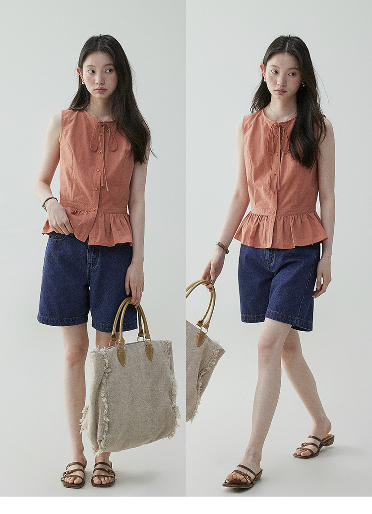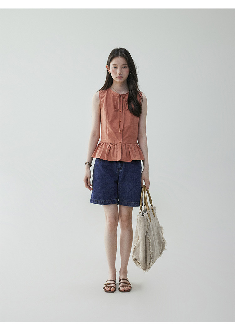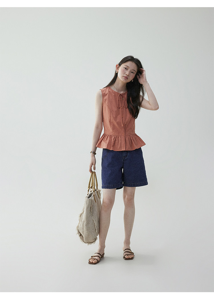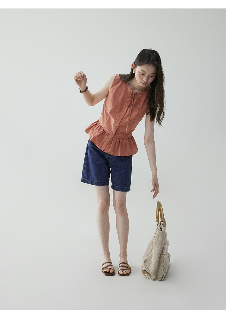 VOOE Strap-on Pleated Sleeveless Doll Shirt