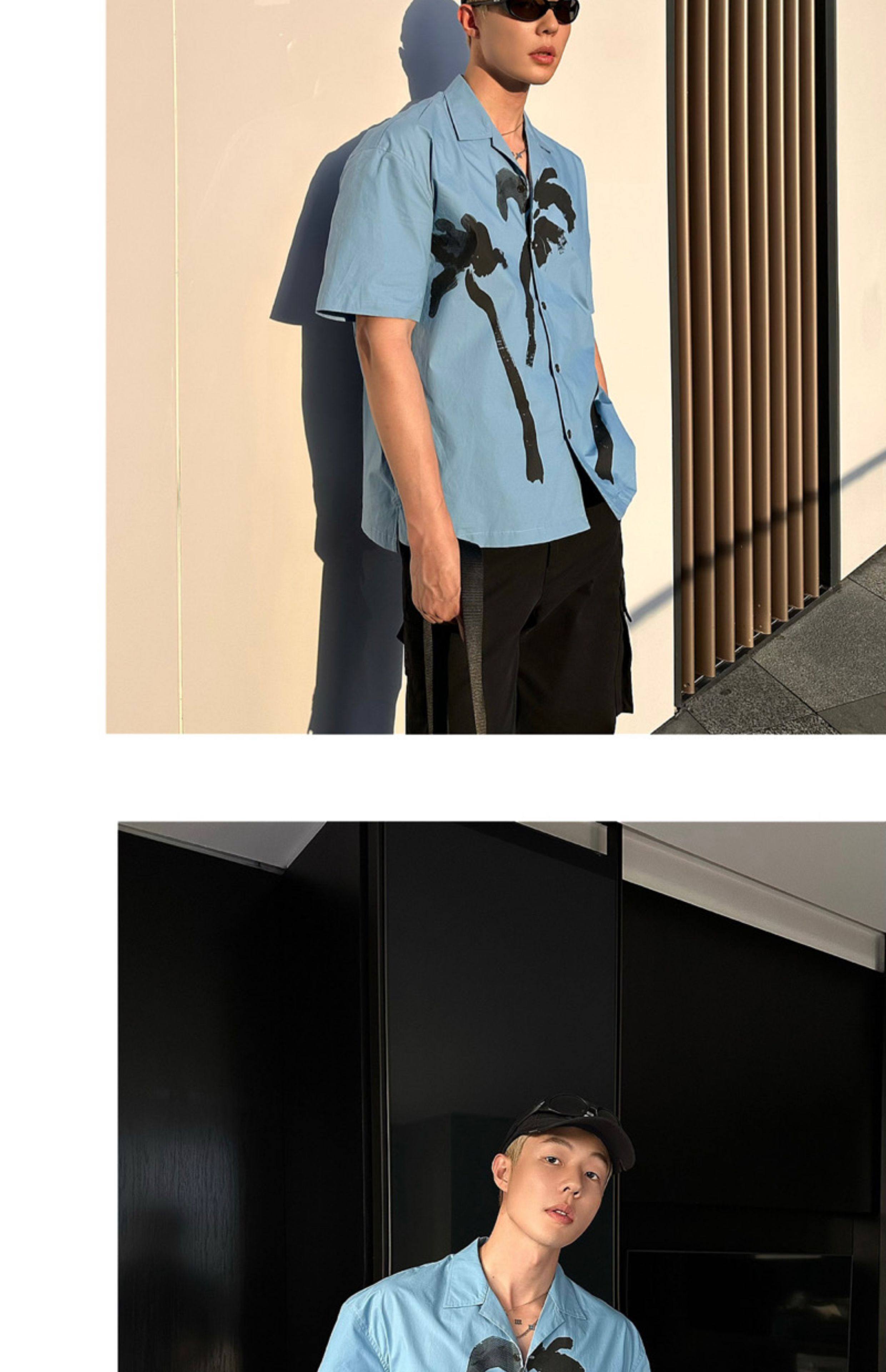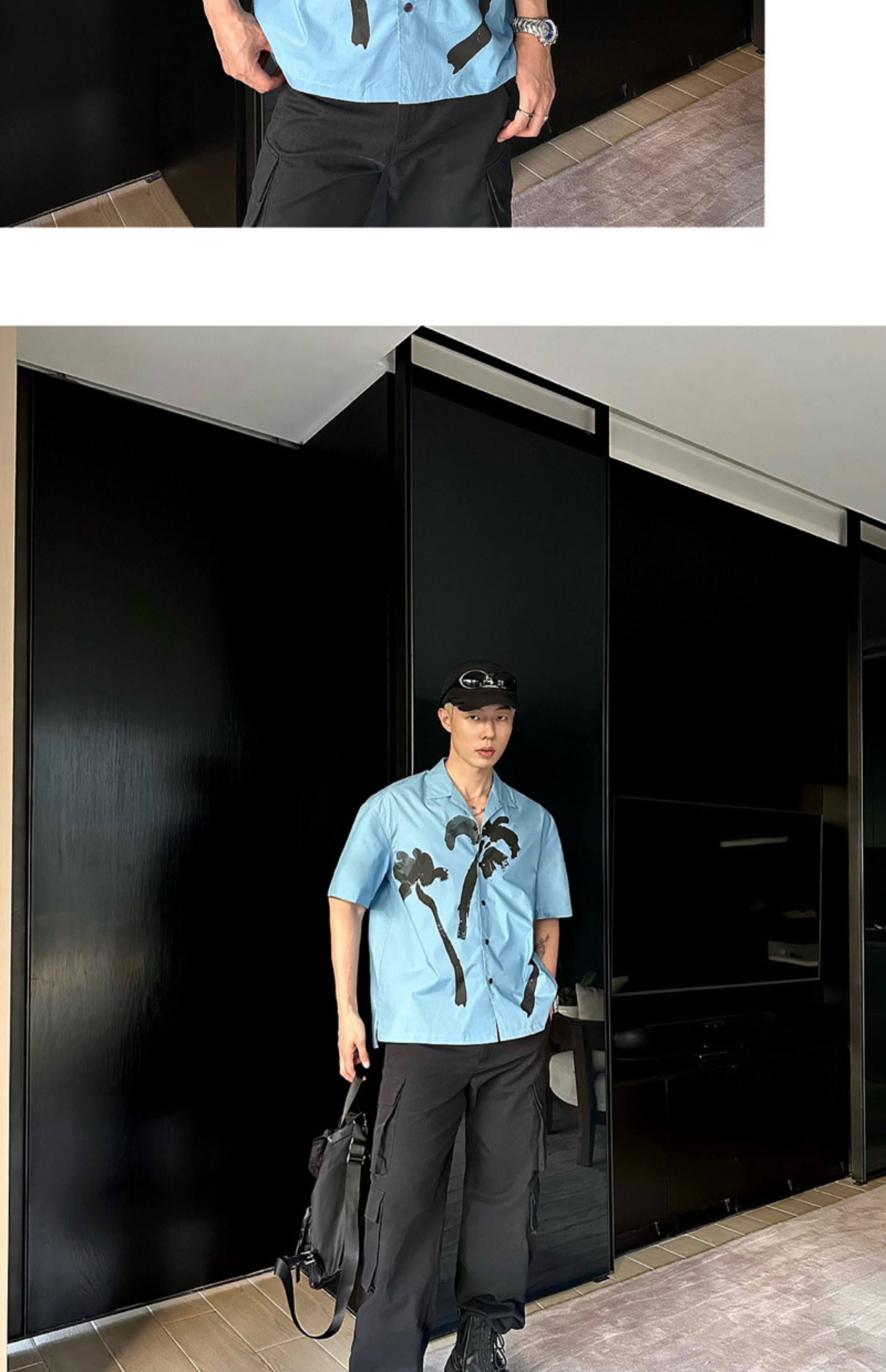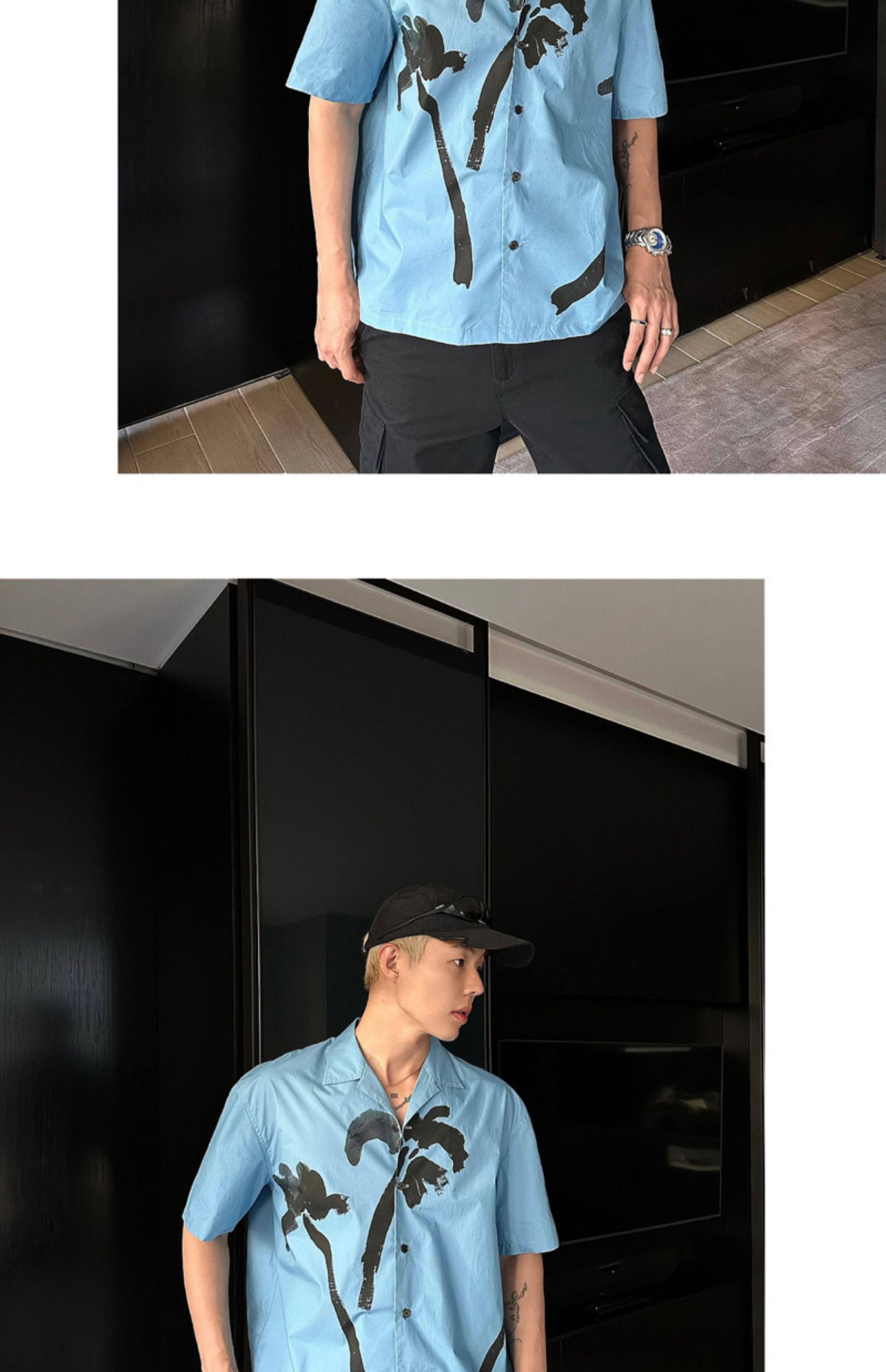 Weave Island Date Cuban Collar Printed Short Sleeve Shirt