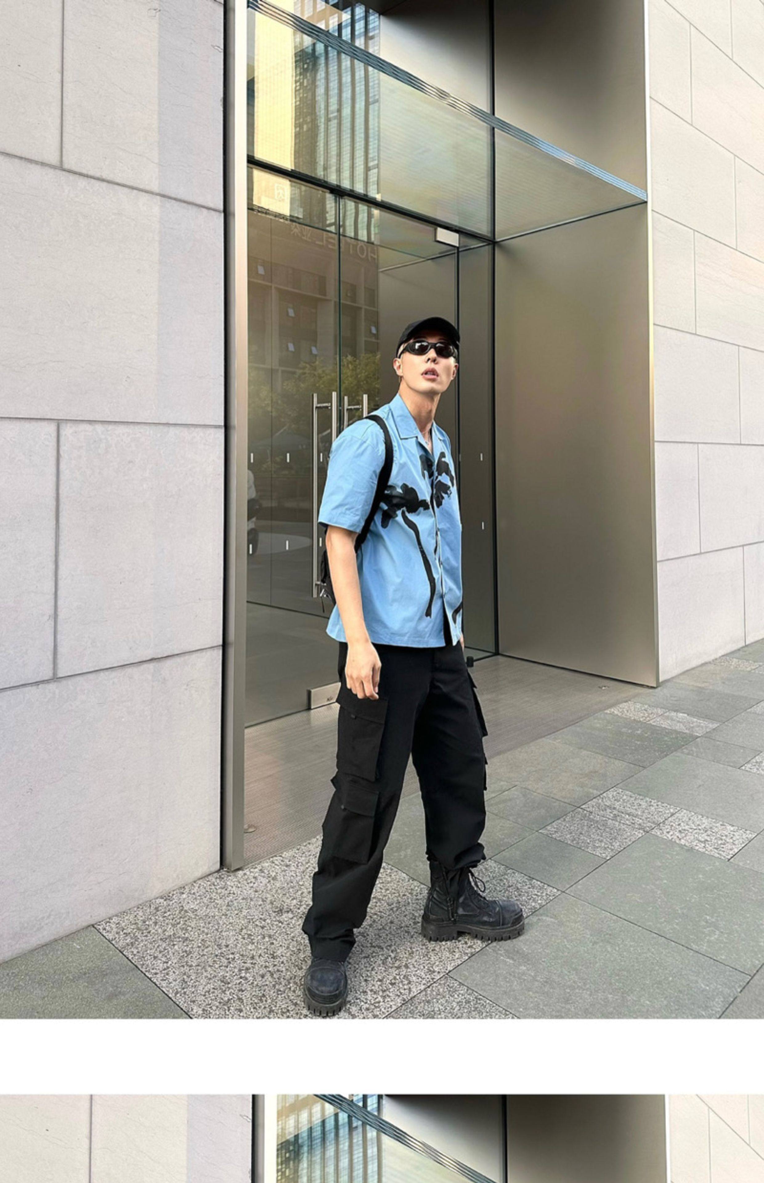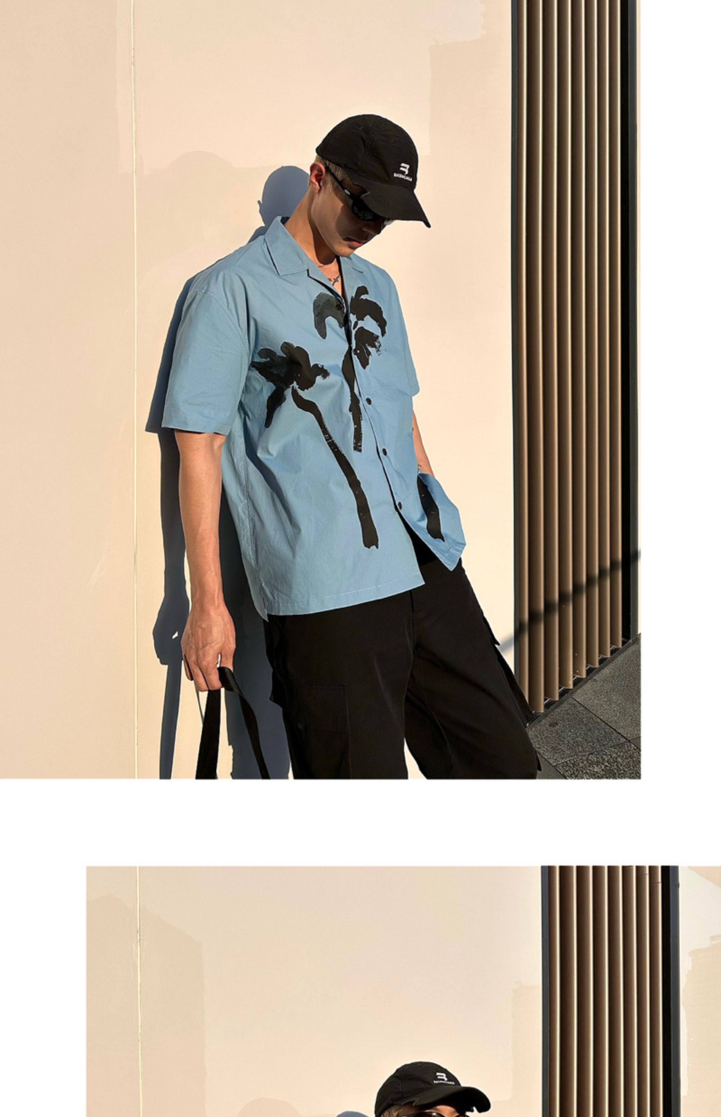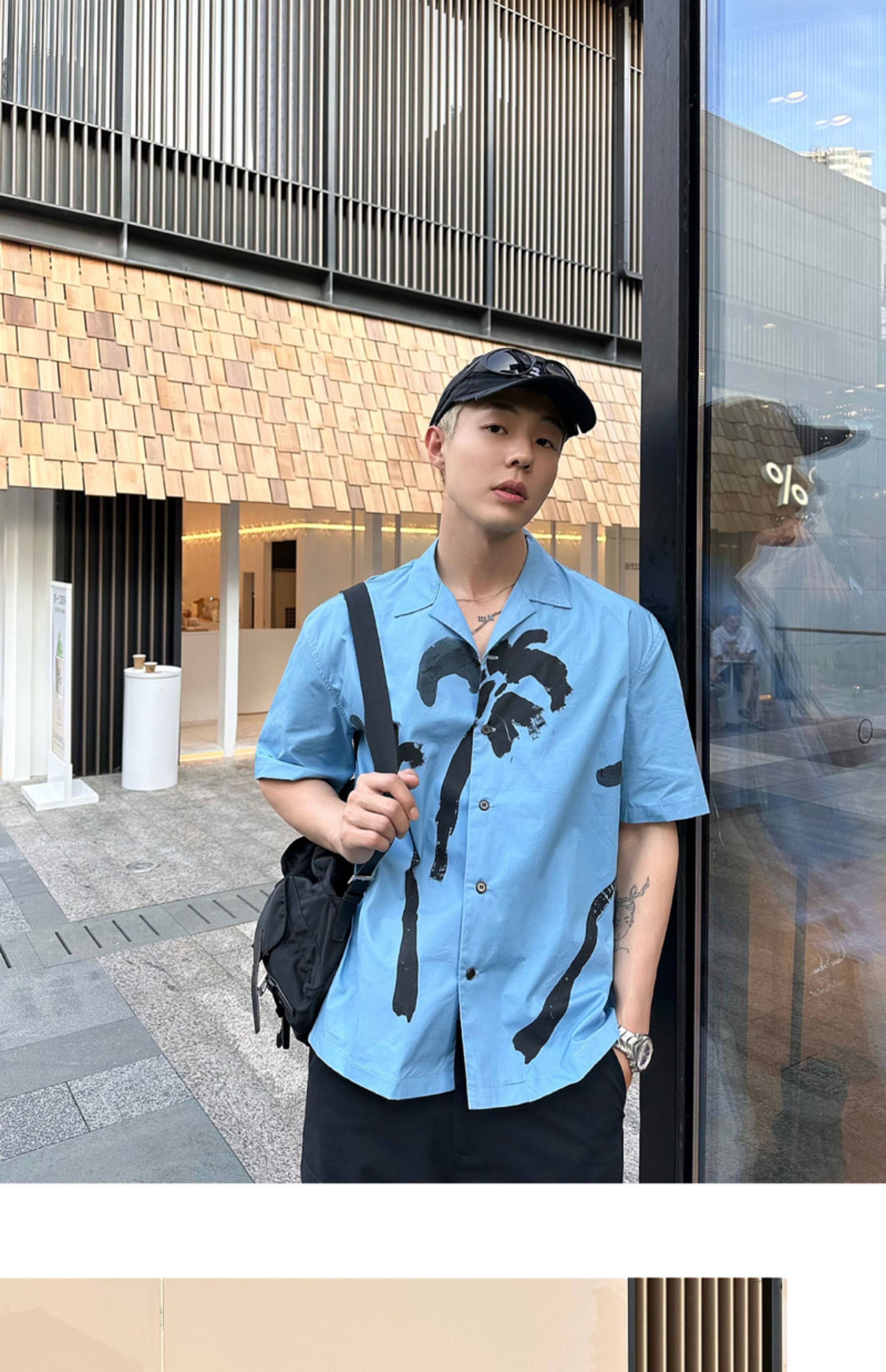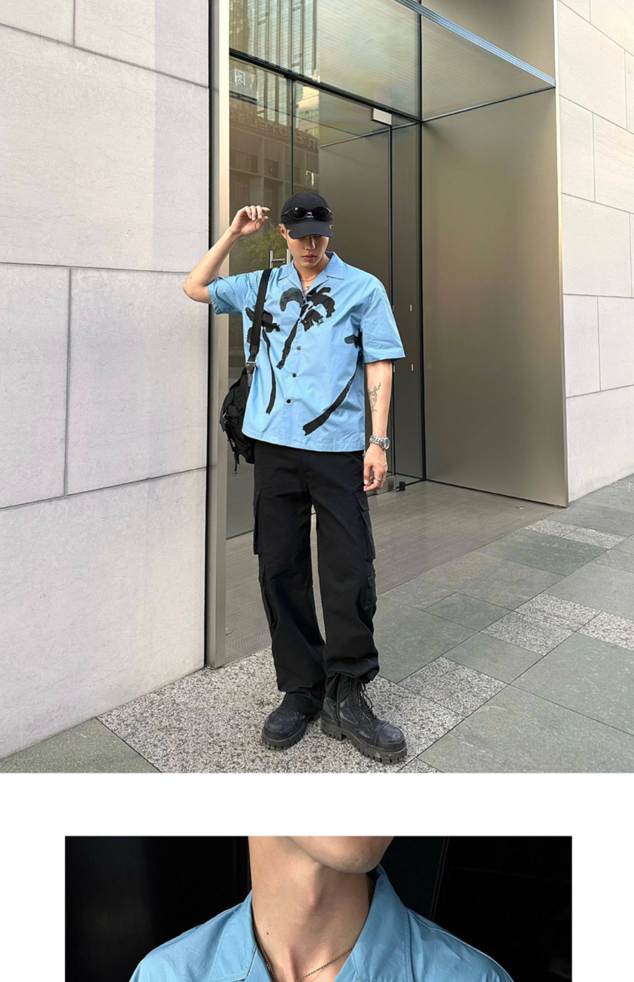 Weave Island Date Cuban Collar Printed Short Sleeve Shirt