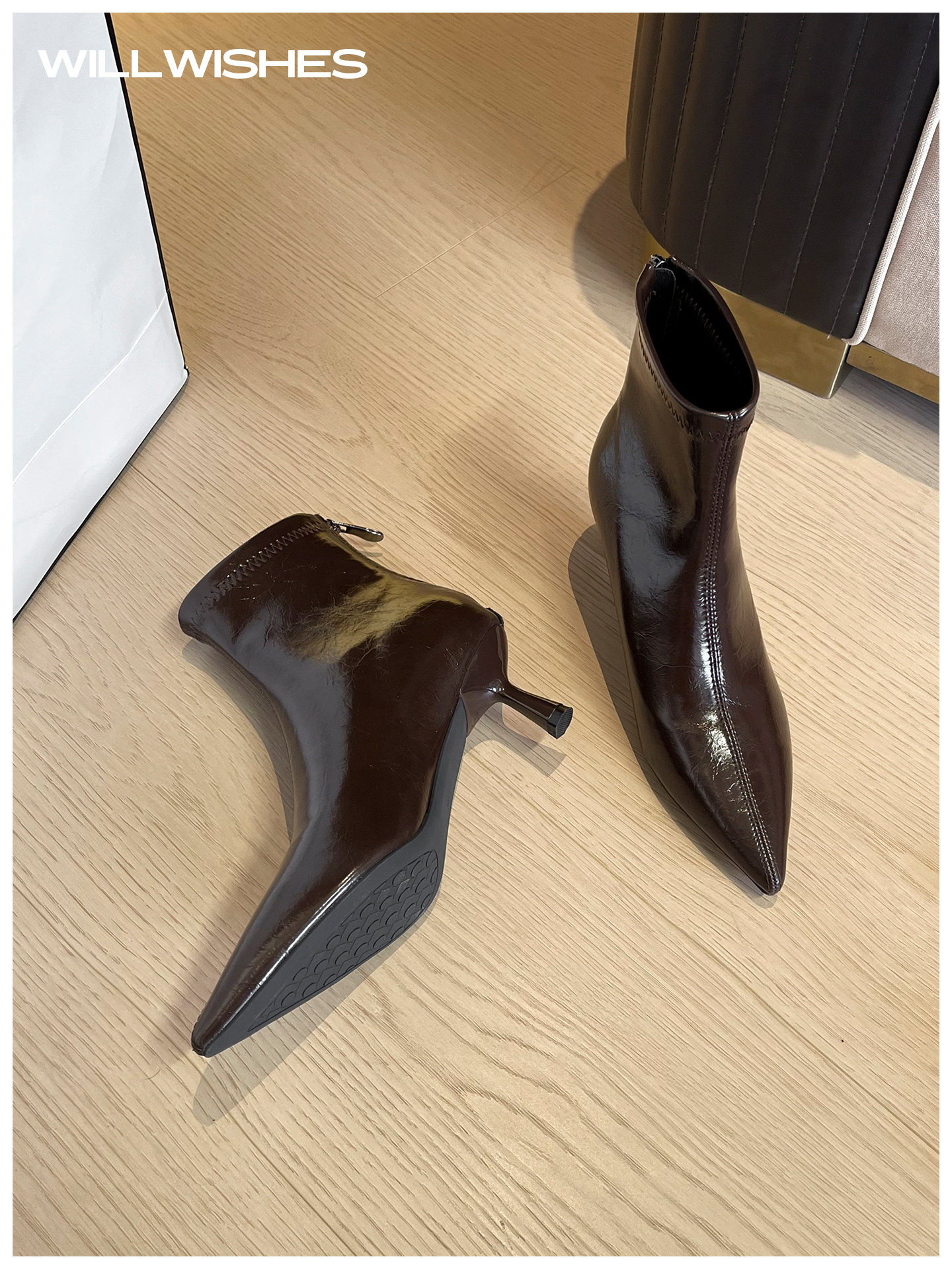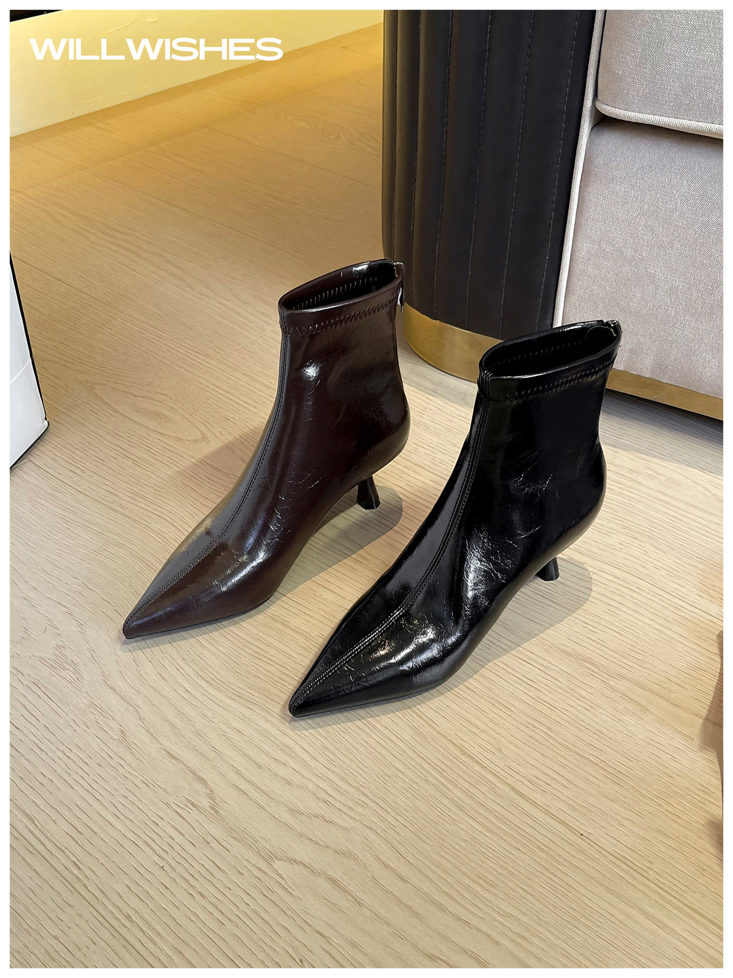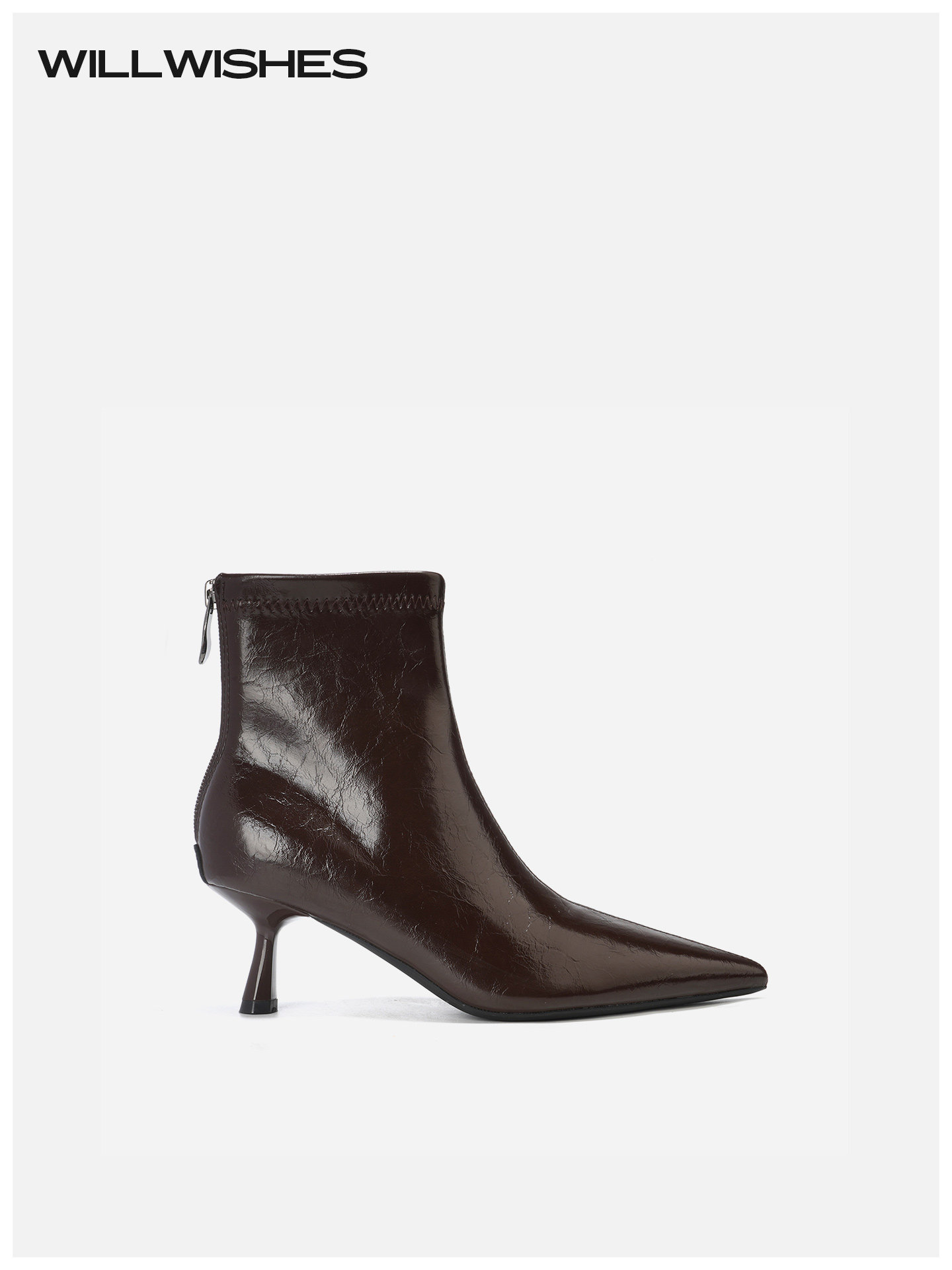 WILLWISHES Wang Ding Pointed Toe Stiletto Back Zipper Boots