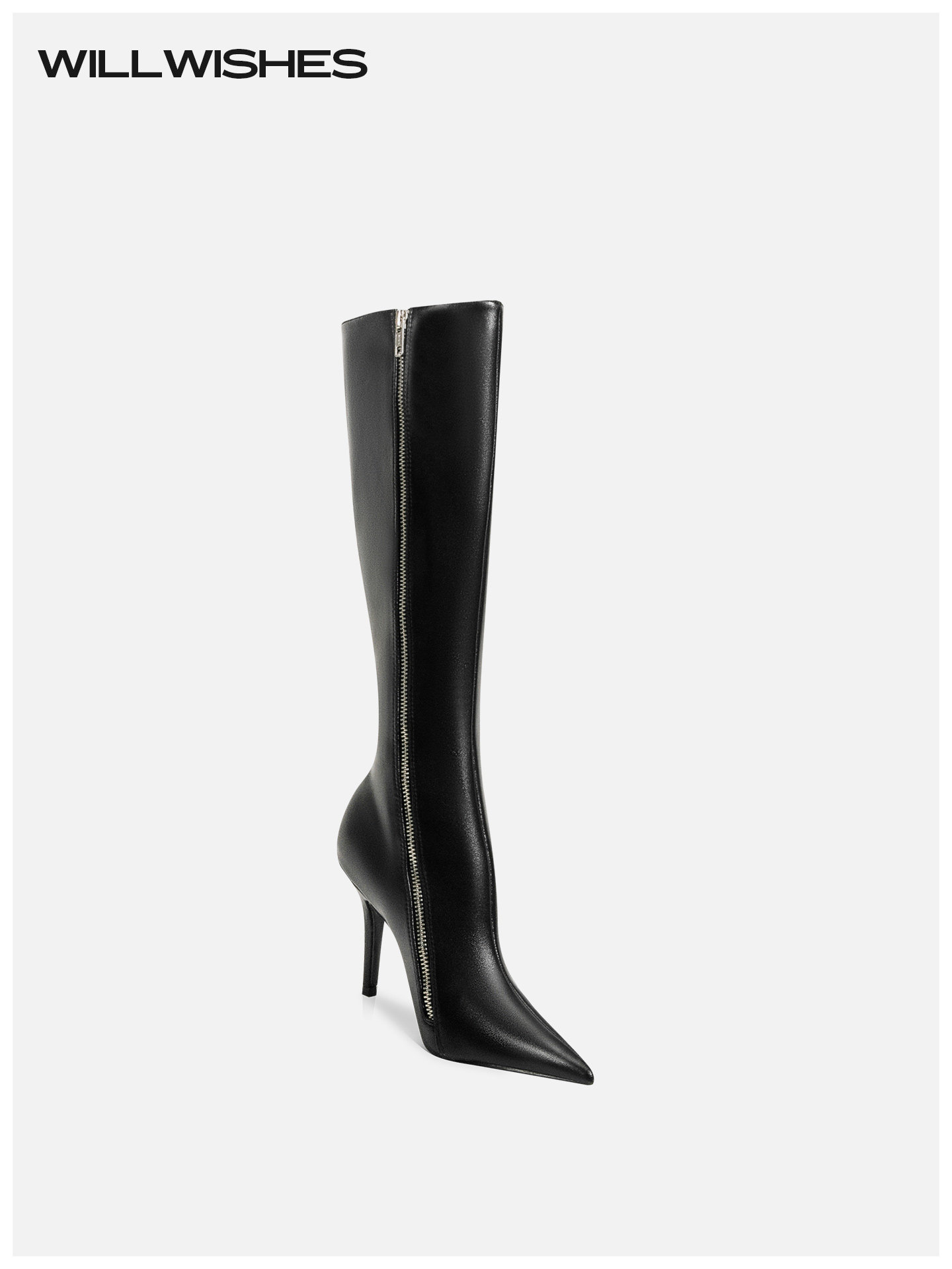 WILLWISHES Wang Ding Pointed Toe Stiletto Slim Knight Boots