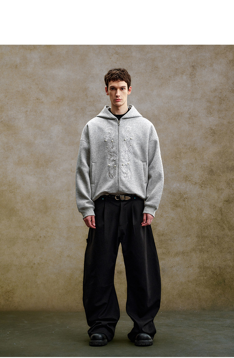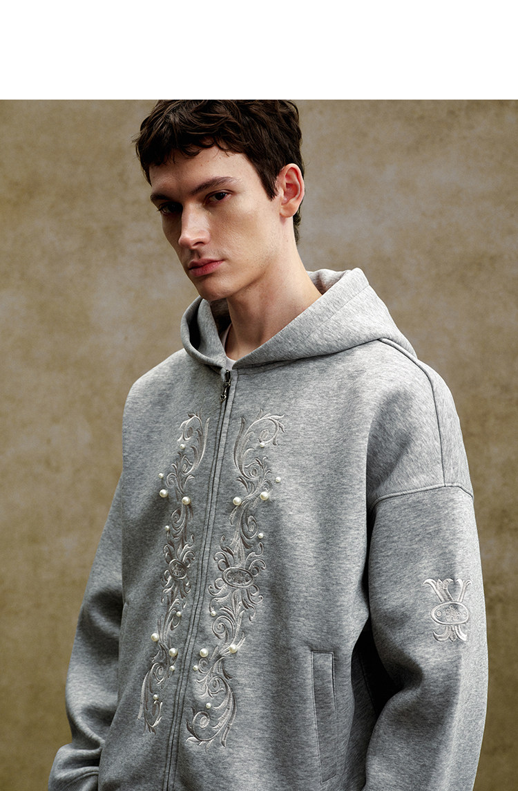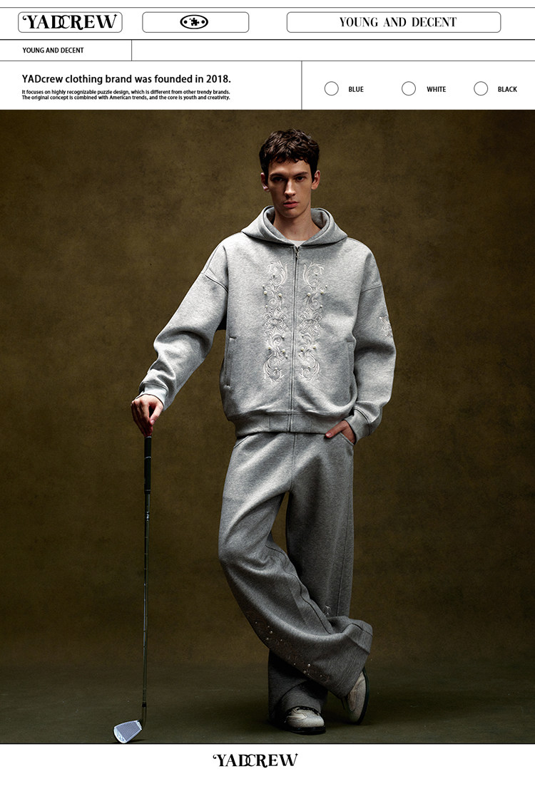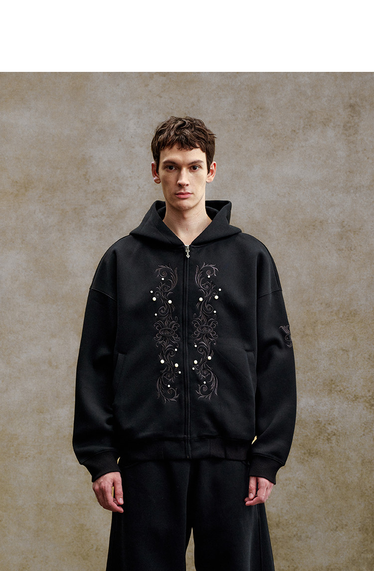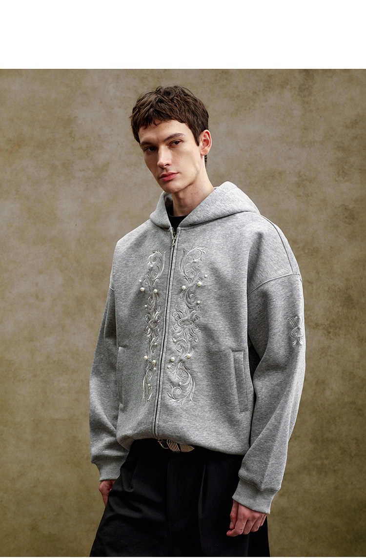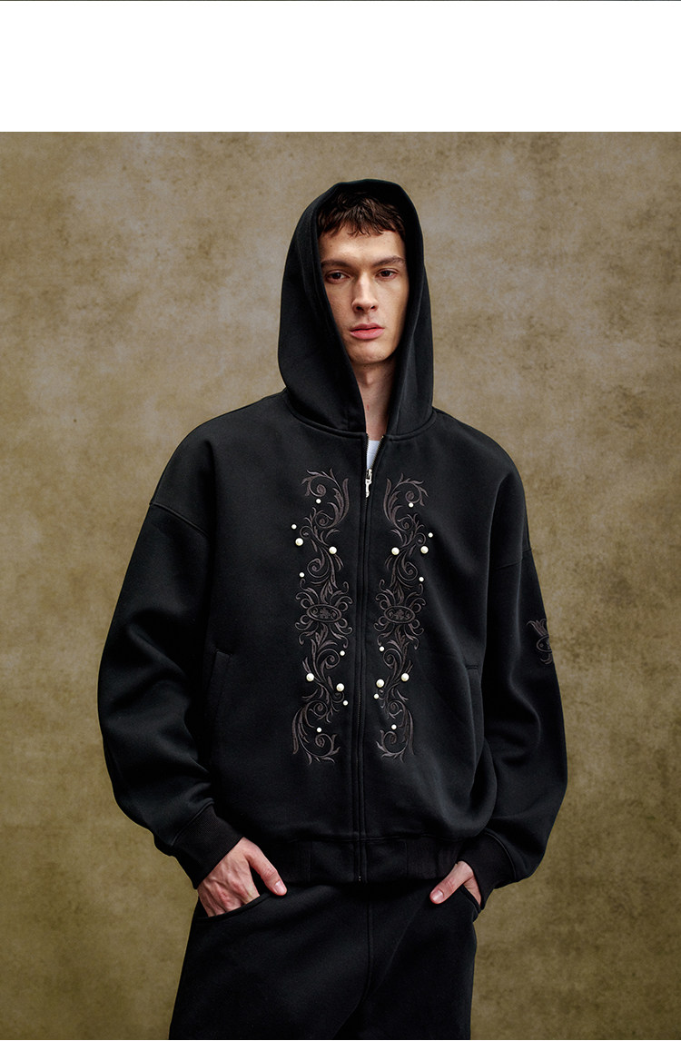 YADcrew Heavy Duty Embroidered Pearl Zipper Hooded Jacket