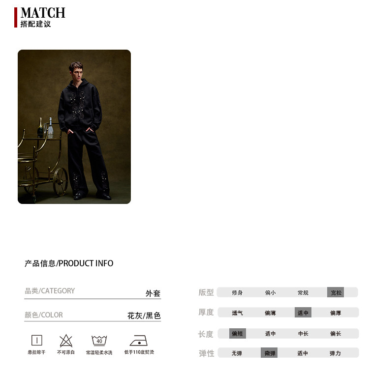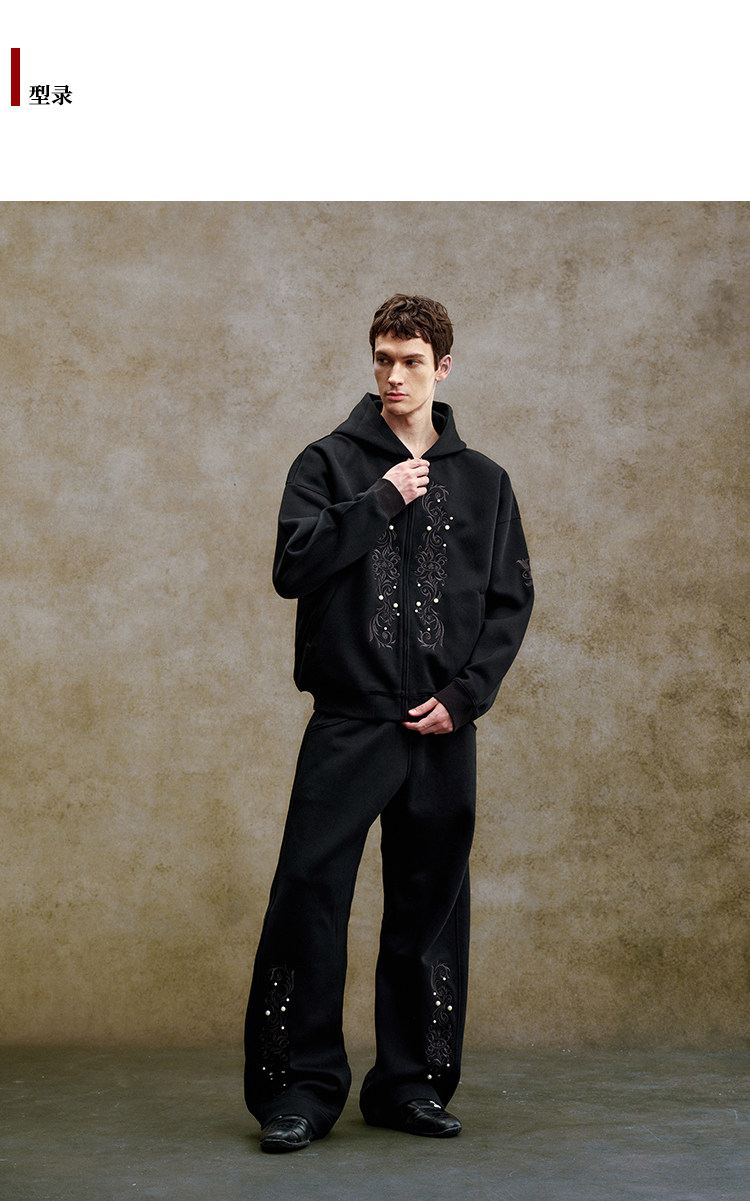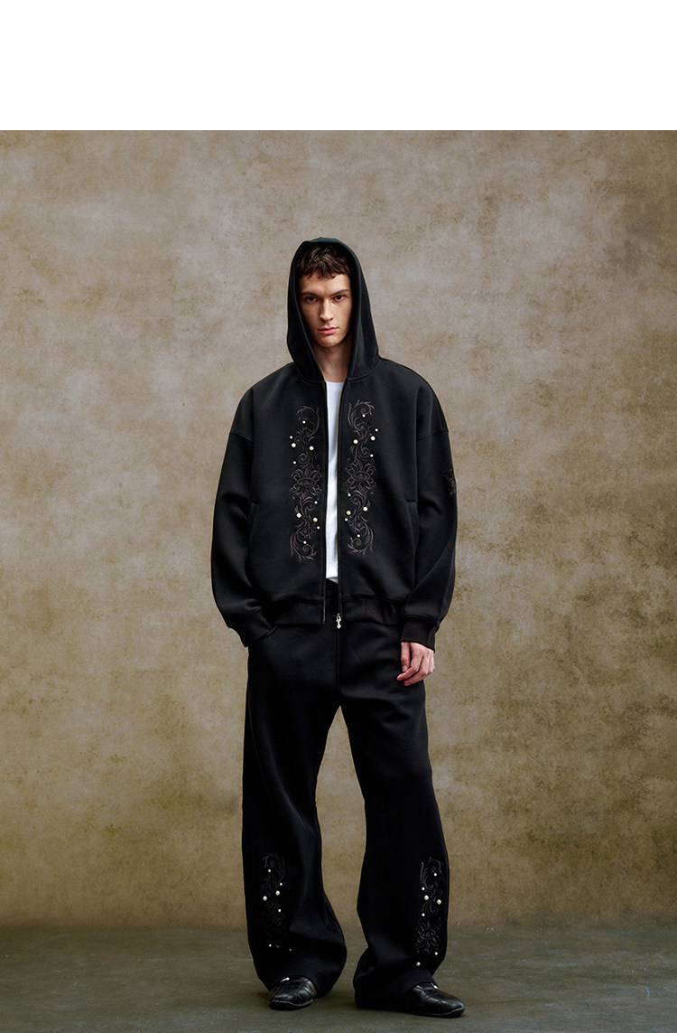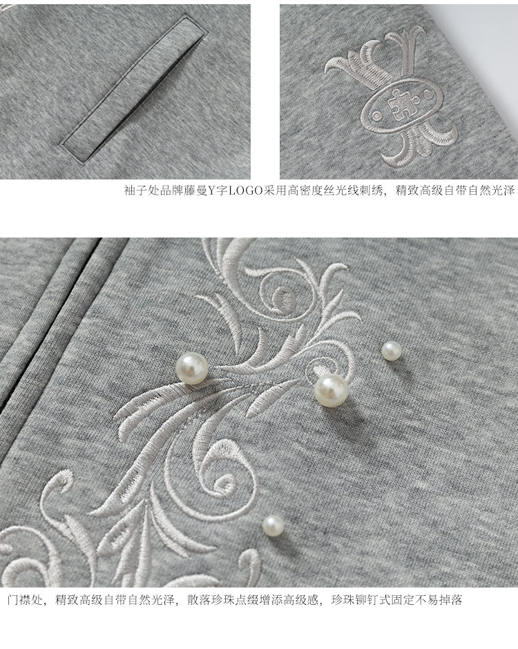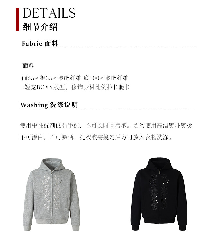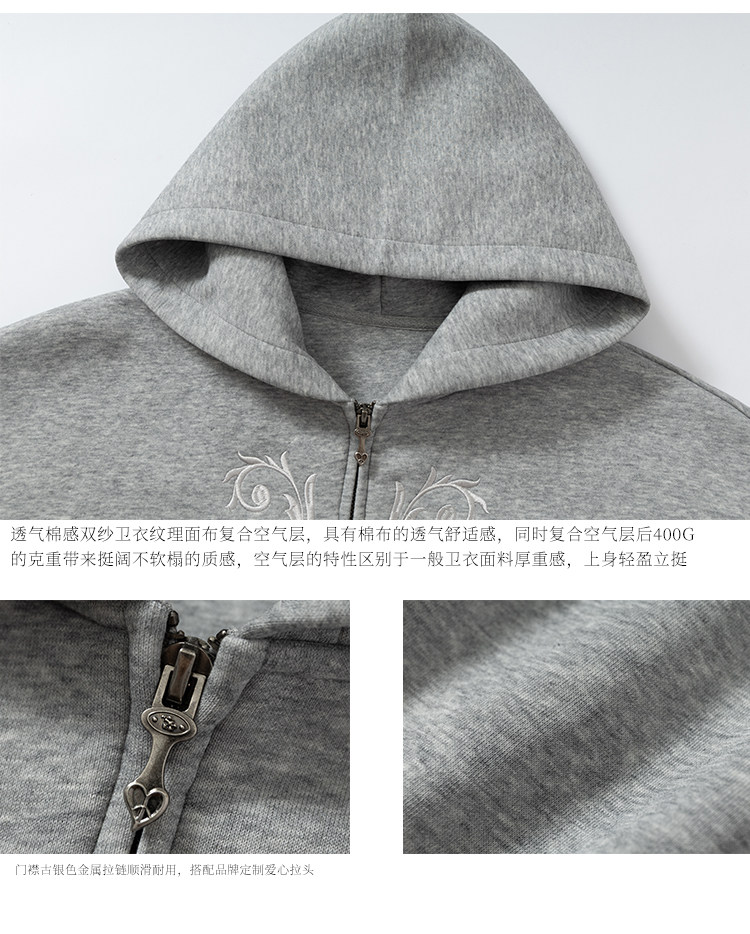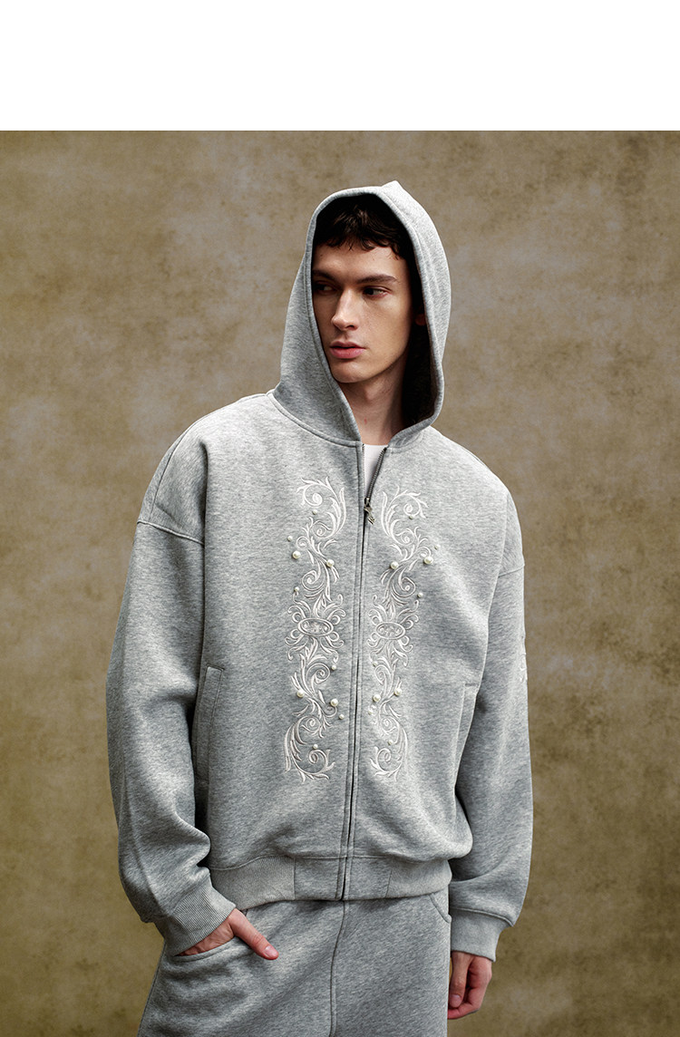 YADcrew Heavy Duty Embroidered Pearl Zipper Hooded Jacket