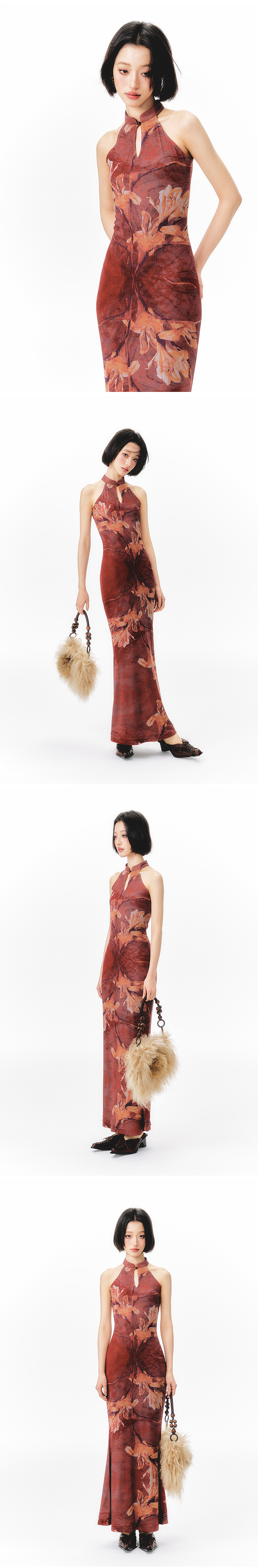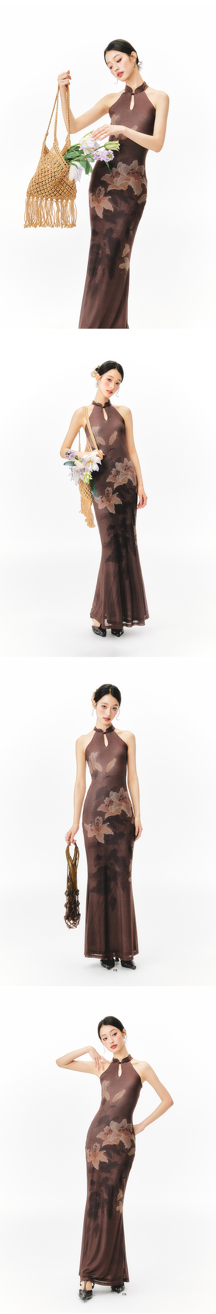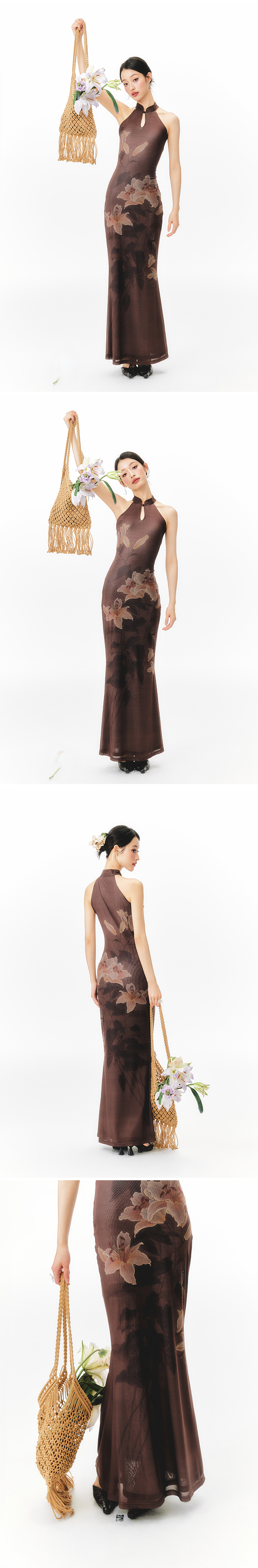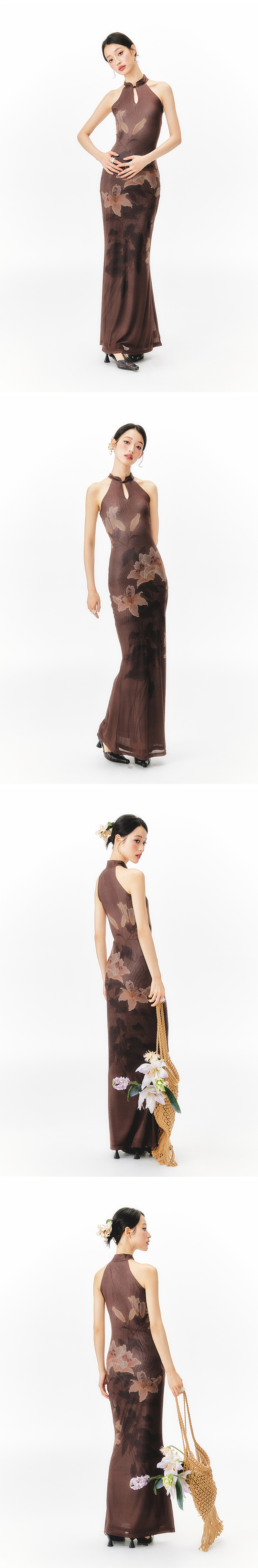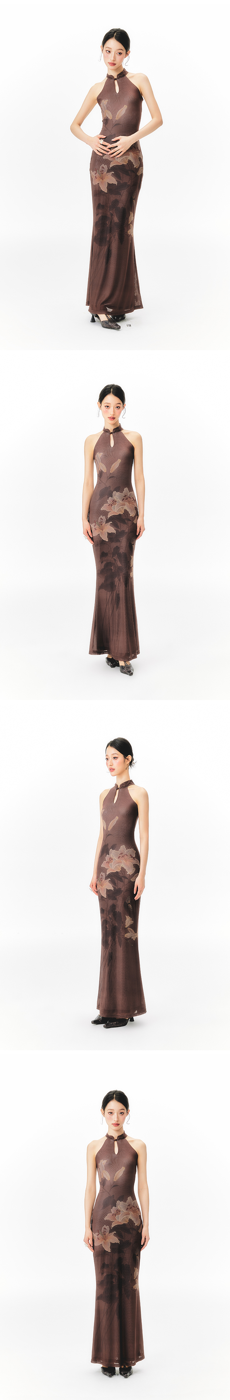 YEDM Floral Print Neck Dress