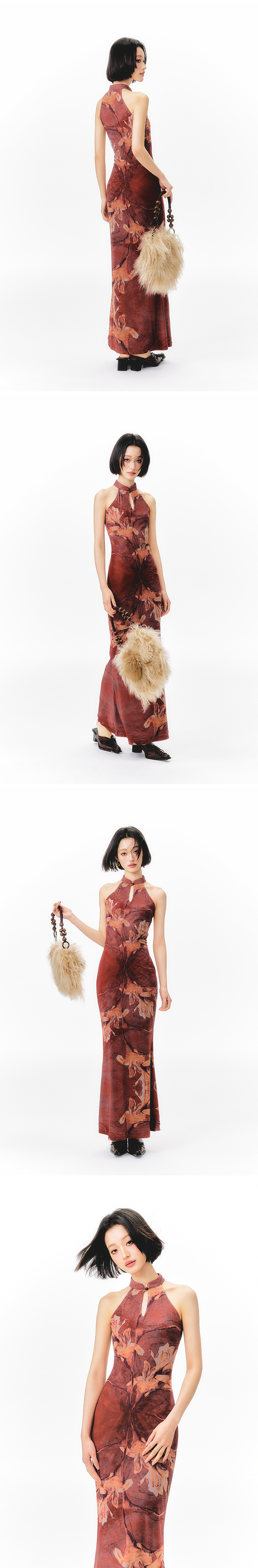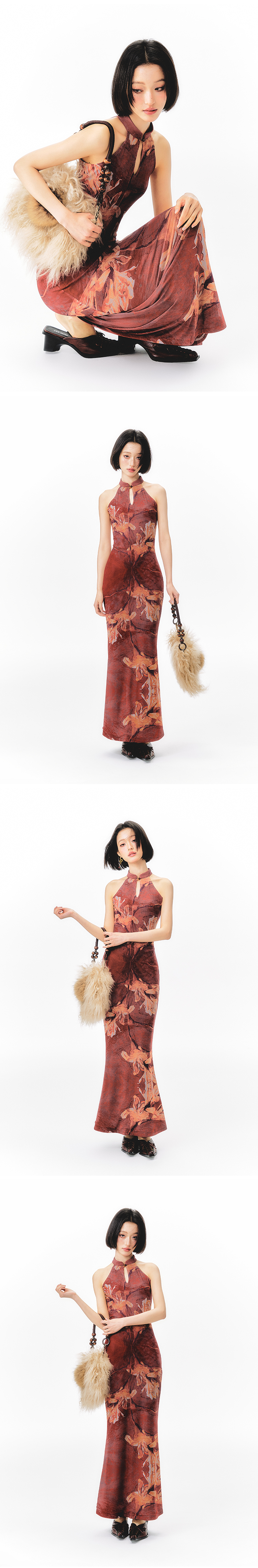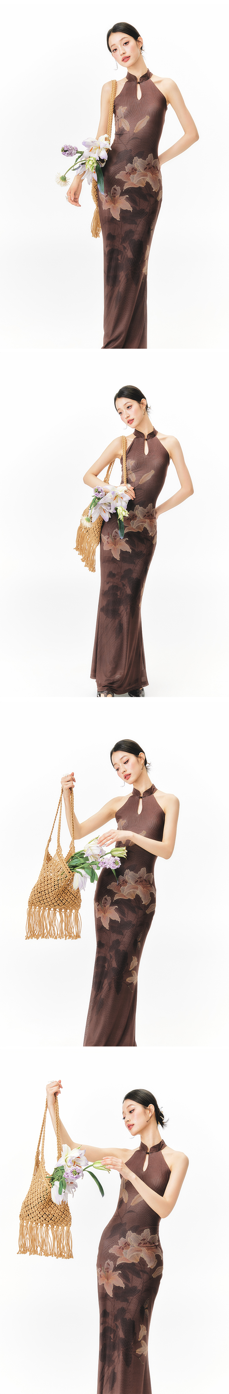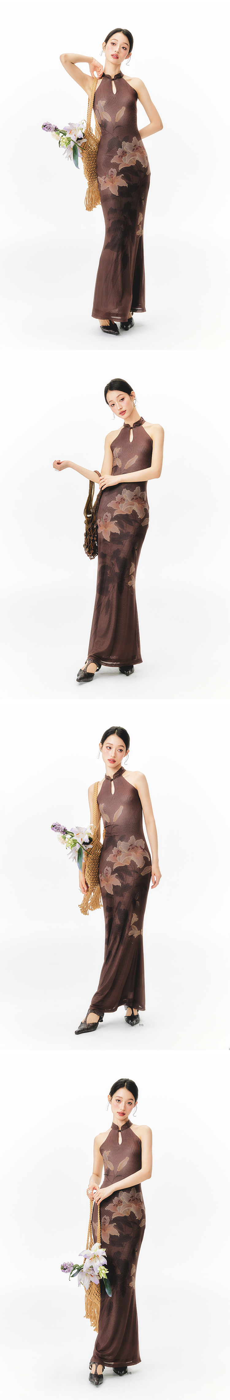YEDM Floral Print Neck Dress