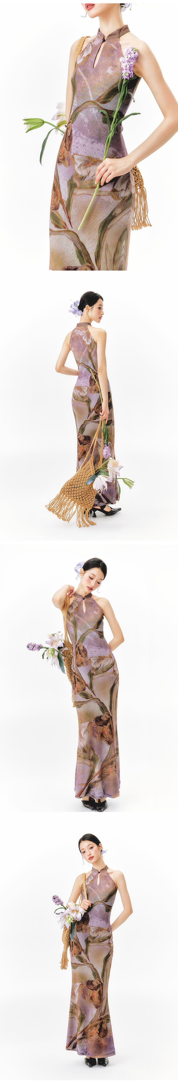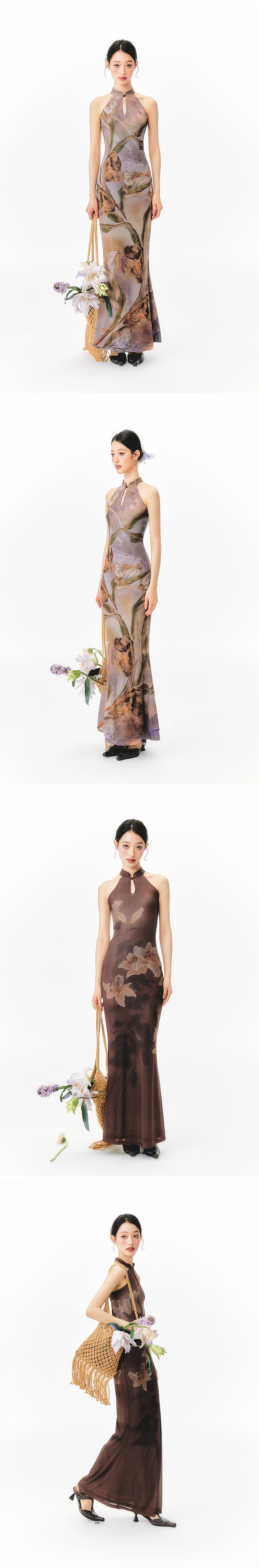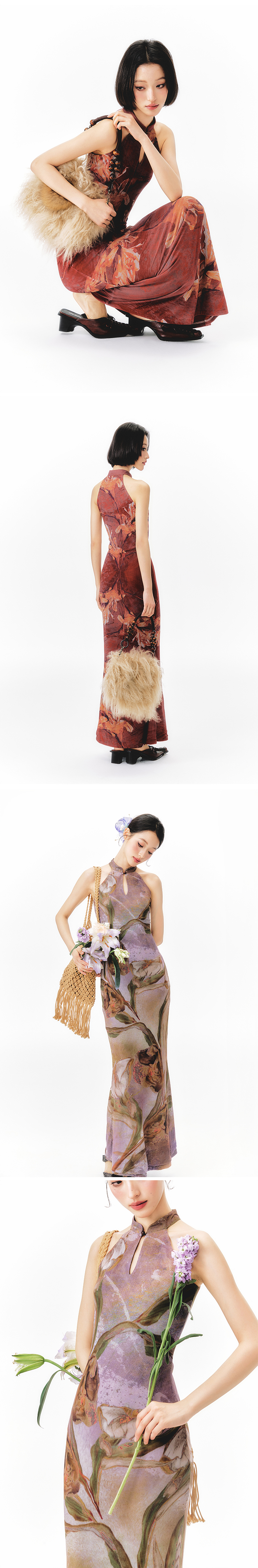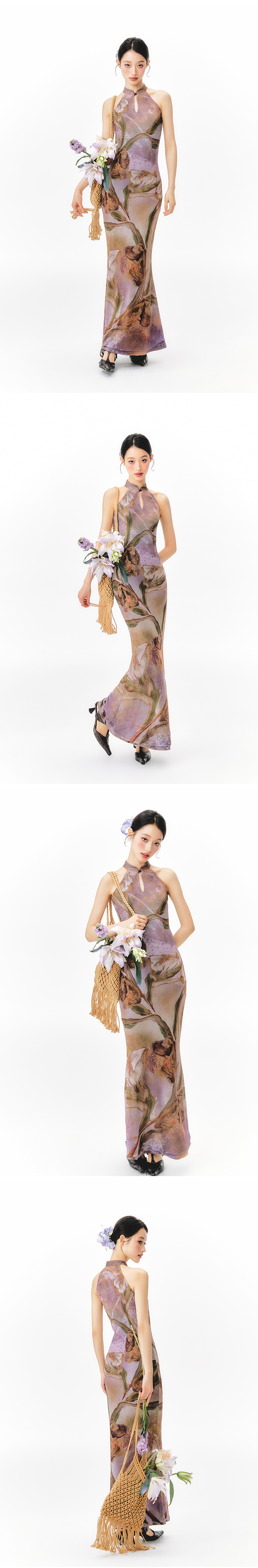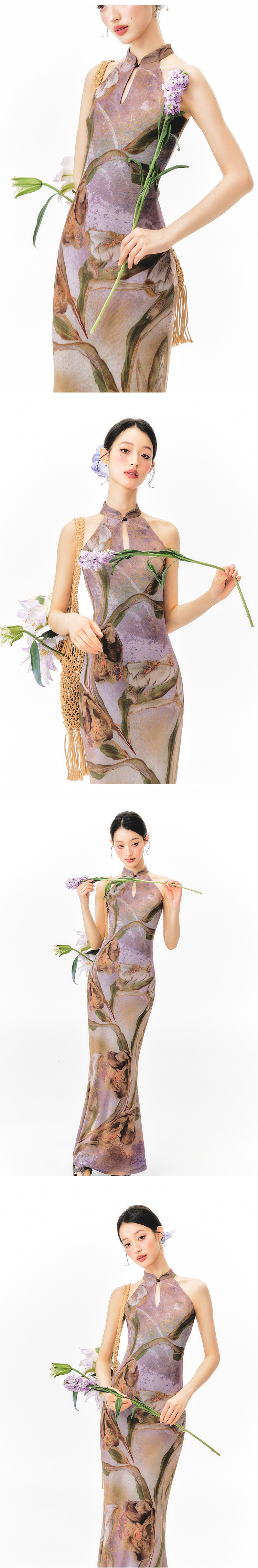 YEDM Floral Print Neck Dress