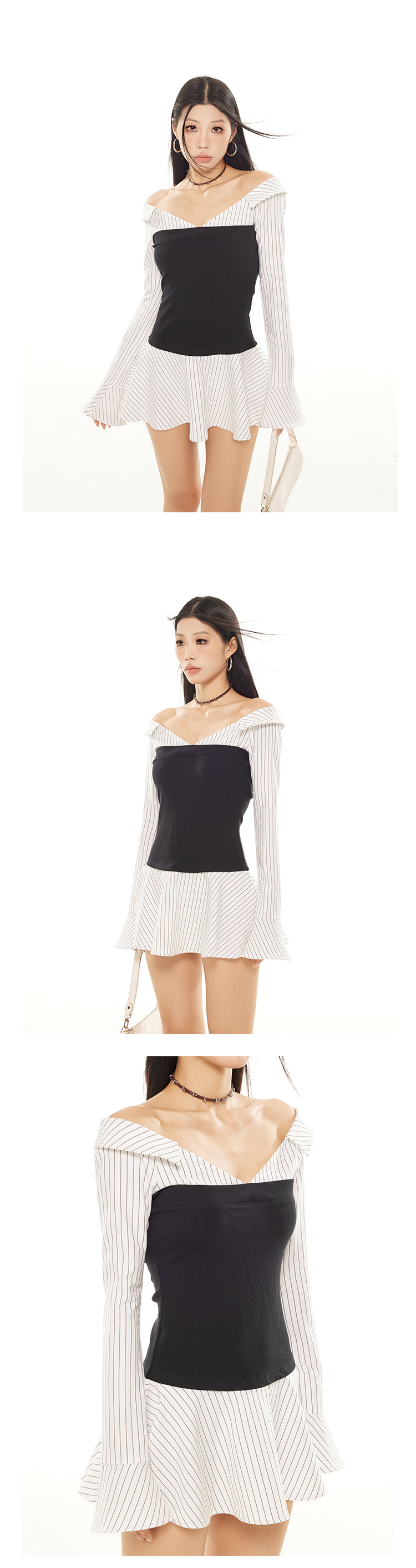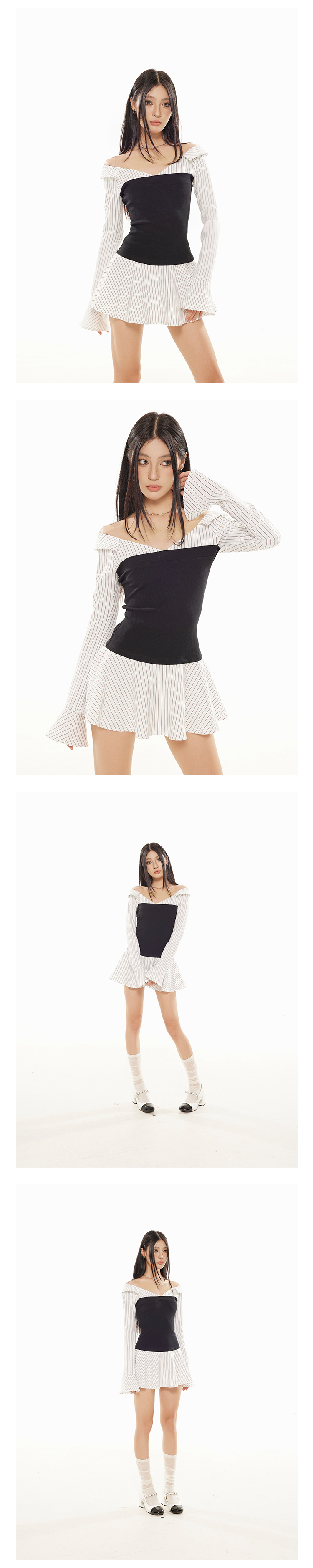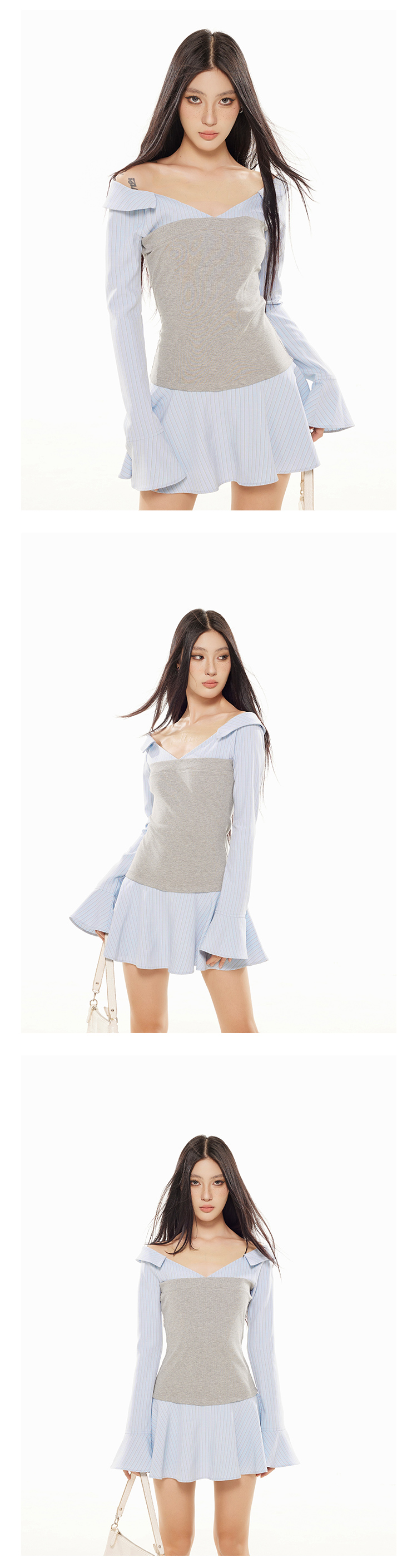 Zero Stripe Splicing V-Neck Slim Fit Dress