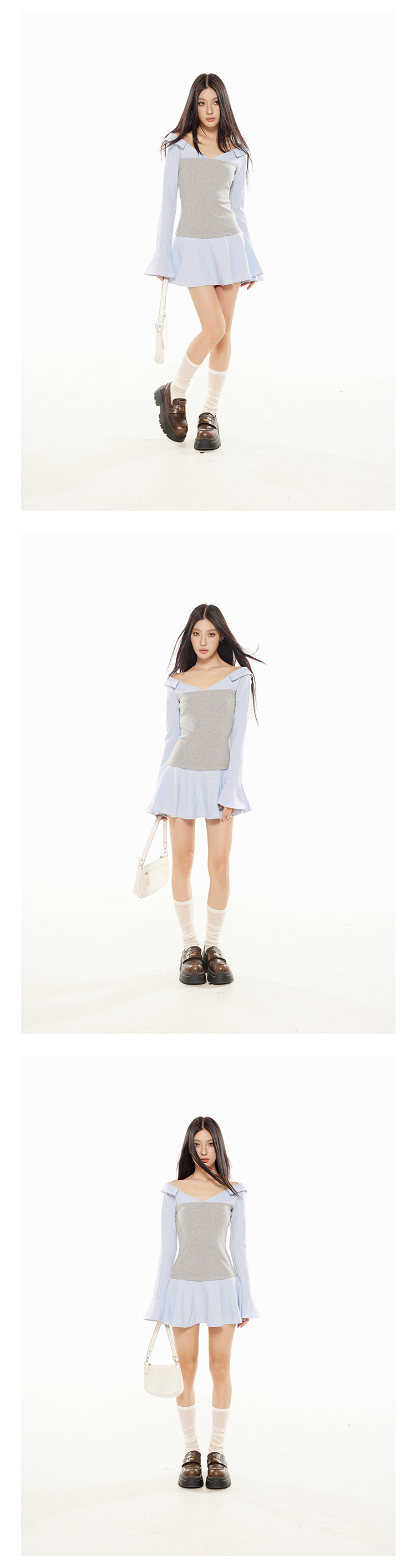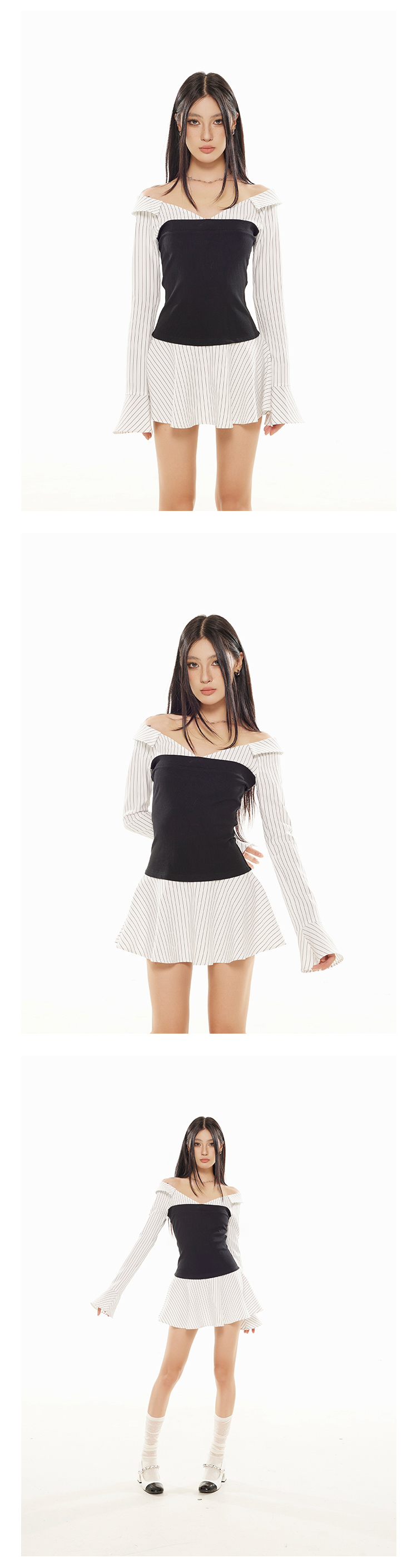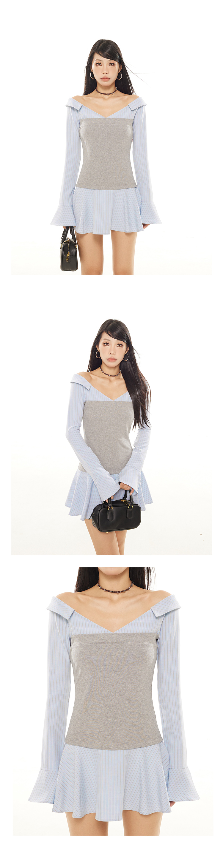 Zero Stripe Splicing V-Neck Slim Fit Dress