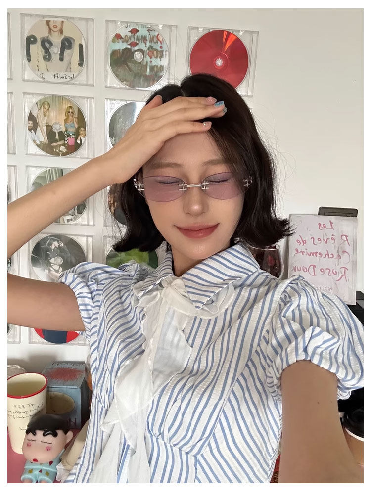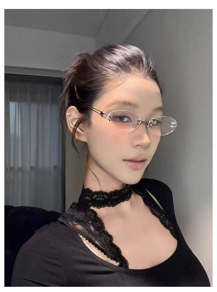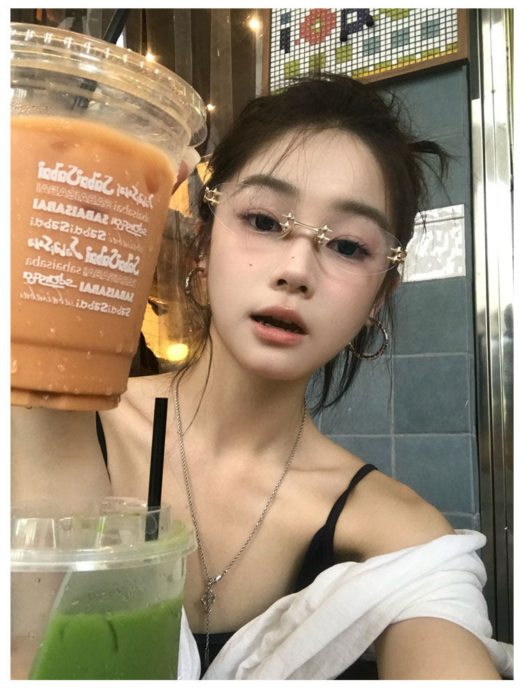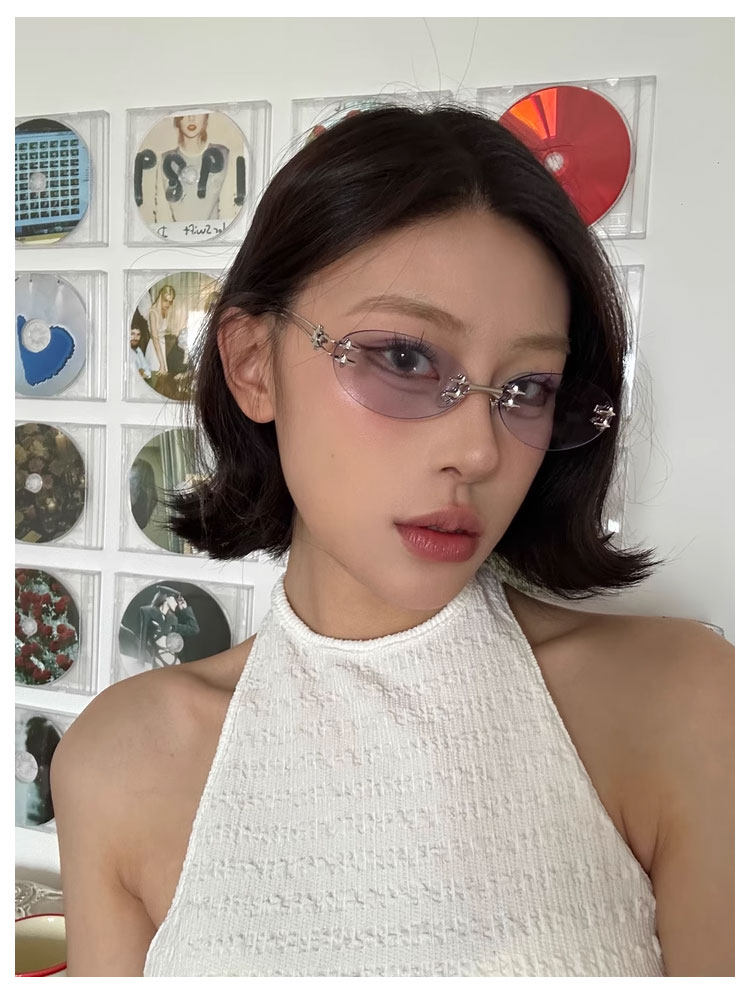 GM Retro Oval Star Sunglasses Korean Y2K Rimless Style