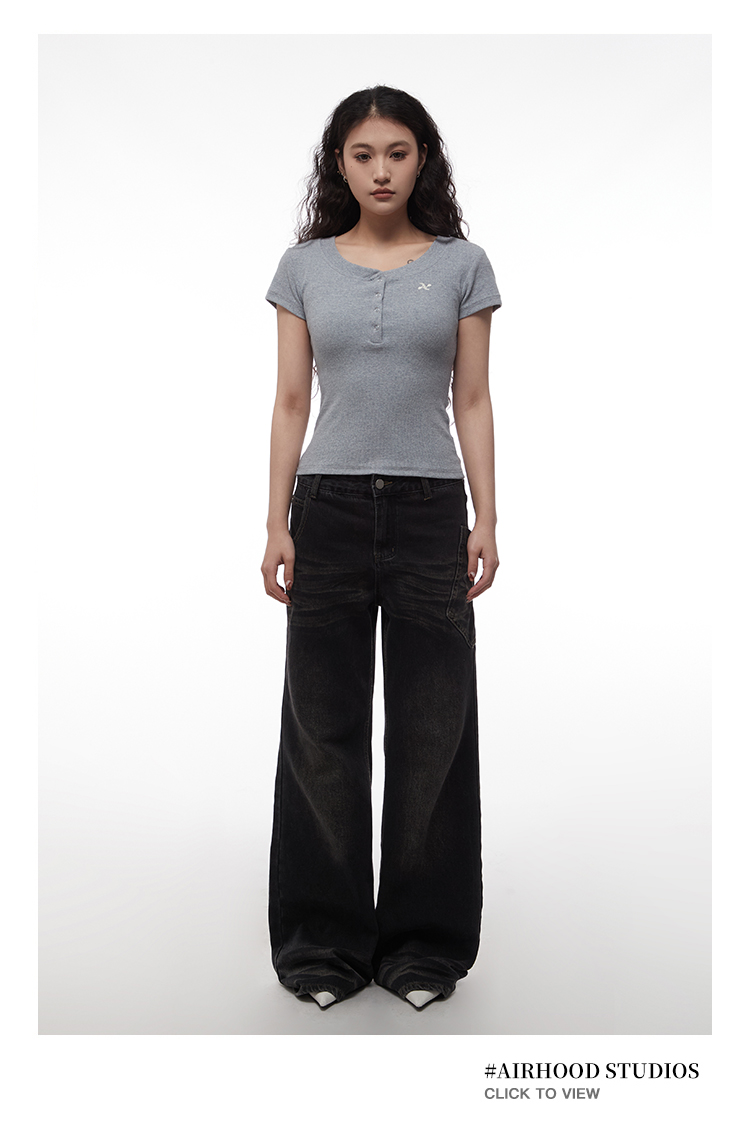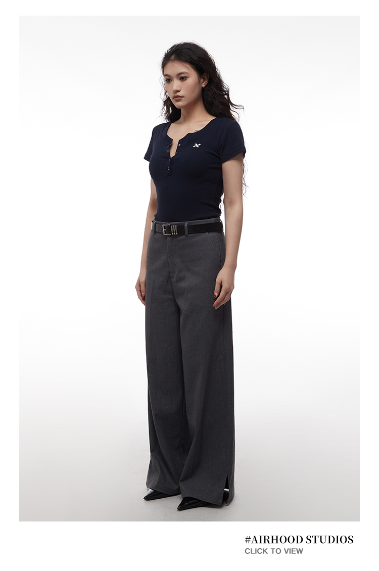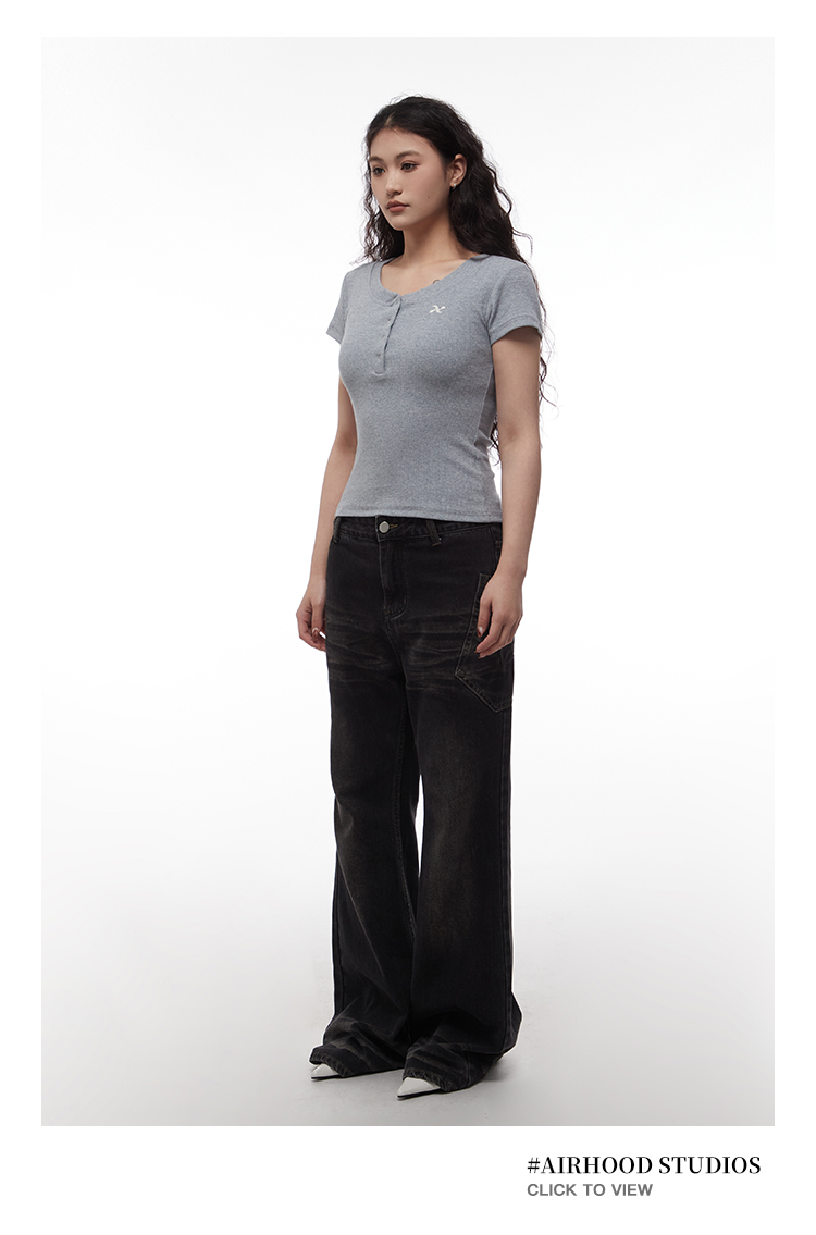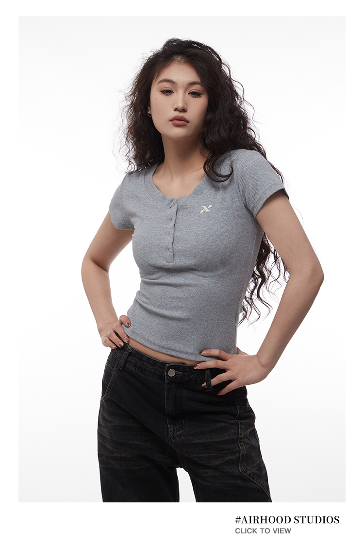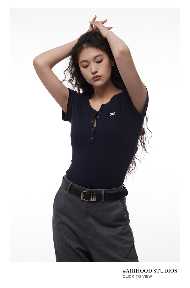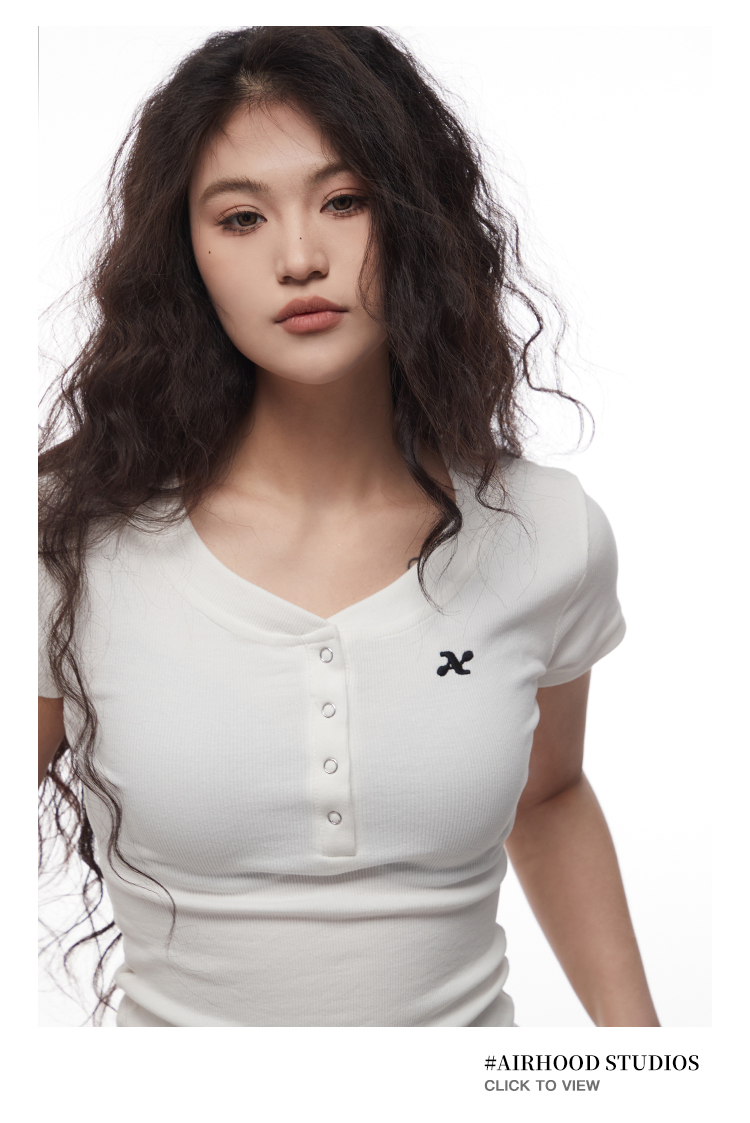 AIRHOOD Slim Fit Button V Neck Tee