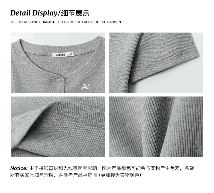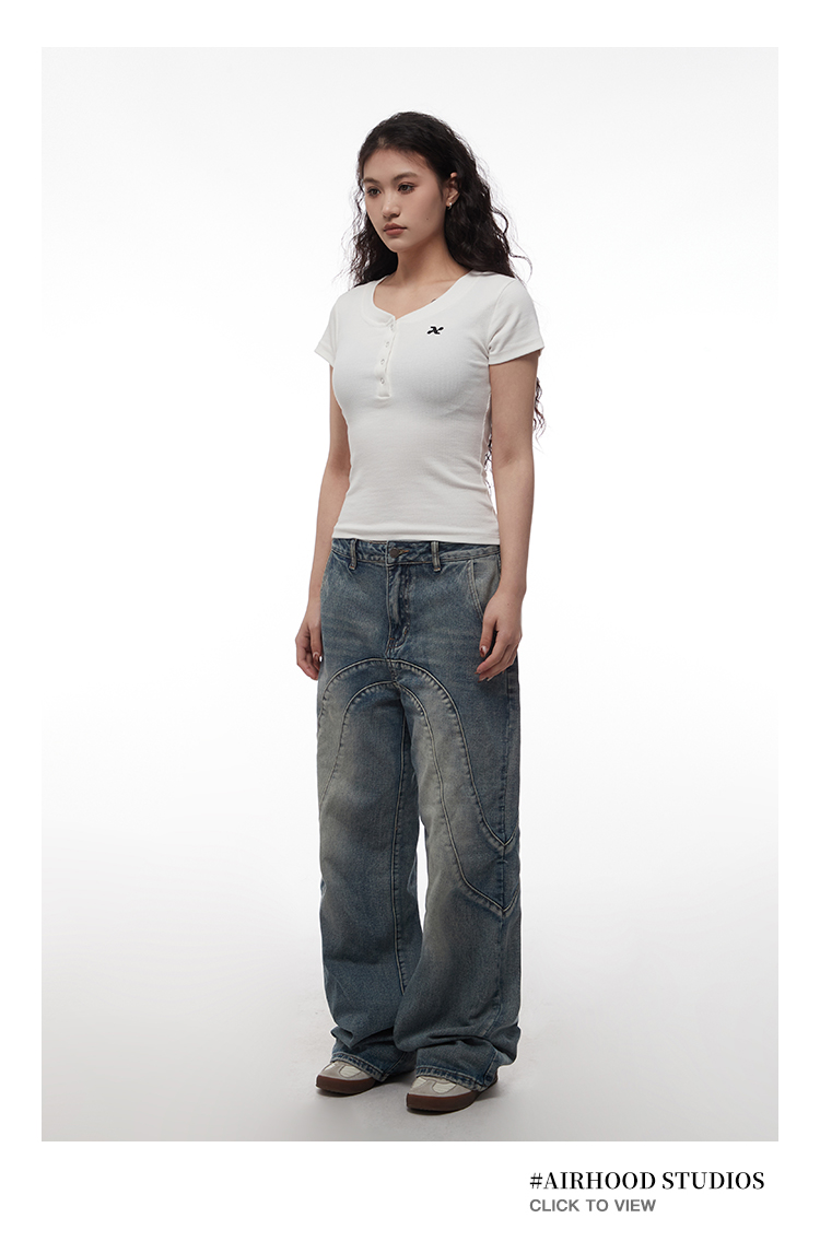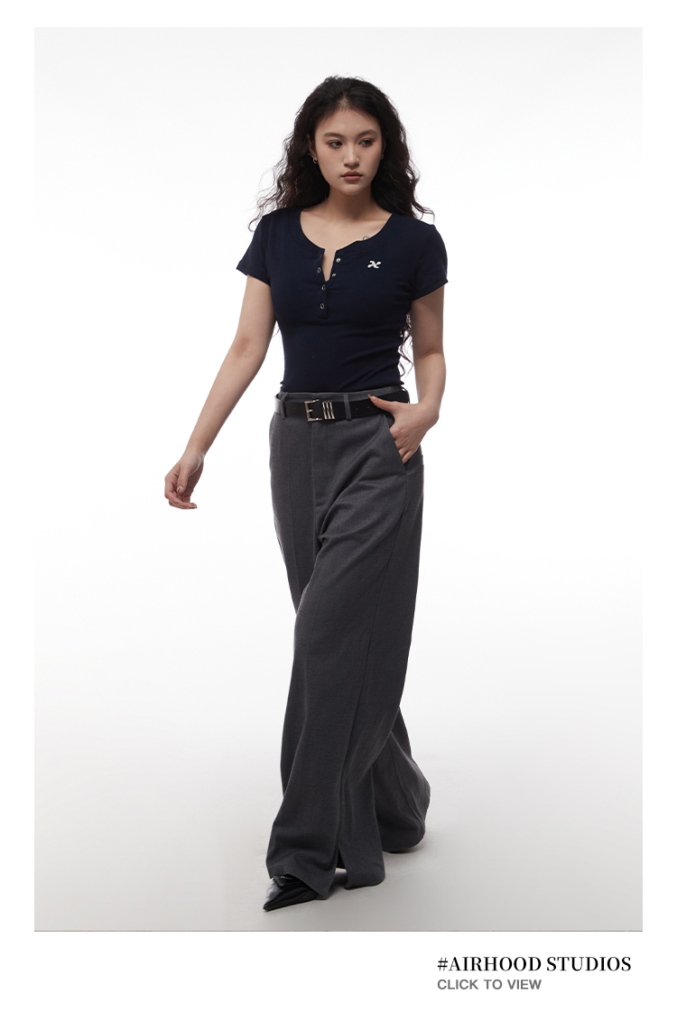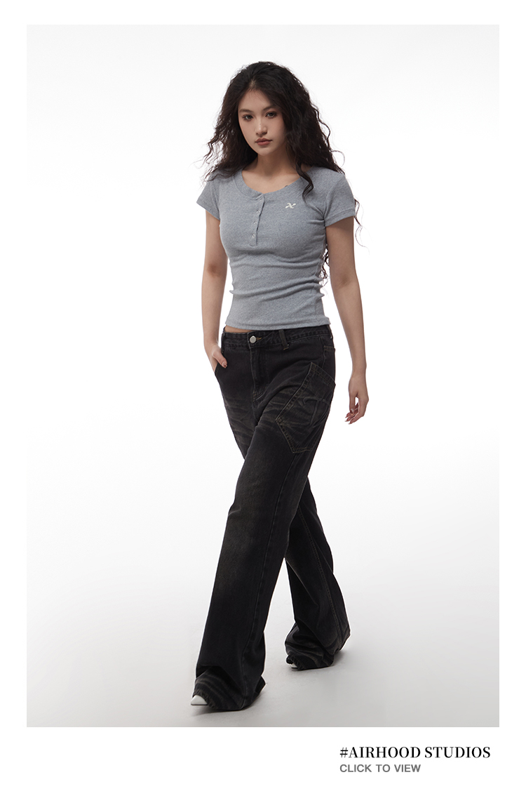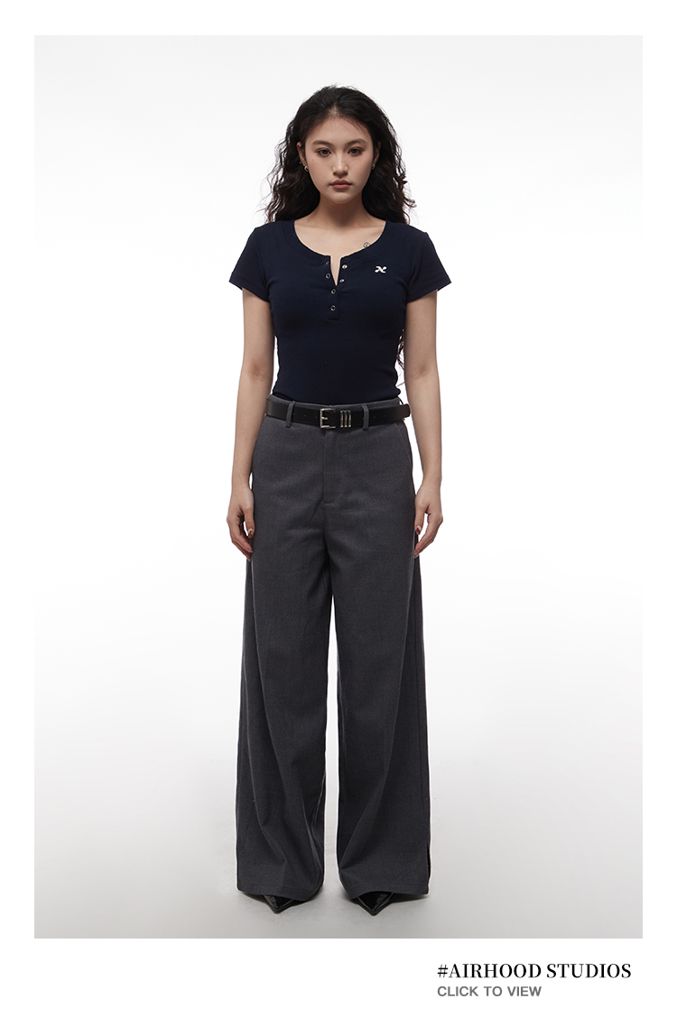 AIRHOOD Slim Fit Button V Neck Tee