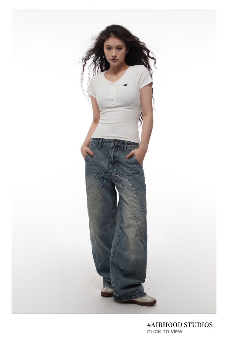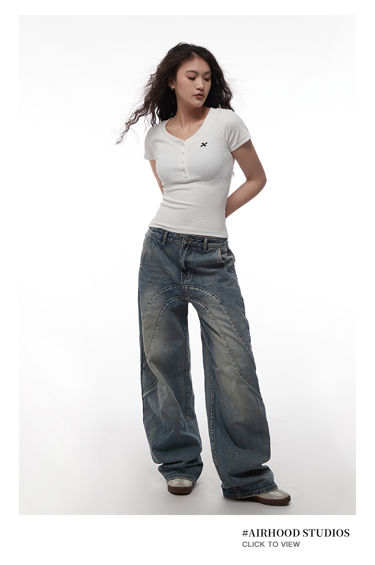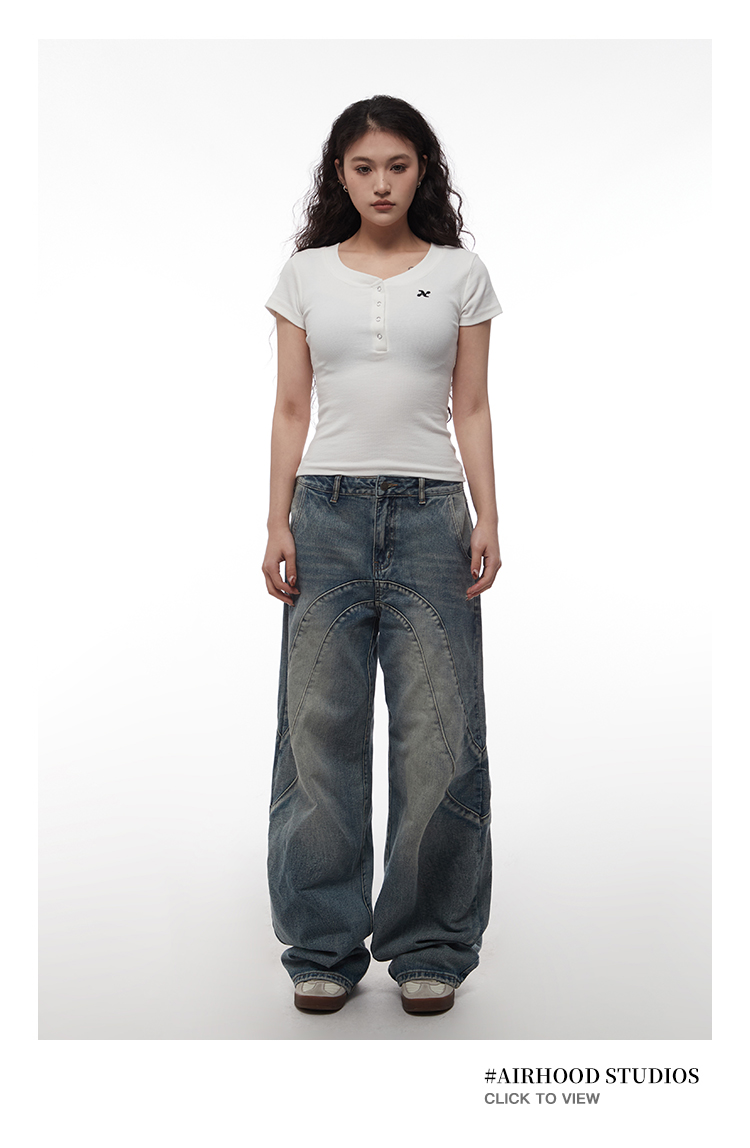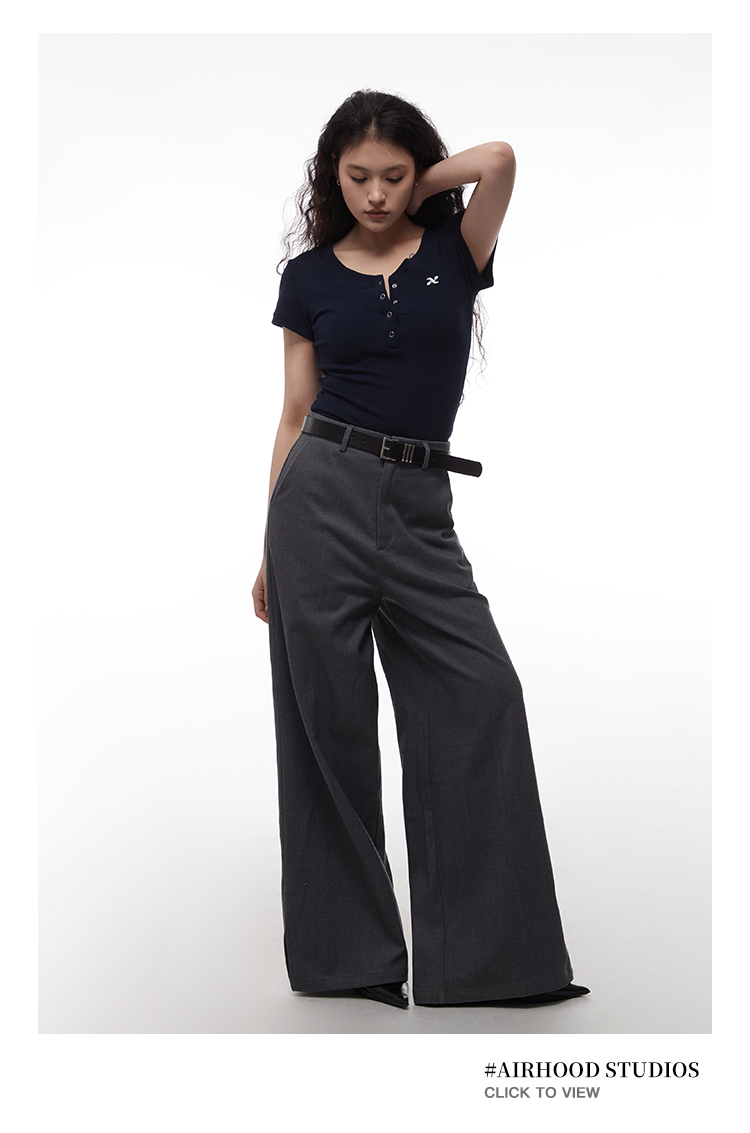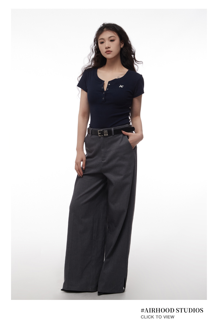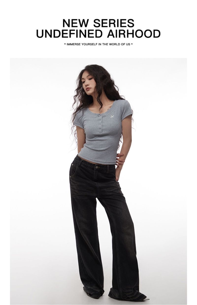 AIRHOOD Slim Fit Button V Neck Tee