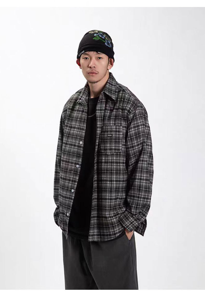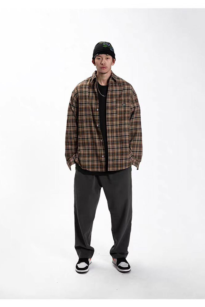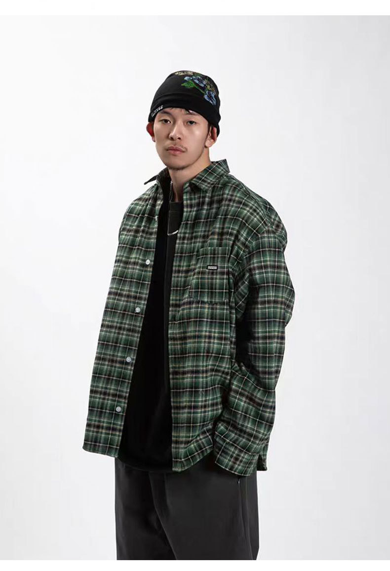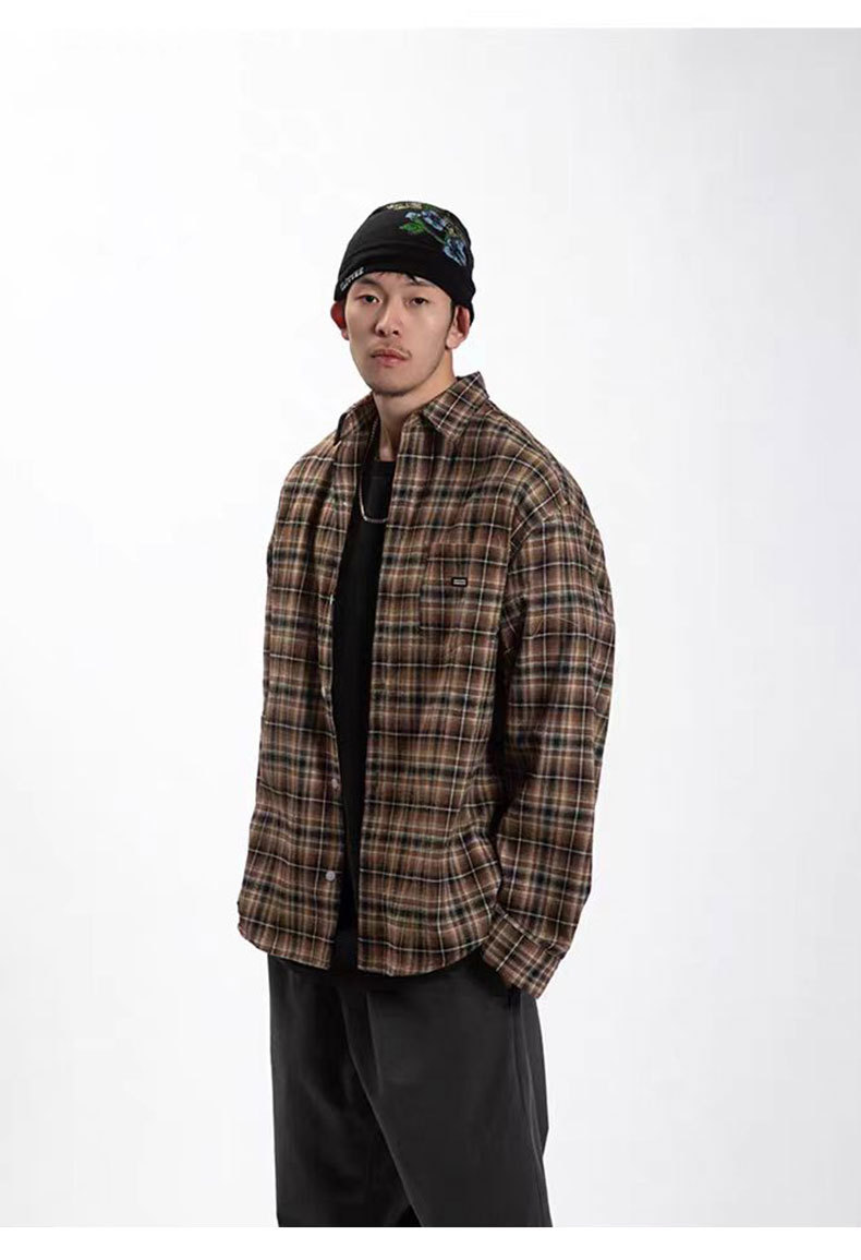 American Retro British Plaid Long-Sleeve Shirt