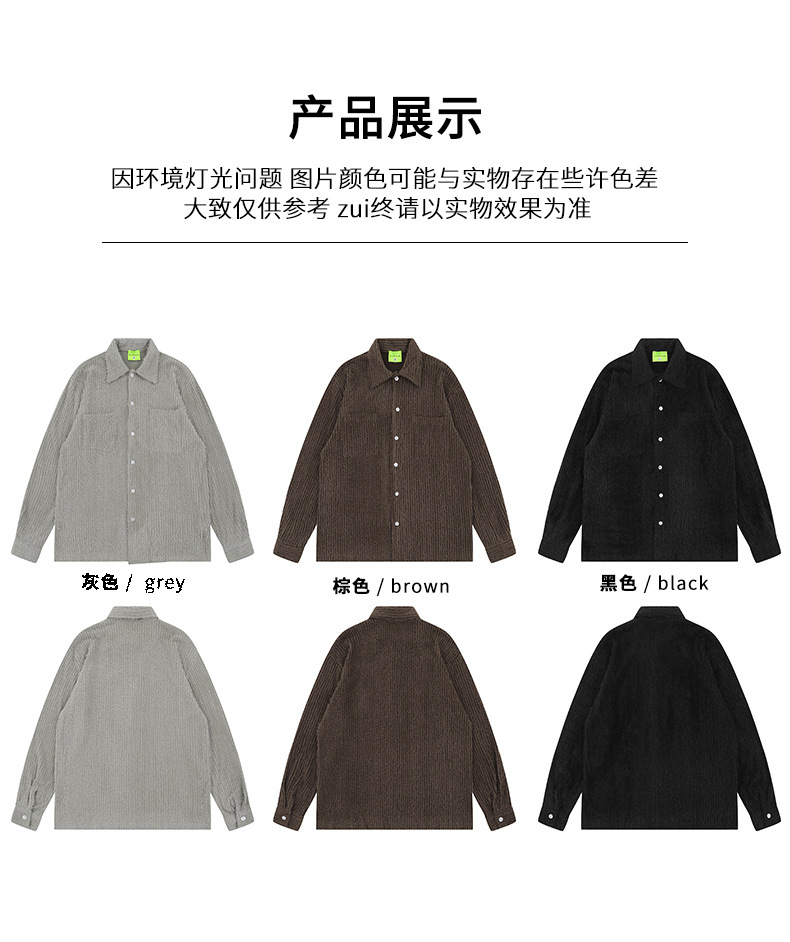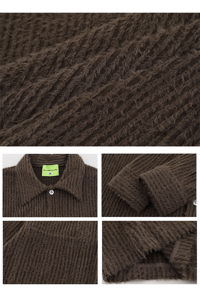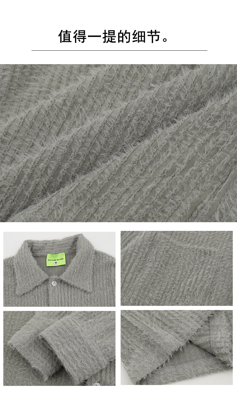 American Vertical Striped Textured Lapel Long-Sleeve Shirt