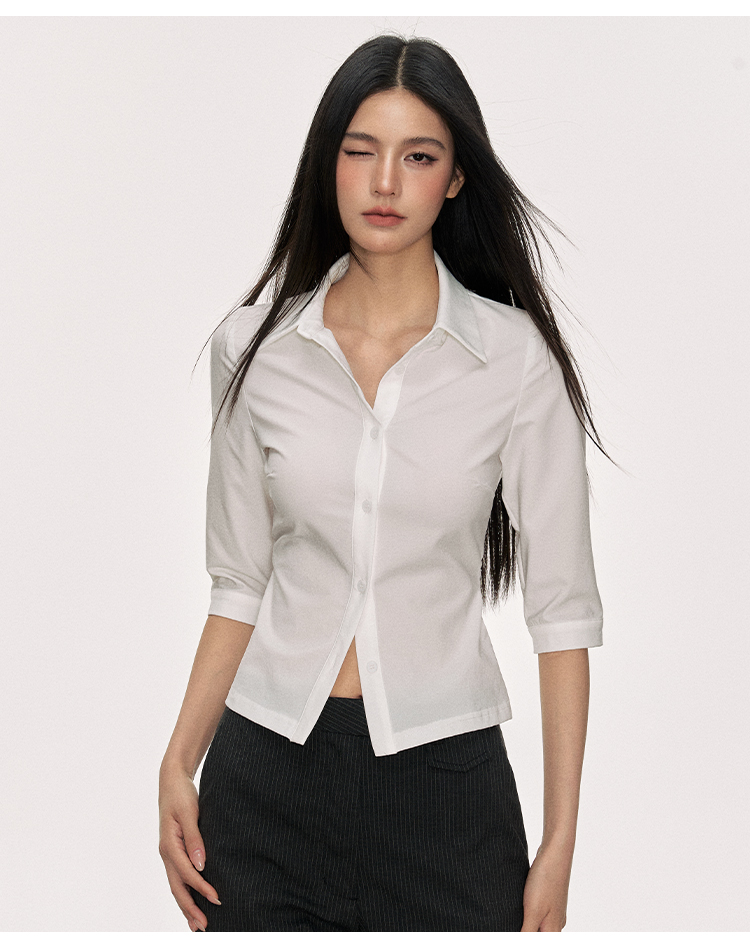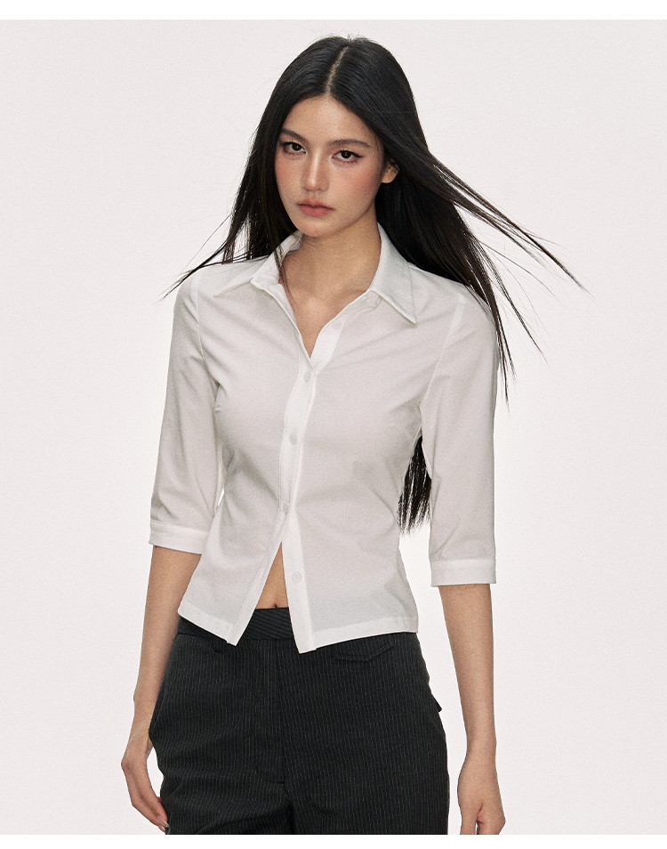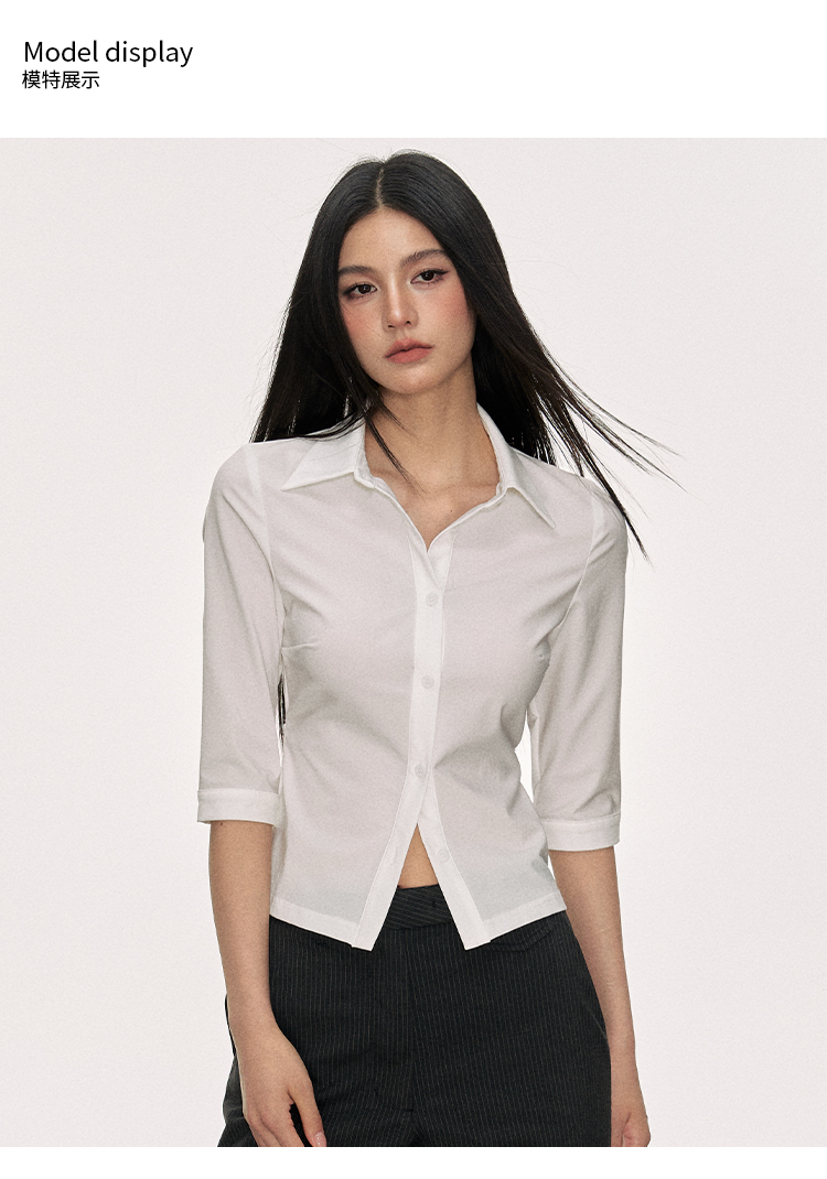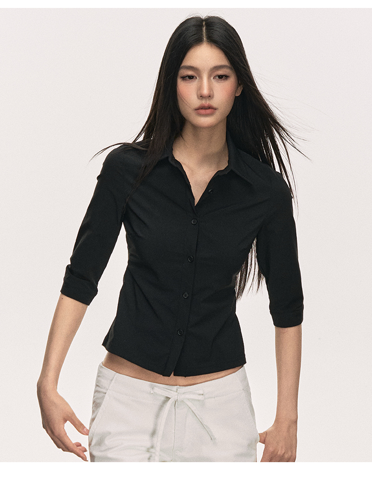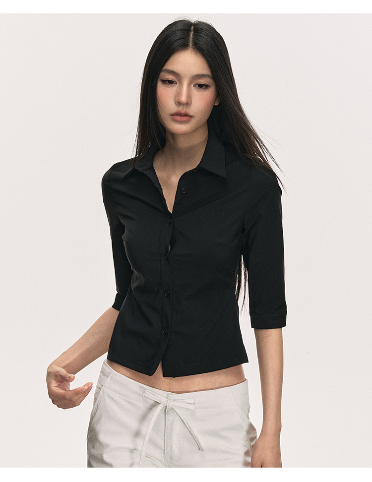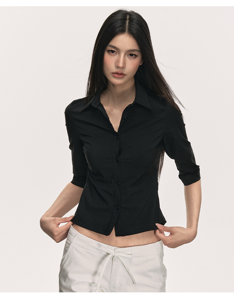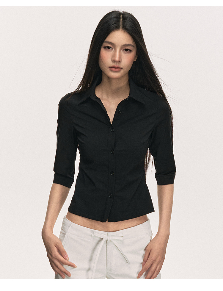 Anna Aneae Stretch Temperament Shoulder Short Shirt