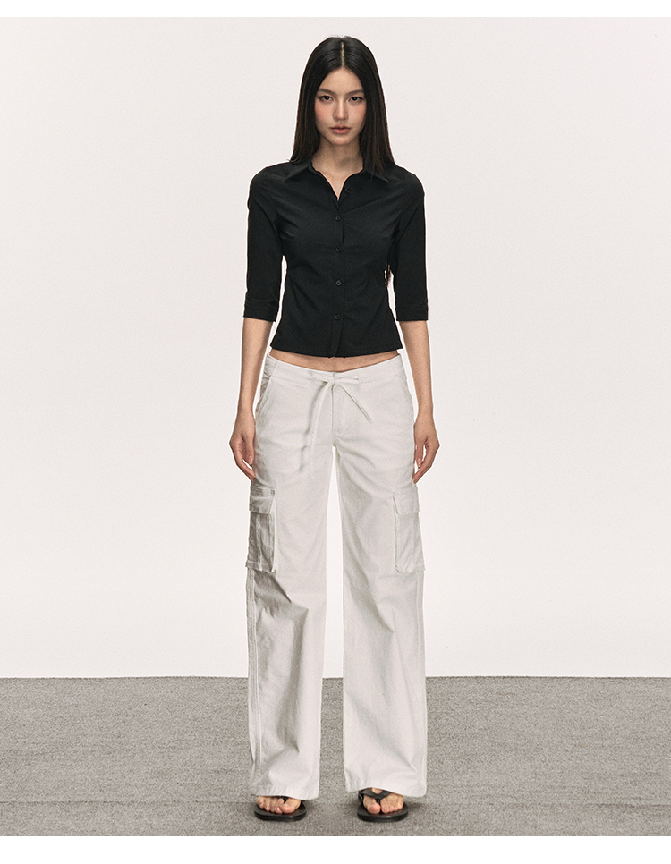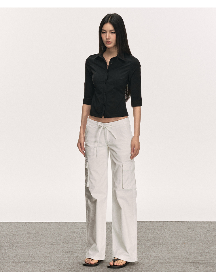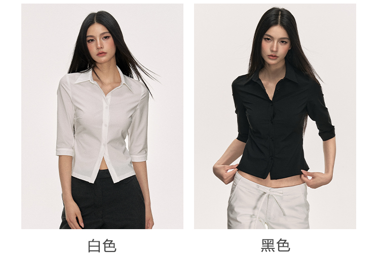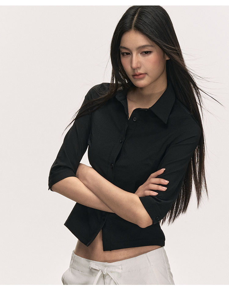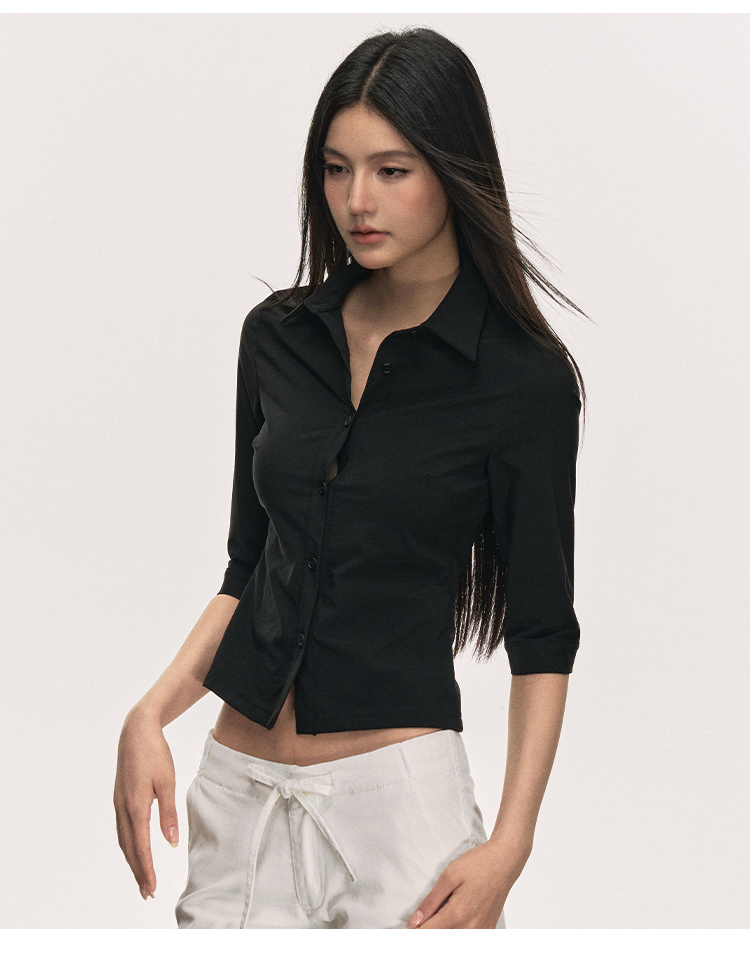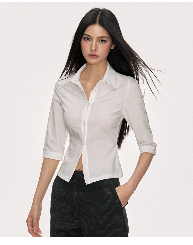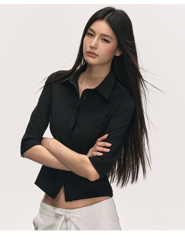 Anna Aneae Stretch Temperament Shoulder Short Shirt