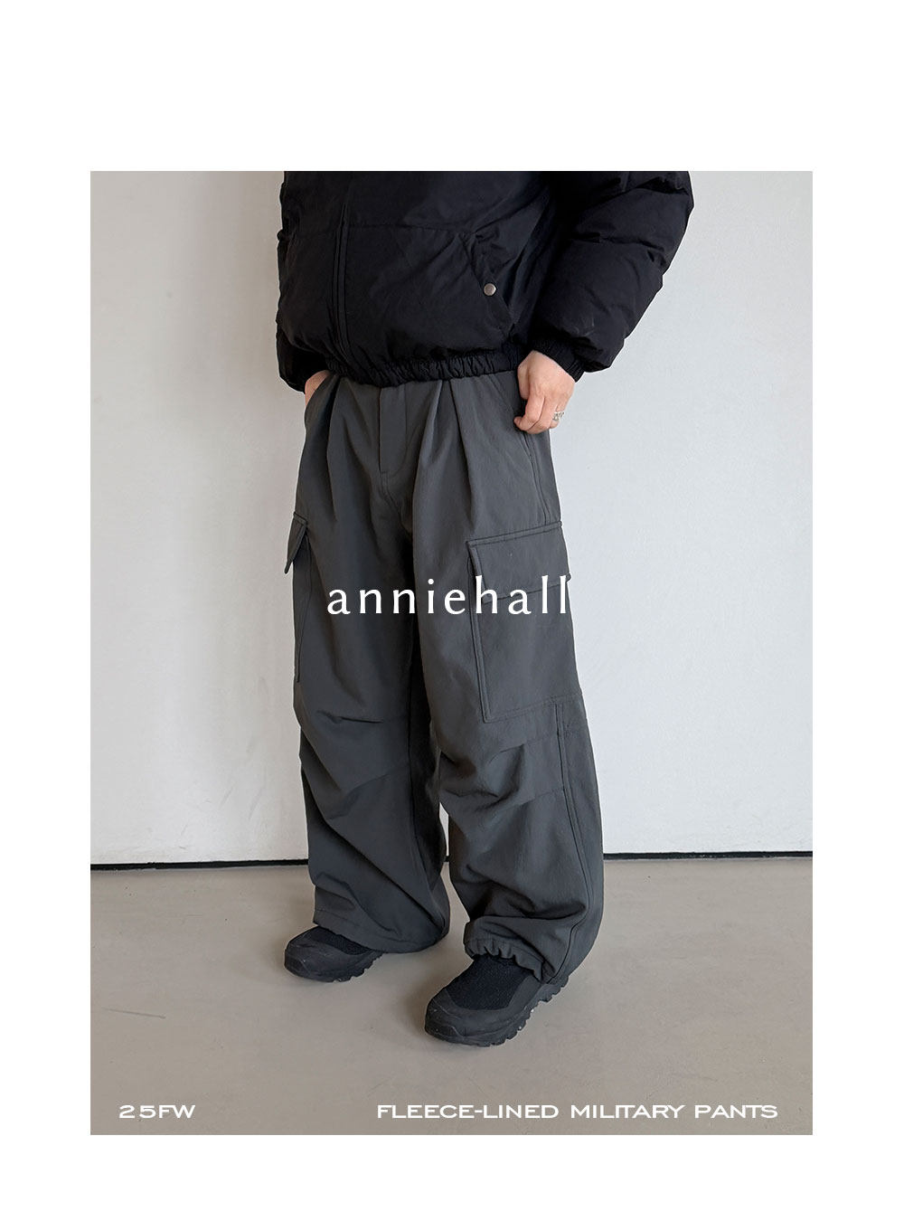 Anniehall Fleece Thickened Large Pocket Vintage Thermal Pants